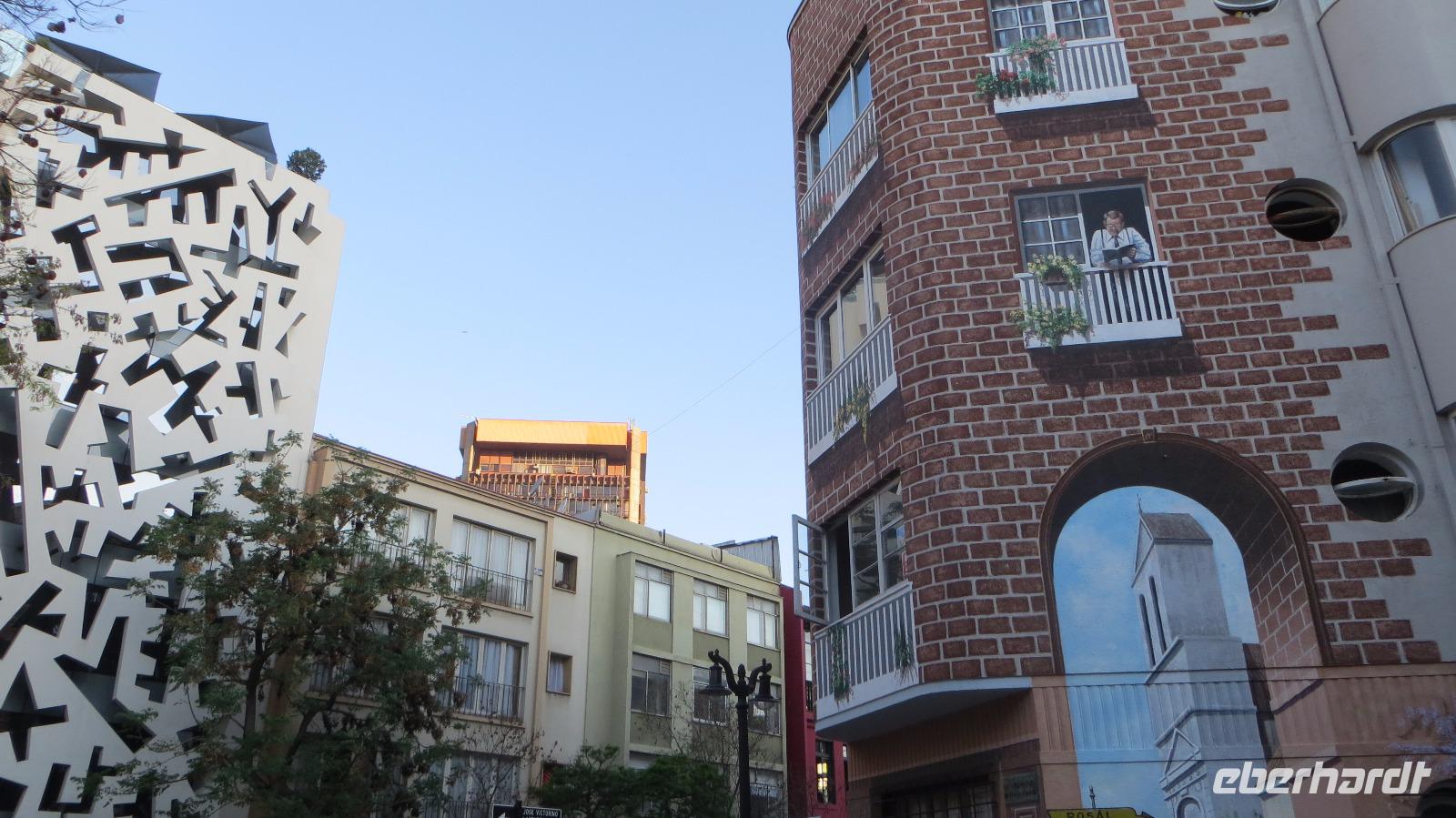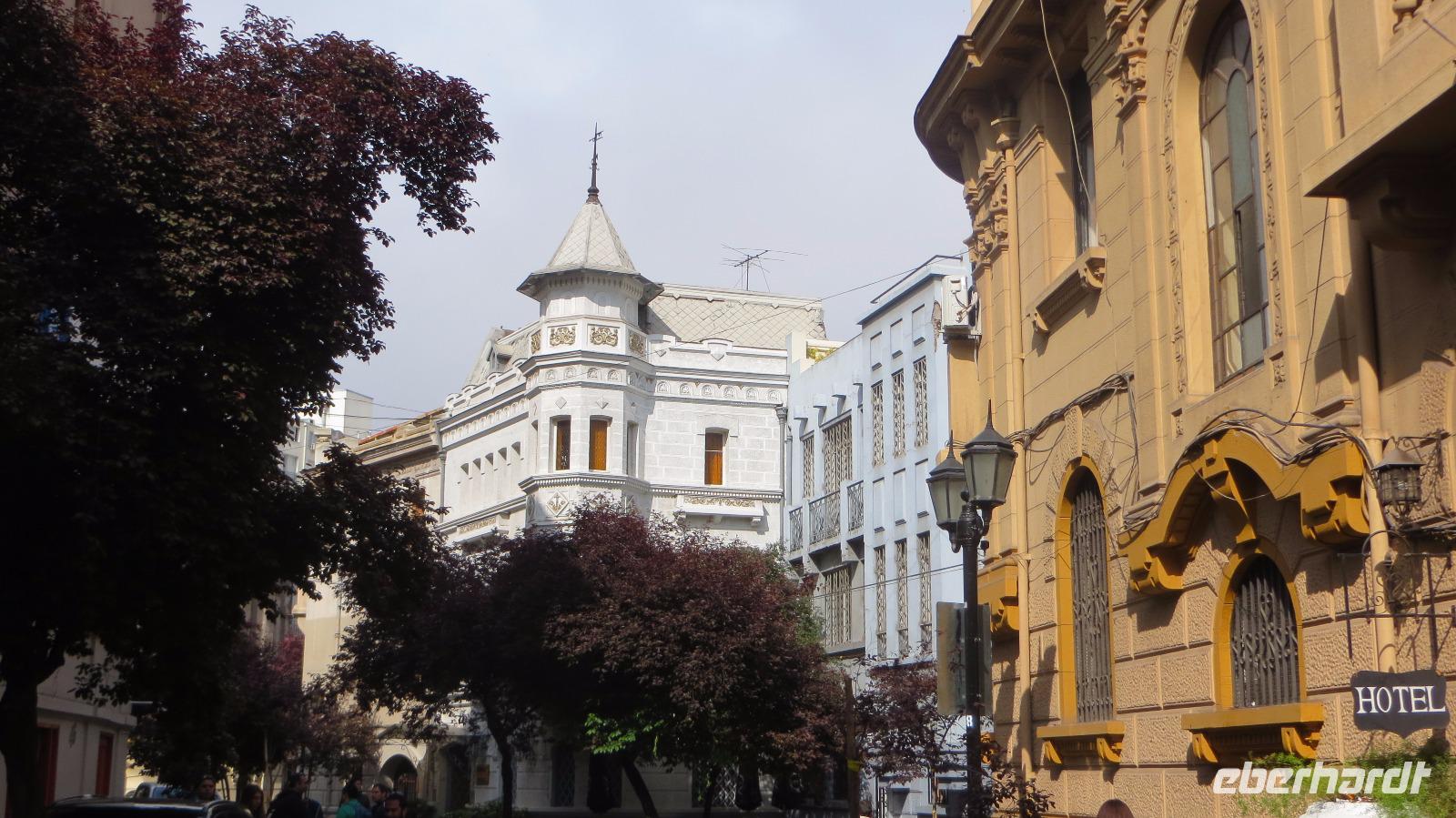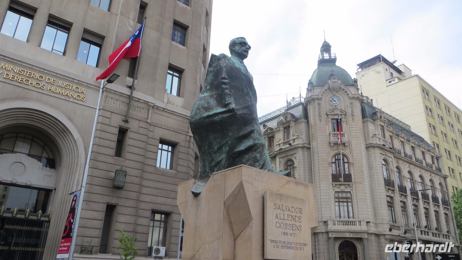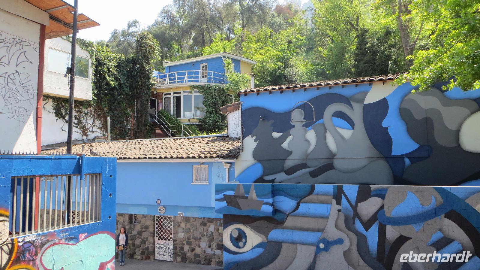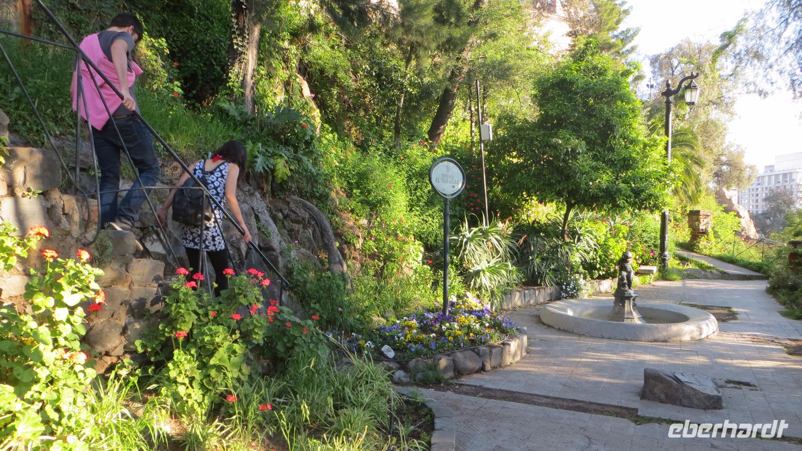 Nach einem guten Frühstück waren wir vorbereitet, um die Stadt kennen zu lernen. Santiago ist nicht nur eine moderne Stadt, sie hat viele Grünanlagen und Parks. Beim Rundgang begannen wir mit dem Besuch der Franziskaner-Kirche, liefen durch das Londoner und das Pariser Viertel, zum Regierungspalast mit dem Salvador Allende Denkmal. Im Bankviertel (La Bolsa) konnte man den Status der chilenischen Wirtschaft gut sehen. In Bellavista befindet sich ein schönes Kunstviertel und die Wohnung Pablo Nerudas.