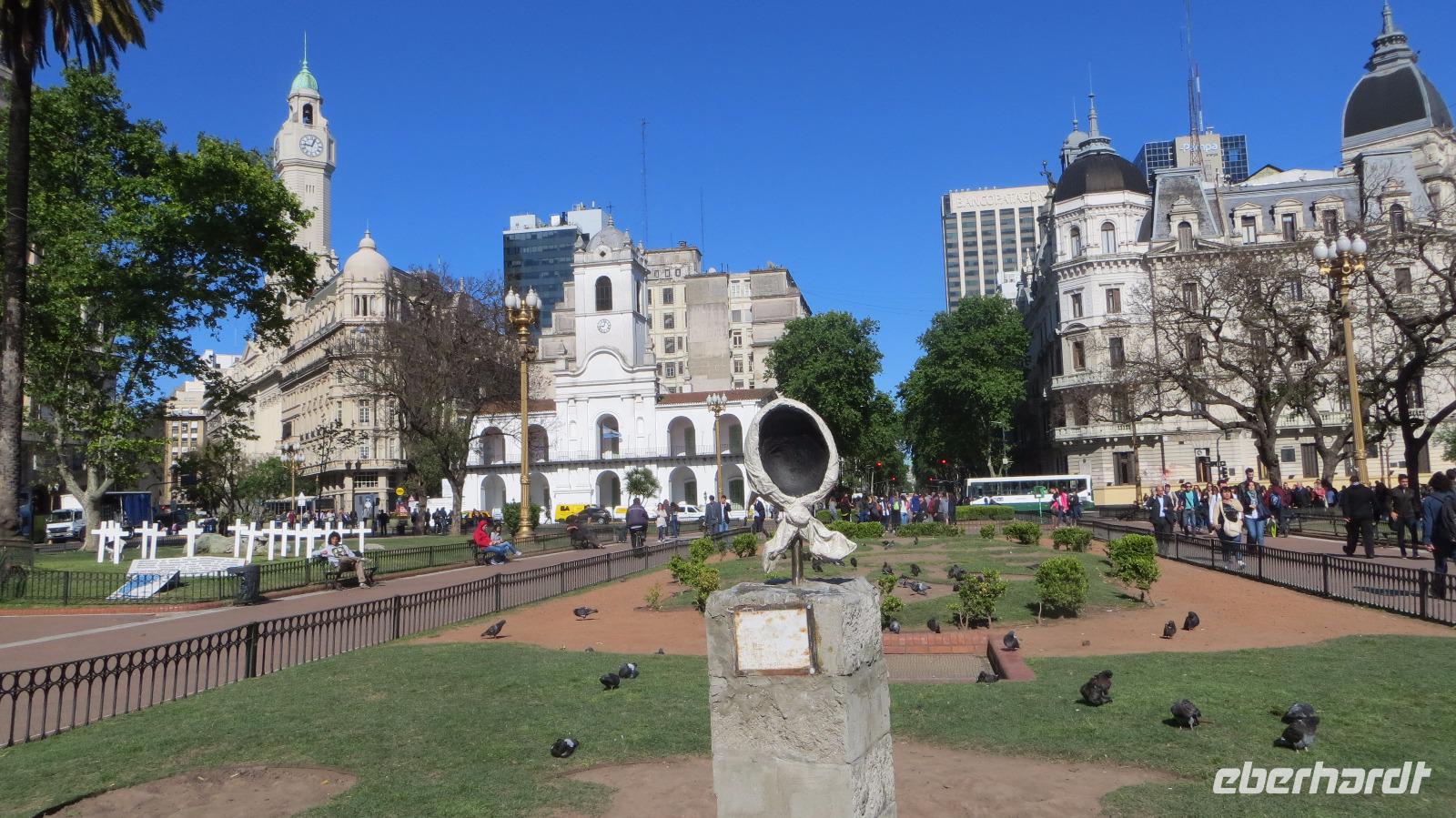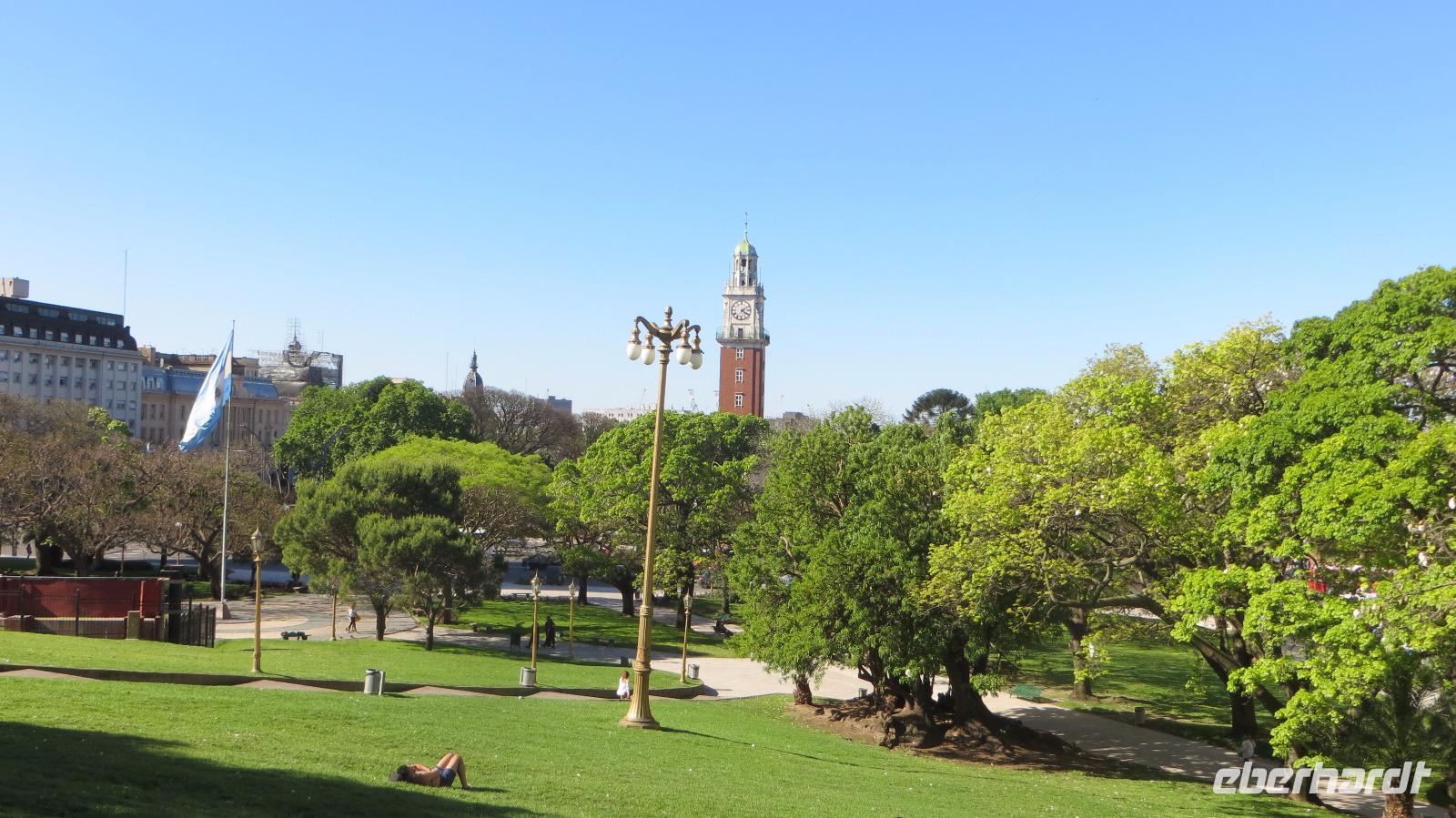 Am Ende der Straße trafen wir auf die grüne Lunge der Stadt, den San Martin Garten, wo wir uns ein wenig ausruhten.Auf dem Rückweg liefen wir die „9. Juli-Allee" bis zum Obelisk, dem besten Fotomotiv der Stadt.