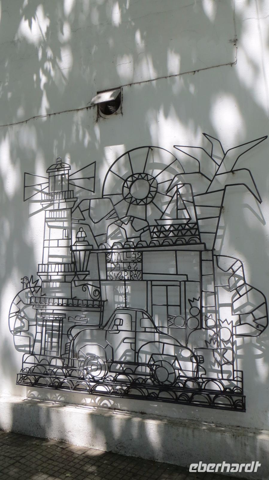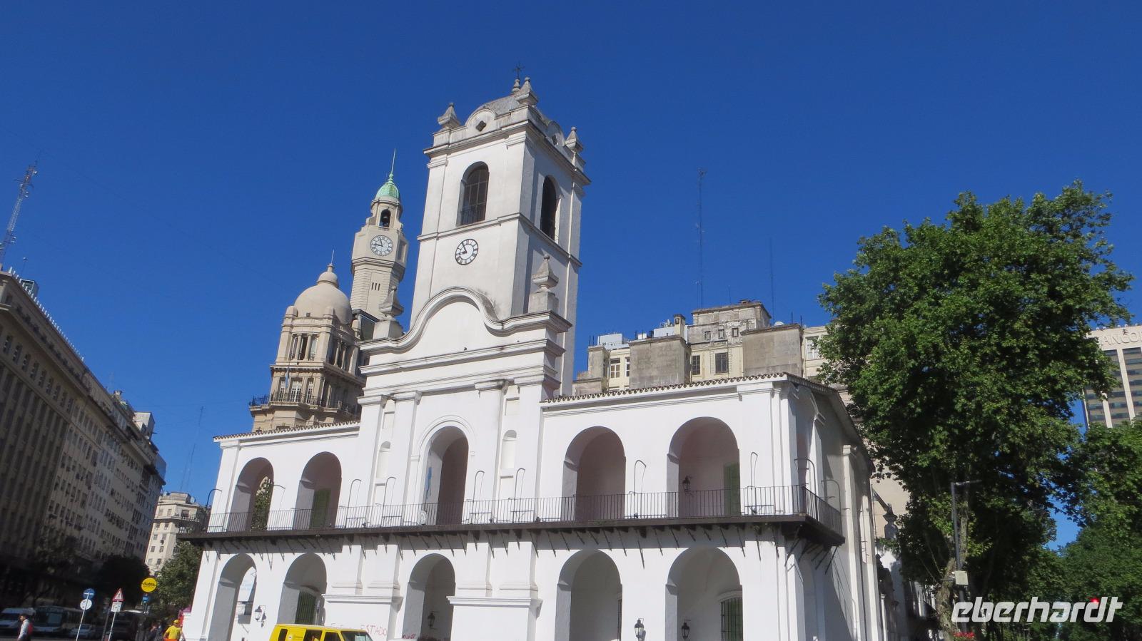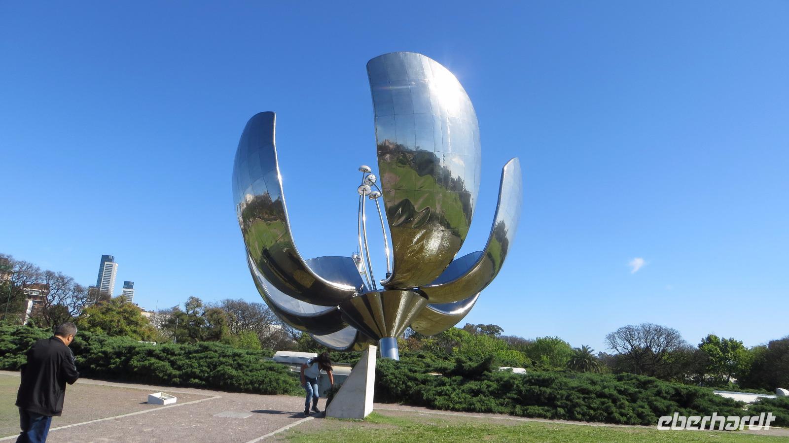 Auch hier in Buenos Aires besuchten wir wieder den Hauptplatz mit der Kathedrale, die aussieht wie ein griechisches Kolosseum, dem Grab des Befreiers San Martin, den Maiplatz mit dem Rosa Haus ( Präsidentenhaus ) und dem alten und dem neuen Rathaus. Weiter auf der Fahrt fotografierten wir die „ Große silberne Blume" und fahren durch das kleine San Telmo Viertel. In dem Stadtviertel Klein-Palermo findet man verschiedene Paläste, die jetzt Museen, Botschaften oder Wohnungen reicher Leute sind. Auch das ehemalige Haus des Fußballers Maradona befindet sich dort.