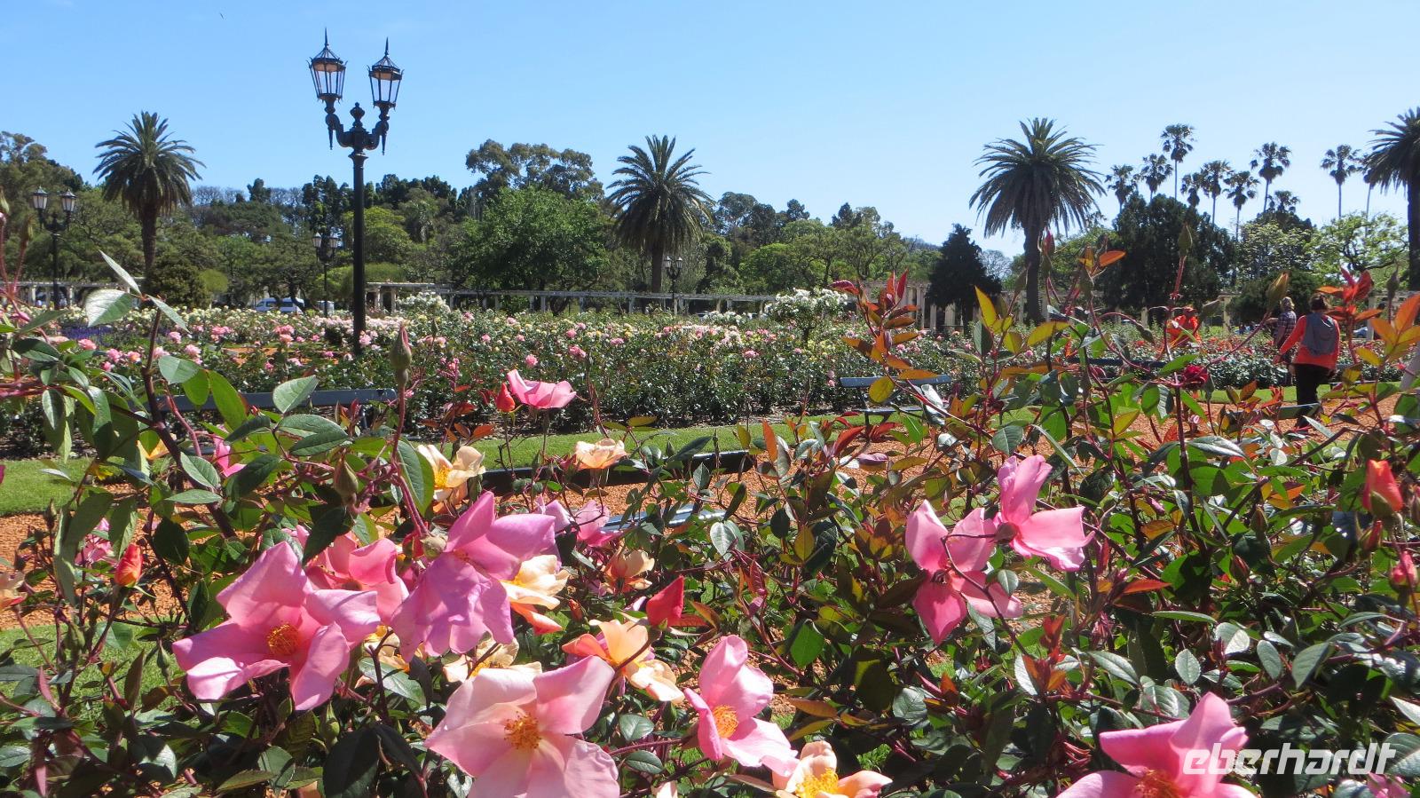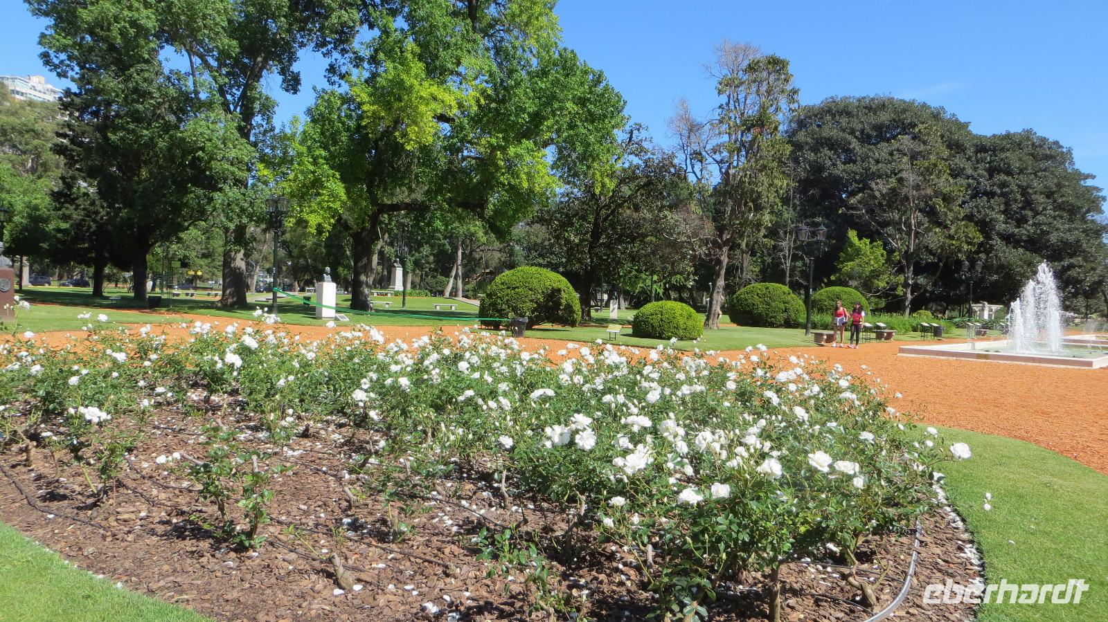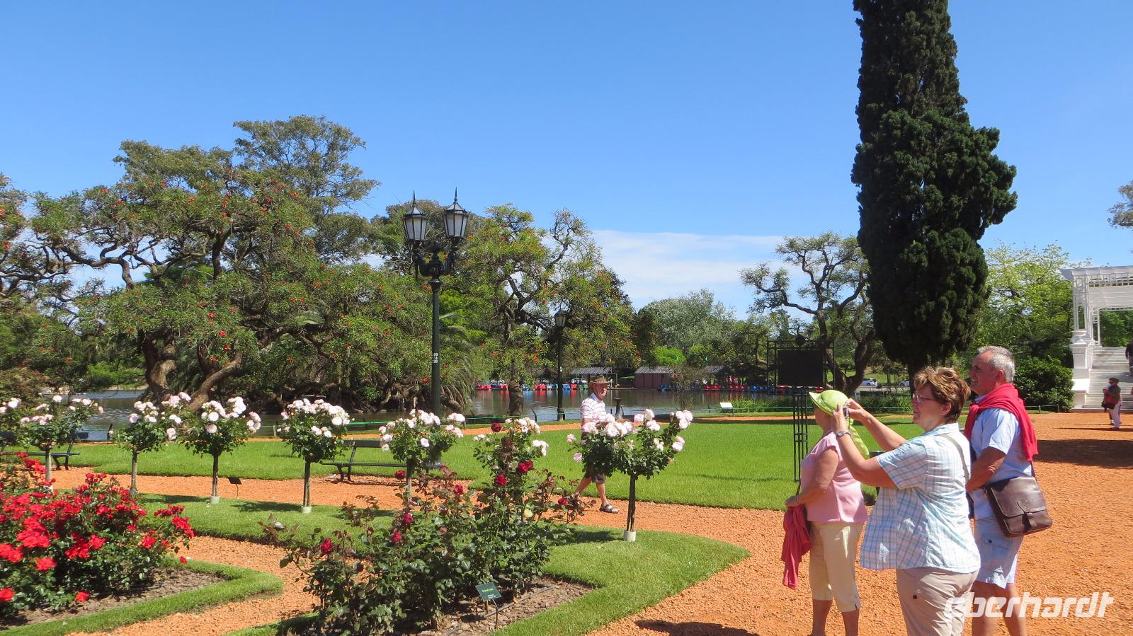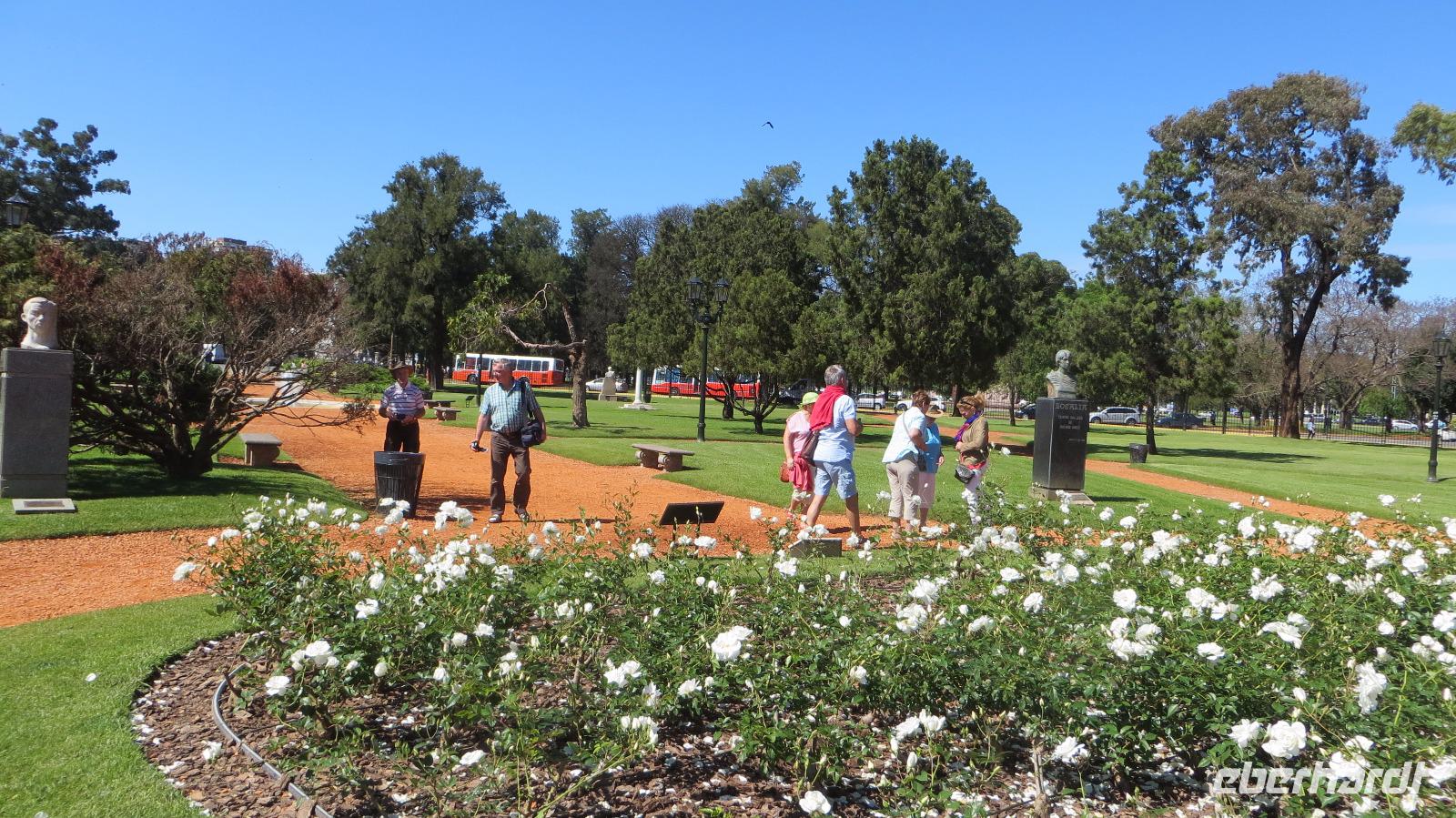 Wie in fast jeder großen Stadt hier, kann man durch einen großen Garten spazieren, den Garten La Rosaleda. Er ist der Lieblingspunkt der Einwohner, die sich hier meist an den Wochenenden und eben bei warmen Temperaturen gern aufhalten. Das grüne Gras, die großen Bäume die verschiedenen Farben der Rosen sind eine gute Mischung und machen die Zeit angenehm.