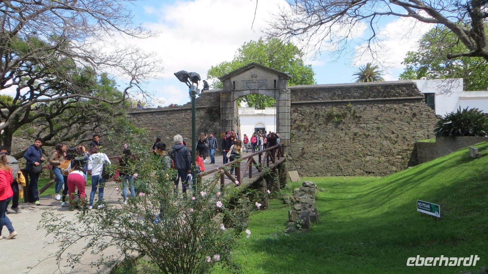 Wir sind gut vorbereitet, um das 5. Land unserer Rundreise kennen zu lernen-Uruguay. Unser erstes Ziel ist die Stadt Colonia de Sacramento, sie befindet sich auf der anderen Seite des Silberflusses gegenüber von Buenos Aires. Deshalb nutzten wir diesen Vorteil und nahmen die Fähre. Colonia de Sacramento ist eine alte portugiesische und spanische Kolonie. Angekommen trafen wir unsere örtliche Reiseleiterin Karin und den Busfahrer Diego. Gemeinsam fuhren wir entlang der Promenade durch das Dorf Real de San Carlos bis zum Sheraton-Hotel vorbei am alten Bahnhof und der Stierkampfarena. Hier machten wir einen Fotostopp und besuchten ein Antiquitätengeschäft. An der neuen Promo Colonia gab es den nächsten Stopp , um bei dem Sonnenschein mit der ganzen Gruppe ein Erinnerungsfoto zu machen. Wir sahen eine Rennbahn und die San Benito Palermos Kirche.