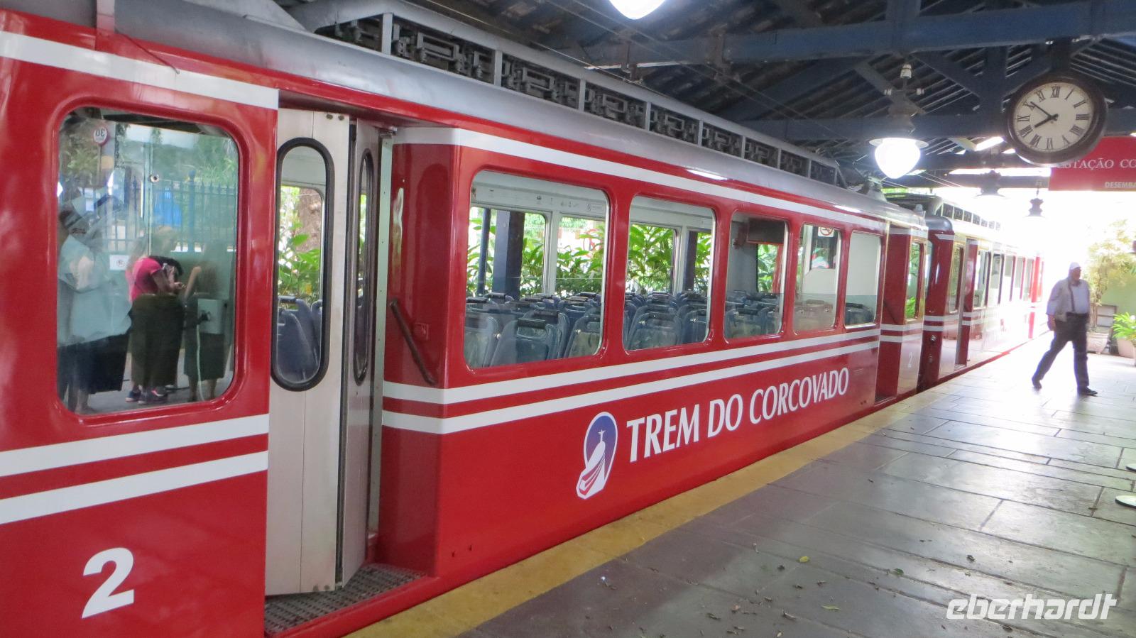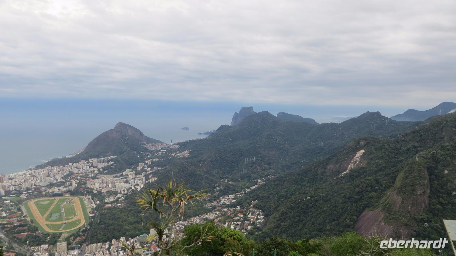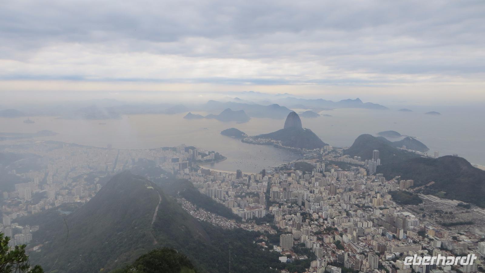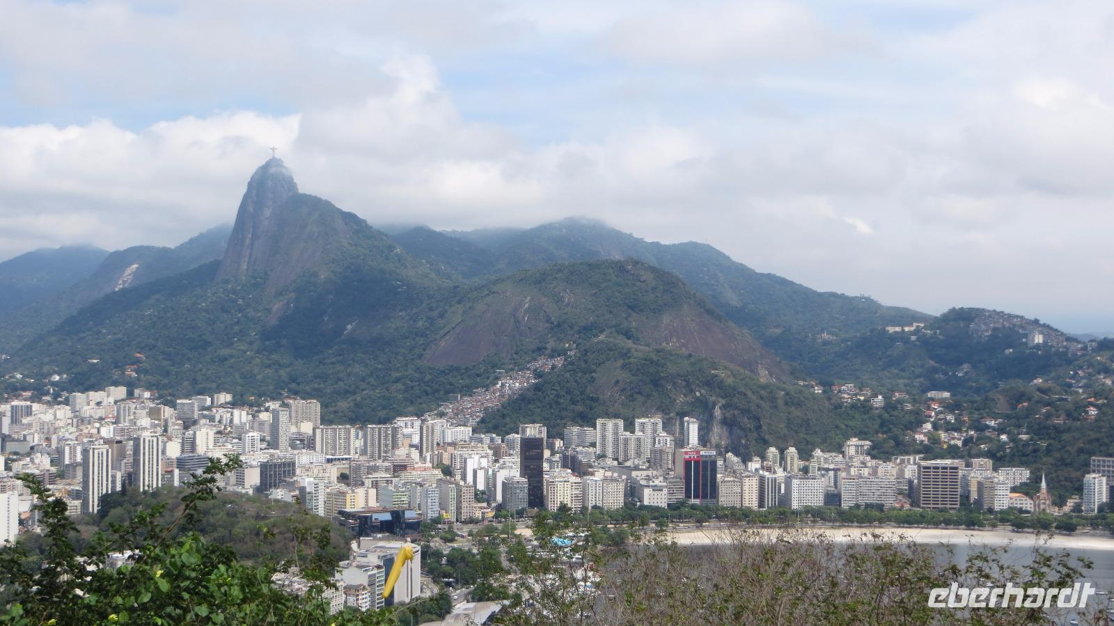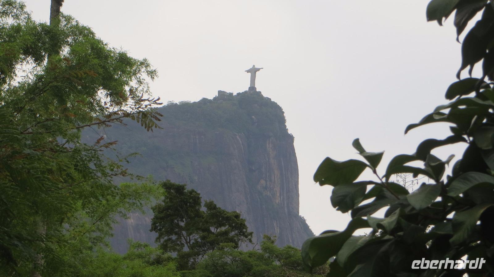Nach dem Frühstück besuchten wir das letzte MUSS unserer Reise: Den „ Cristo de Corcovado". Mit der Zahnradbahn erreichten wir den höchsten Punkt des Berges, wo der Christus mit seinen 38 Metern Höhe sich 710 Meter über dem Meer befindet. Von da hatten wir einen wunderschönen Ausblick über die ganze Stadt.