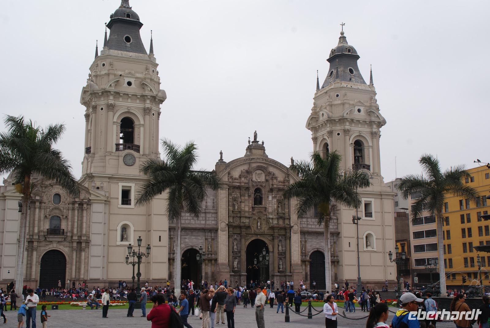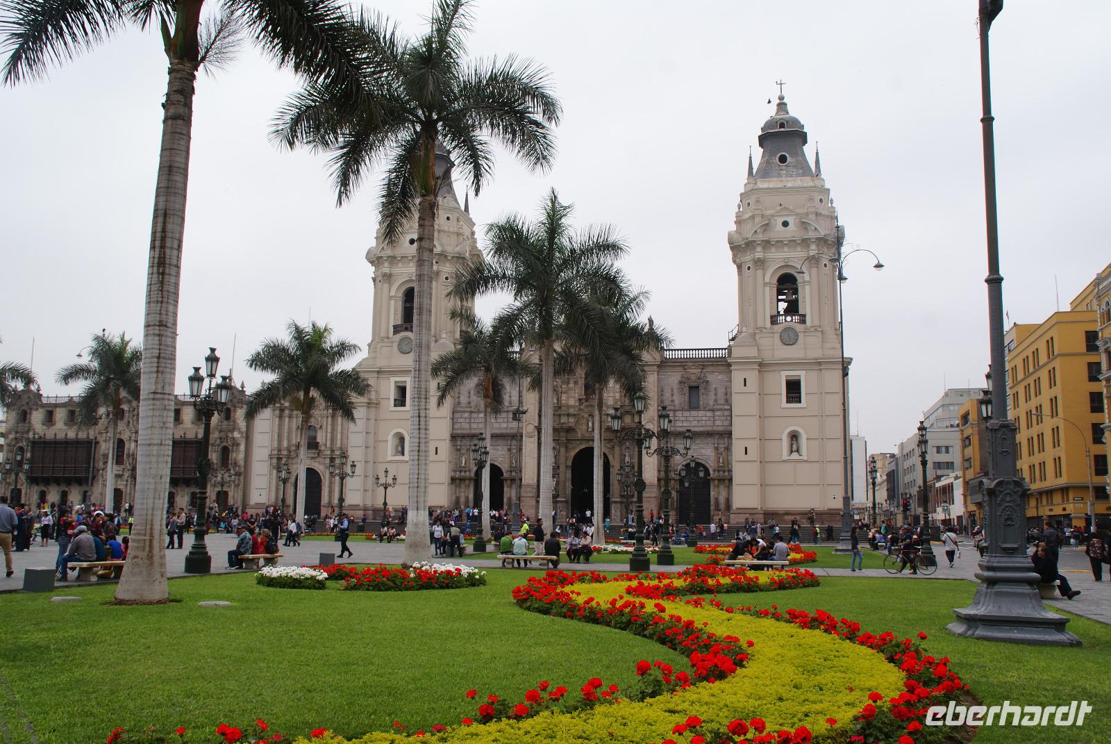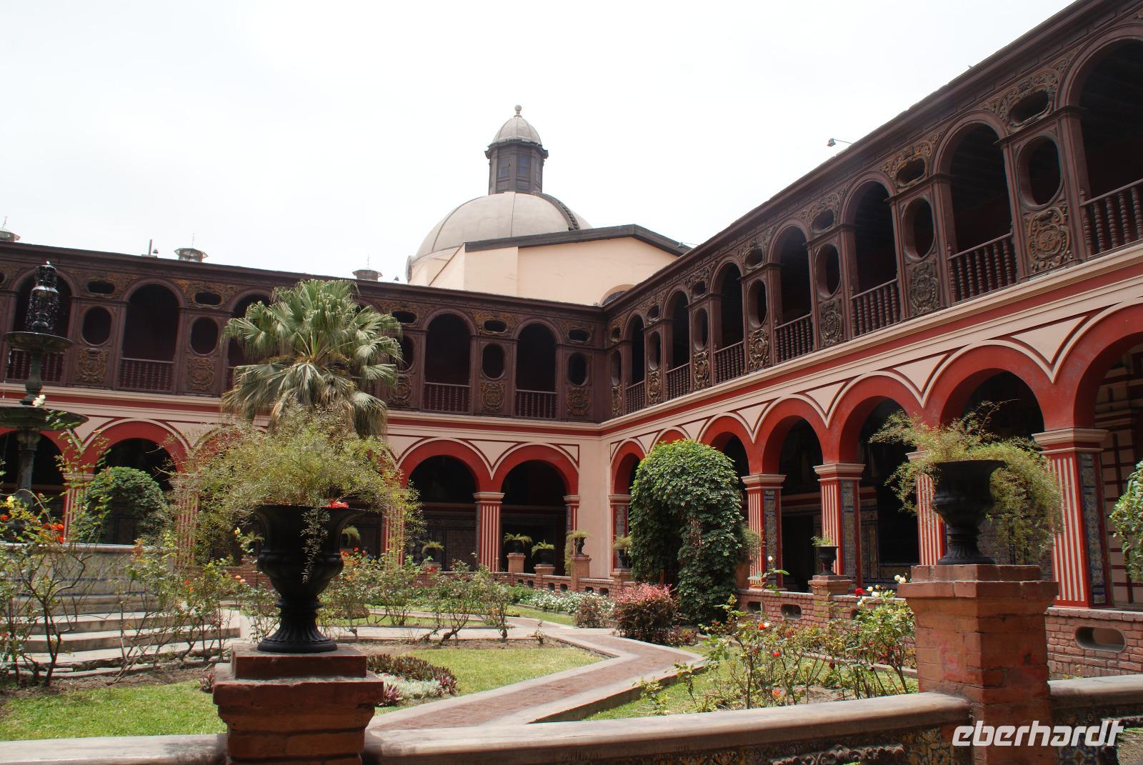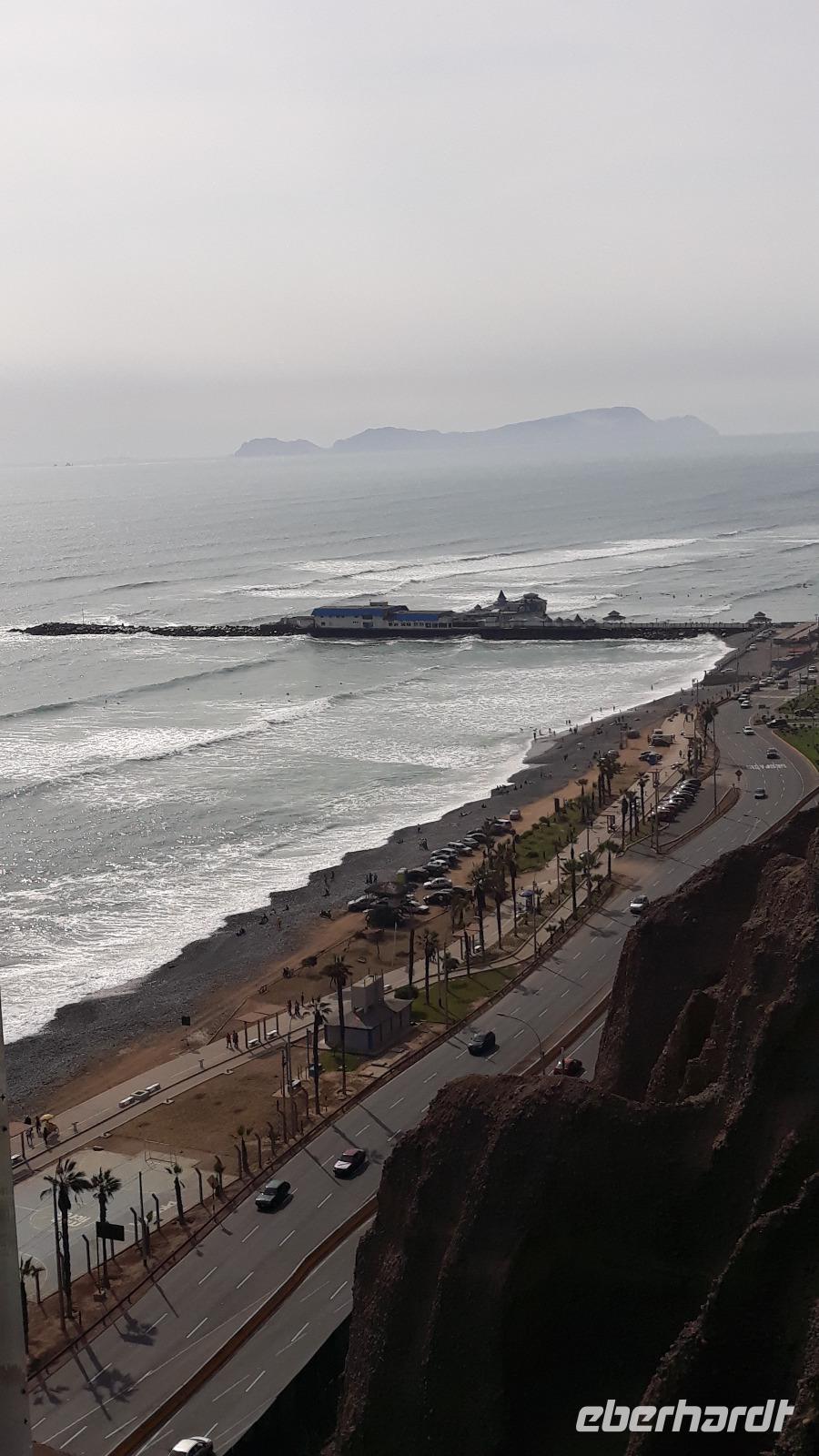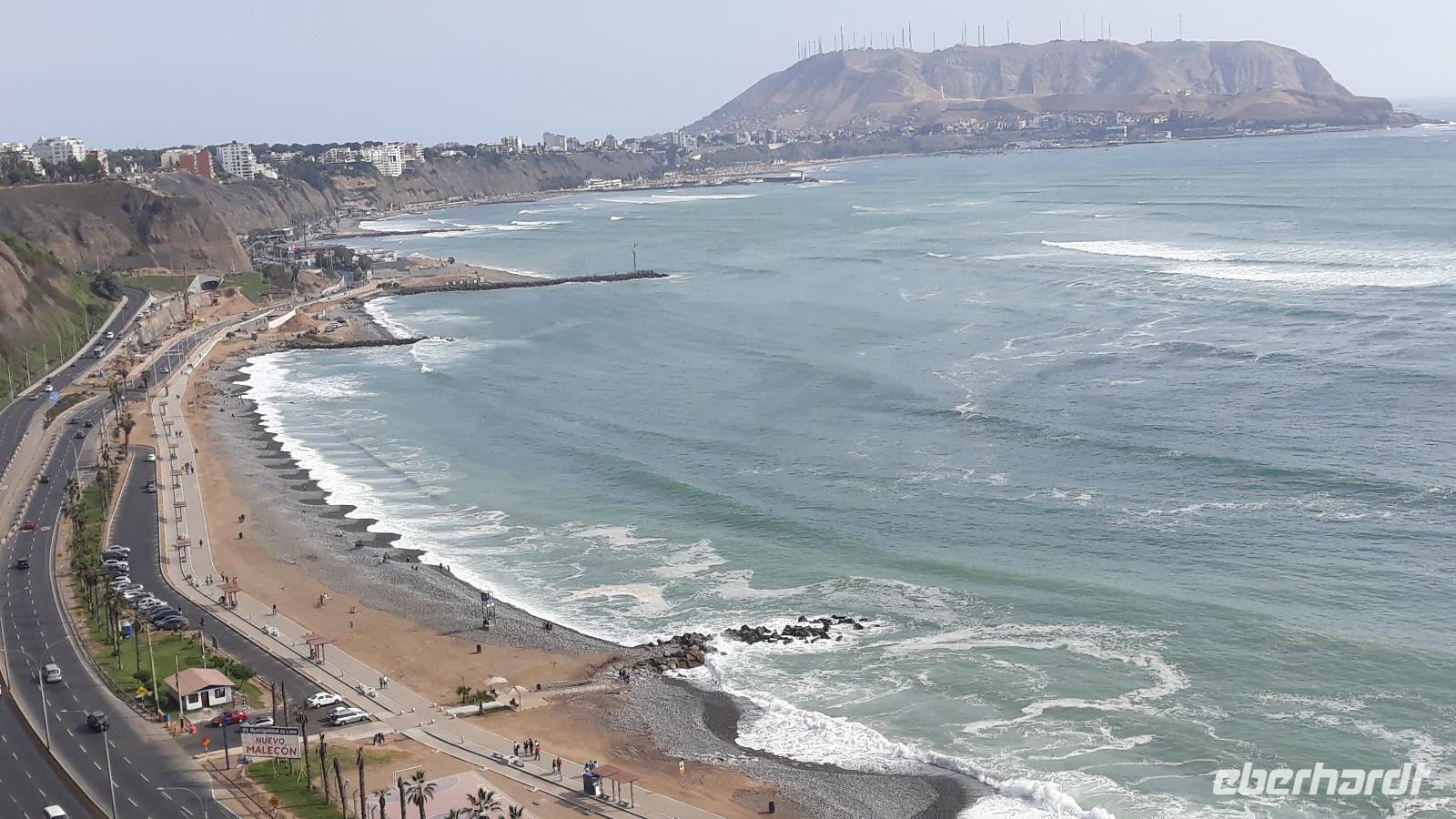 Geschlafen wie die Steine treffen wir uns ausgeruht zum tollen Frühstück des Casa Andina Hotels und begeben uns mit Silvia und Busfahrer Adrian auf Citytour. Wir erfahren, dass die Region um Lima 120 Km lang und 30 Km breit ist und die Altstadt 1988 zum Weltkulturerbe ernannt wurde. Einen Fotostopp machen wir an der 23 m hohen Tempelpyramide Huaca Pucllana (Huaca= Zeremonienort/Heiliger Ort), das 5 Hektar große Gelände als Wahrzeichen von Miraflores gilt. Sie wurde aus Lehmziegeln errichtet, die wie Bücher aneinandergereiht zu sehen sind. Auf der Fahrt in die Altstadt sehen wir bereits viele schöne afrikanische Tulpenbäume und Jacarandas, die schön rot und lila für uns leuchten. Unsere Fahrt führt uns vorbei am Fußballstadion, verschiedene Botschaften, Plaza de Libertad, dem italienischen Kunstmuseum, dem Justizpalast und wir halten am Plaza San Martin um u.a. in einer Wechselstube uns mit der Landeswährung Sol zu versorgen. Ein Spaziergang erfolgt zum Plaza Major und wir werfen einen Blick in die wunderschöne Kathedralbasilika St. Johannes, deren Grundstein im Jahr 1535 durch Francisco Pizarro gelegt wurde. Gegenüberliegend befindet sich das Rathaus der Stadt, welches im traditionellen Gelb erstrahlt und wir schlendern durch die wunderschönen Gassen der Altstadt bis zum Dominikanerkloster Santo Domingo, welches wir anschließend besichtigen. Dieses wurde im Jahr 1535 gegründet und wir sehen die Chorstühle mit Sitzklappen, die tollen Azulejos (Kacheln) aus dem Jahr 1606 sowie die imposante Bibliothek, an deren Stelle 1551 die erste Universität Südamerikas entstand. Anschließend fahren wir zurück nach Miraflores und erkunden am Nachmittag den Stadtteil auf eigene Faust. Ein schöner Spaziergang führt uns zum Larcomar an die Küste und im tollen Restaurant La Bonbonniere gibt es für uns einen Mittagssnack mit besonders toller Aussicht direkt auf die unter uns liegende Küste und den Pazifik. Abends werden wir bei La Dama Juana zum Abendessen und einer tollen Folkloreshow erwartet. Ein riesiges peruanisches Buffet mit unzähligen Köstlichkeiten und ein tolles Programm runden den Aufenthalt in Lima ab.