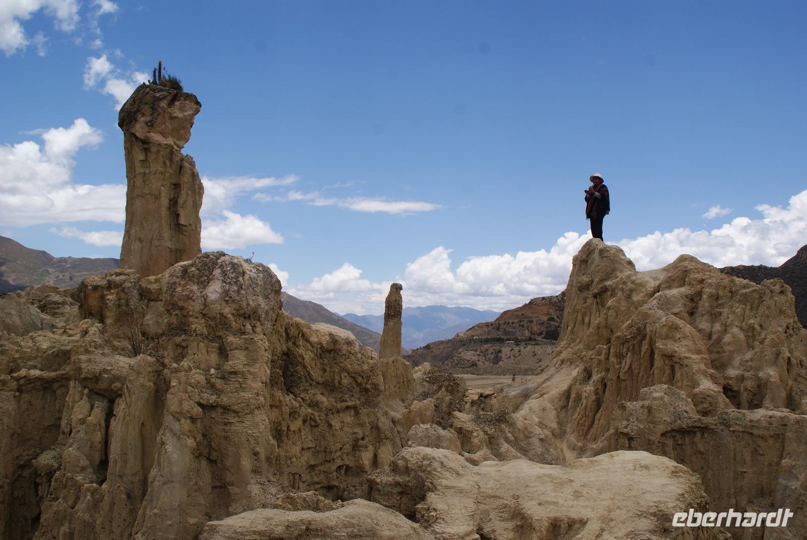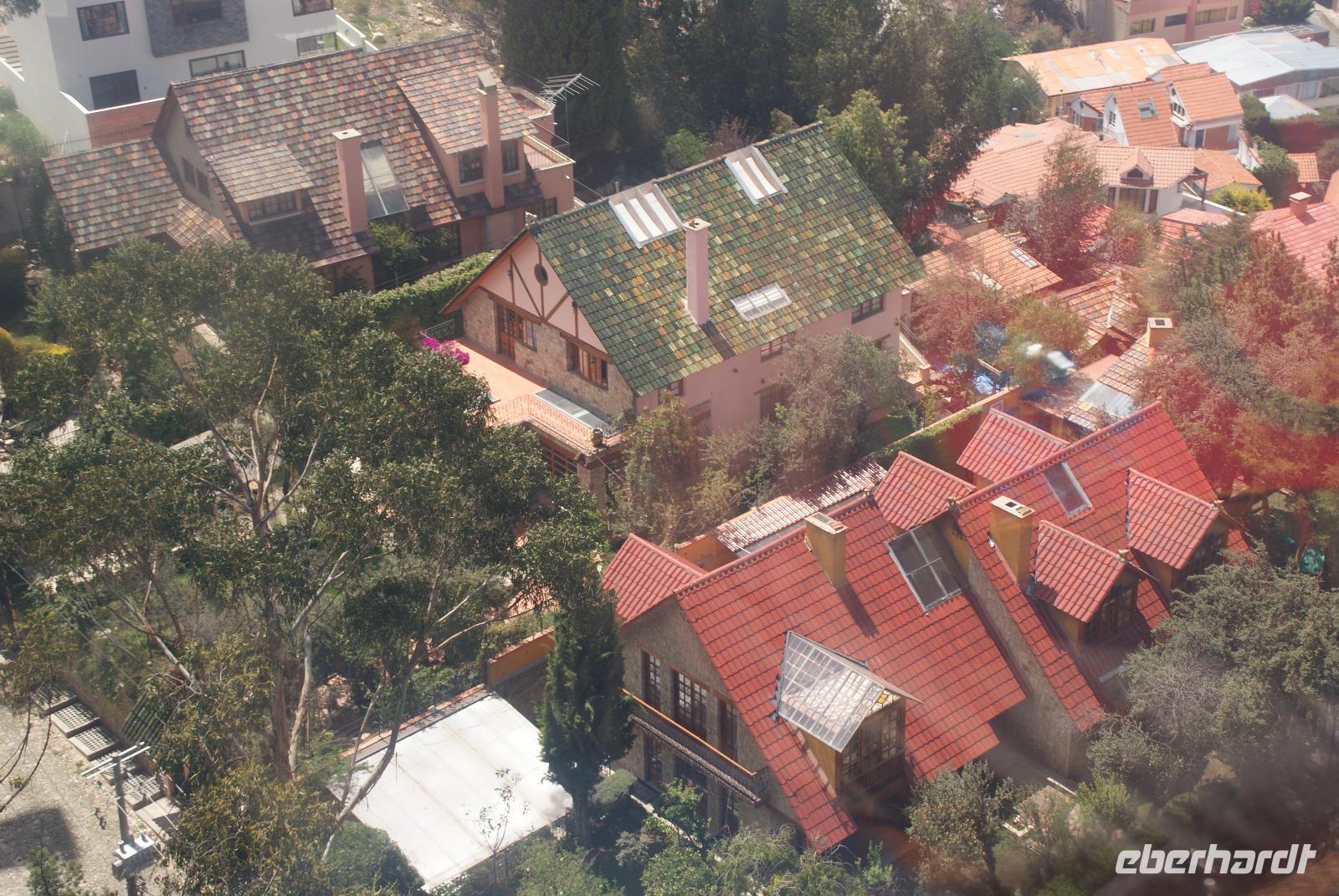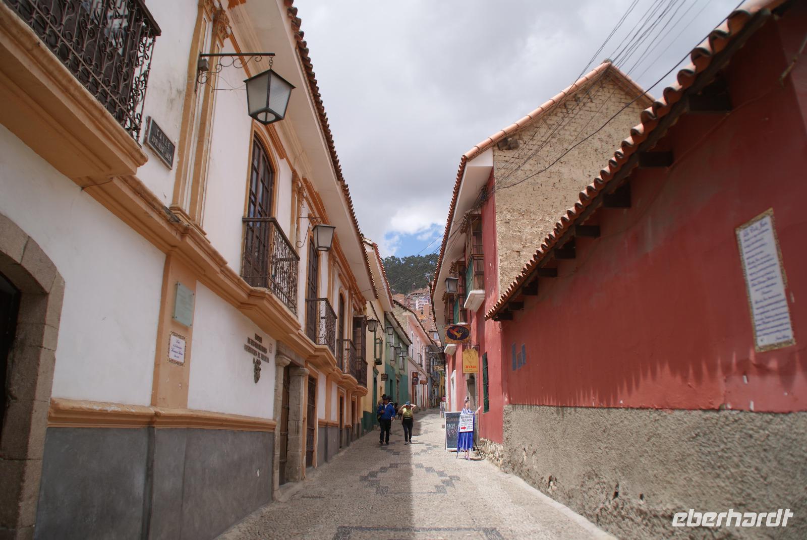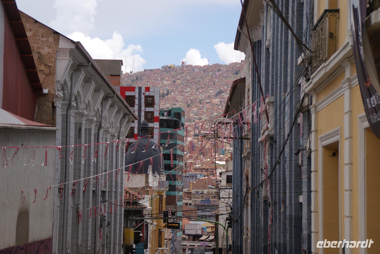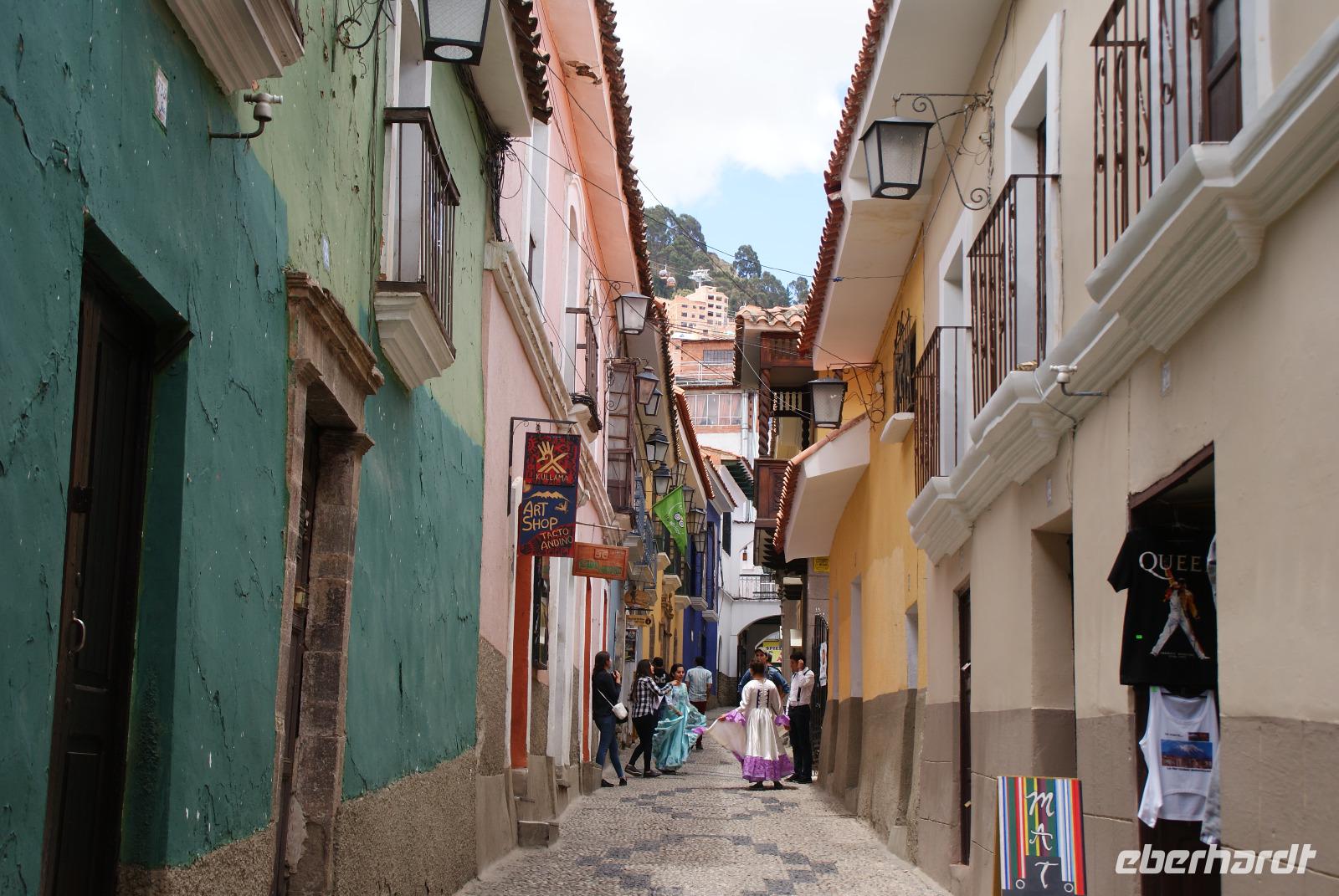 Wir erwachen bei strahlendem Sonnenschein und unglaublicher Kulisse mit Blick auf den Titicacasee. Gut gefrühstückt brechen wir auf und fahren nach La Paz, dem Regierungssitz Boliviens, welches 1,2 Millionen Einwohner fasst. Zunächst stoppen wir jedoch für wie Martin es sagt „Fotoalarm", denn wir haben einen grandiosen Ausblick auf die Königberge, die um die 6000m hoch und schneebedeckt sind. Einfach toll dieser Kontrast zur übrigen Landschaft. Weiter geht's und bald darauf kommen wir in El Alto, der Oberstadt von La Paz an. Diese ist ebenfalls eine riesen Stadt für sich, die bis 1985 zu La Paz gehörte und als die größte indigene Stadt der Welt mit aktuell 1 Mio Einwohner gilt. Martin zeigt uns die interessante Bauweise, wo ganze Häuser auf den Dächern von mehrstöckigen Gebäuden thronen. Hier wird für uns eine Überraschung bereitgehalten und wir fahren mit der erst vor wenigen Jahren erbauten Seilbahn der Firma Doppelmayr hinunter nach La Paz. So überwinden wir innerhalb von 40 Min. Fahrt eine Höhendistanz von 700m hinunter in die Unterstadt. Ein Wahnsinnsausblick bietet sich uns und wir haben von den Gondeln aus die Möglichkeit, diese riesen Stadt in all ihren Dimensionen zu bestaunen. Unten angekommen, sorgen wir zunächst für unser Mittagessen und folgen der Empfehlung unseres Reiseleiters und kosten die köstlichen Saltenas, verschieden gefüllte Teigtaschen. Anschließend besichtigen wir die interessanten Formationen des Mondtals. Dieses befindet sich 10 Km südöstlich von La Paz (= der Frieden) und besteht aus unzähligen Felsen, Felsformationen und Erdhügeln. Benannt wurden diese nach Nils Armstrong, der sie mit der Landschaft auf dem Mond verglich. Doch nun zurück ins spanische Viertel von La Paz und schon bald schlendern wir durch die Jaen Straße, die aus dem 17. Jahrhundert stammt und noch viele schöne alte und gut erhaltene Bauten vorzuweisen hat. An dessen Ende stoßen wir auf die Galerie des berühmten Malers Mamani Mamani und haben das große Glück diesen persönlich anzutreffen. Wir werden herzlich empfangen und auf seinen Wunsch machen wir mit ihm ein schönes gemeinsames Foto. Wir hören, dass dieser ein enger Freund des Präsidenten Evo Morales ist und befinden uns somit in prominenter Gesellschaft. Weiter geht die Stadtbesichtigung zum Plaza Murillo, an dem man des Weiteren auch die Kathedrale, den historischen und modernen Präsidentenpalast und das Parlament bestaunen kann. Eine tolle Kulisse, die wir bei bestem Wetter genießen. Nun wird es gruselig, wir begeben uns zum Hexenmarkt und im Haus einer Hexe führt uns Martin in die verschiedenen Rituale und Gebräuche der „brujas" ein. Wir entdecken gruselige Utensilien wie beispielsweise Lamaföten. Schnell ziehen wir weiter und genießen erst mal einen Kaffee in geselliger Runde. Abschließend werfen wir noch einen Blick auf die St. Francisco Kirche und checken anschließend in unser Ritz Apart Hotel ein. Ein Abendessen im Haus beendet unseren Aufenthalt in Bolivien und morgen früh heißt es auf zu neuen Abenteuern-Chile, wir kommen!