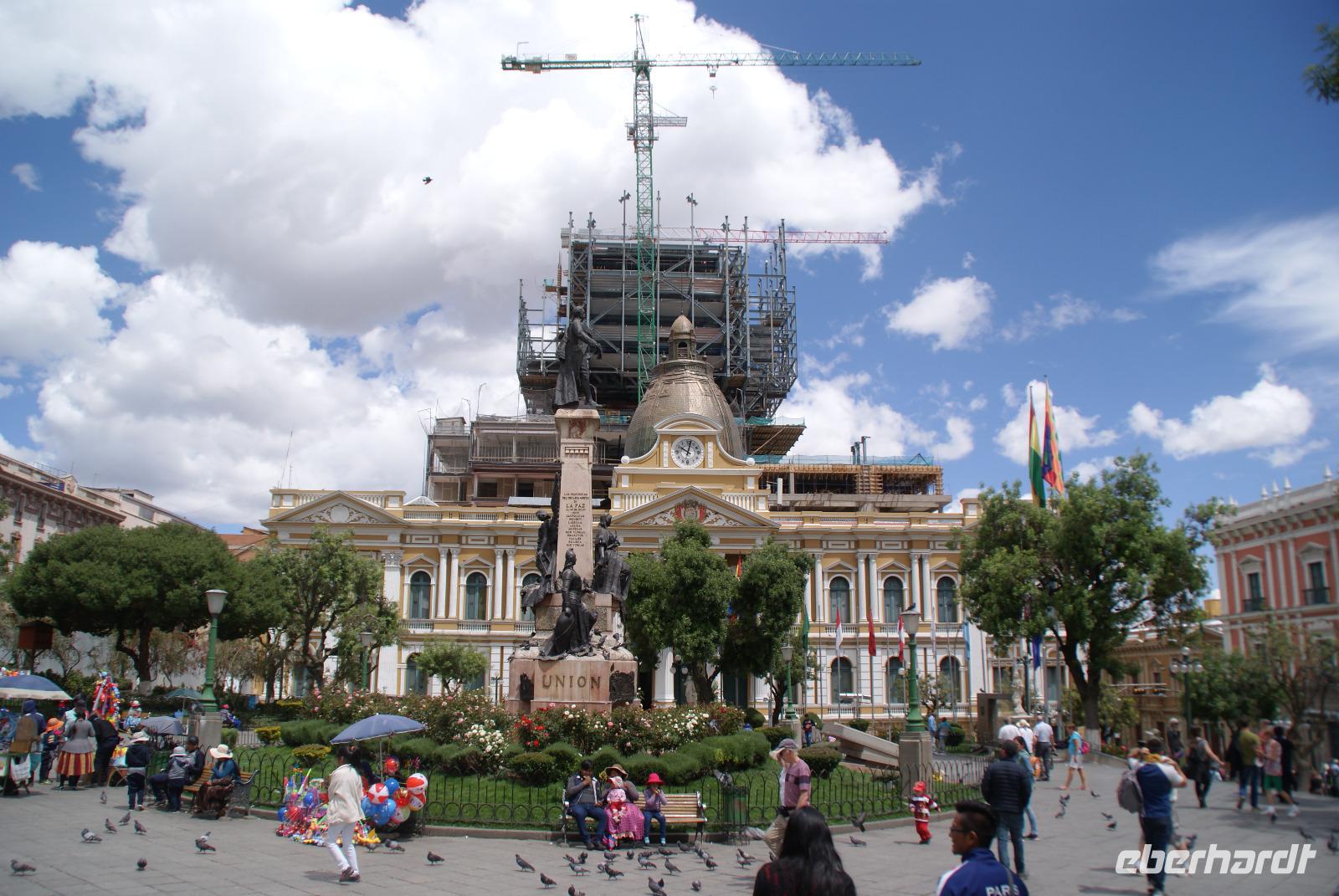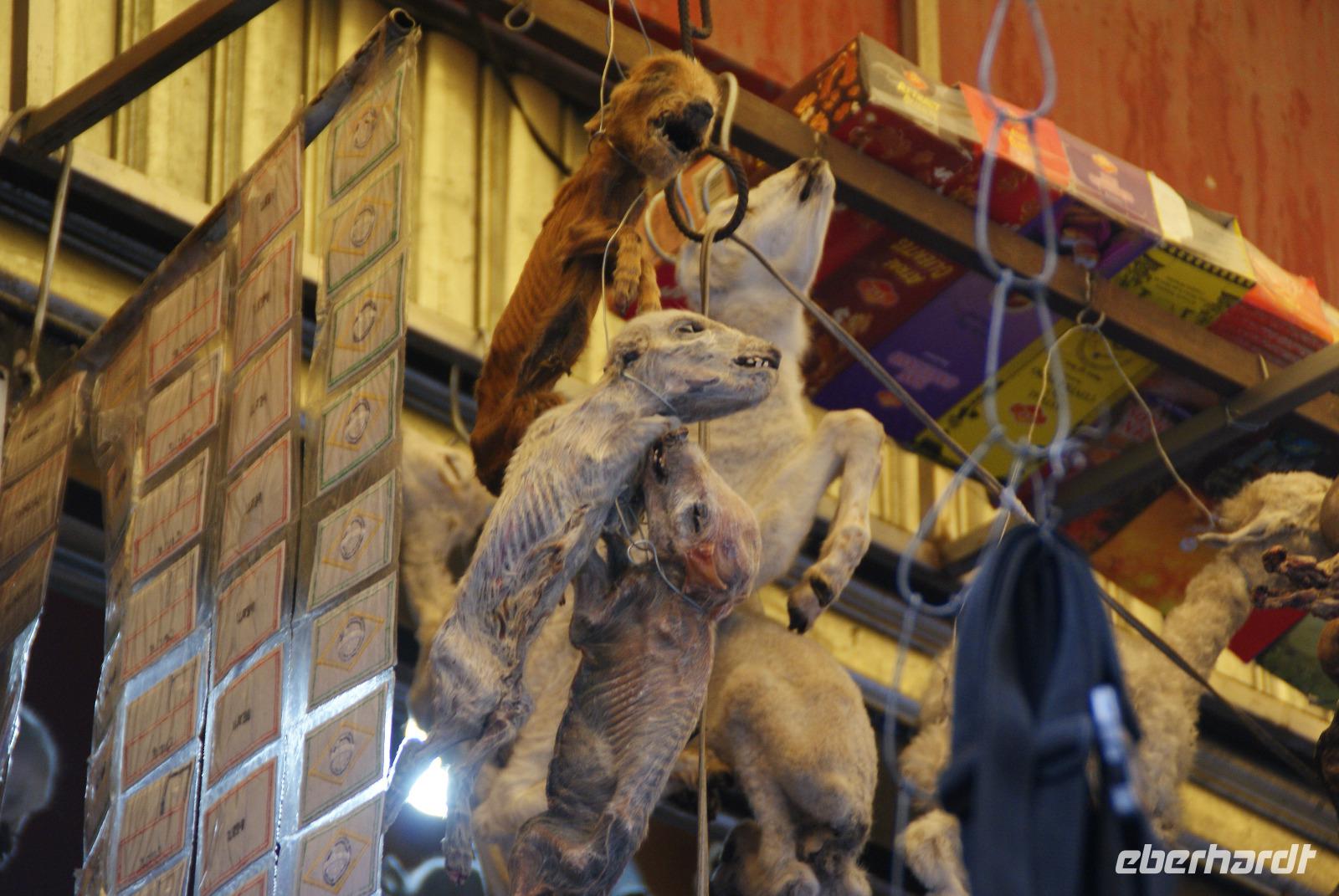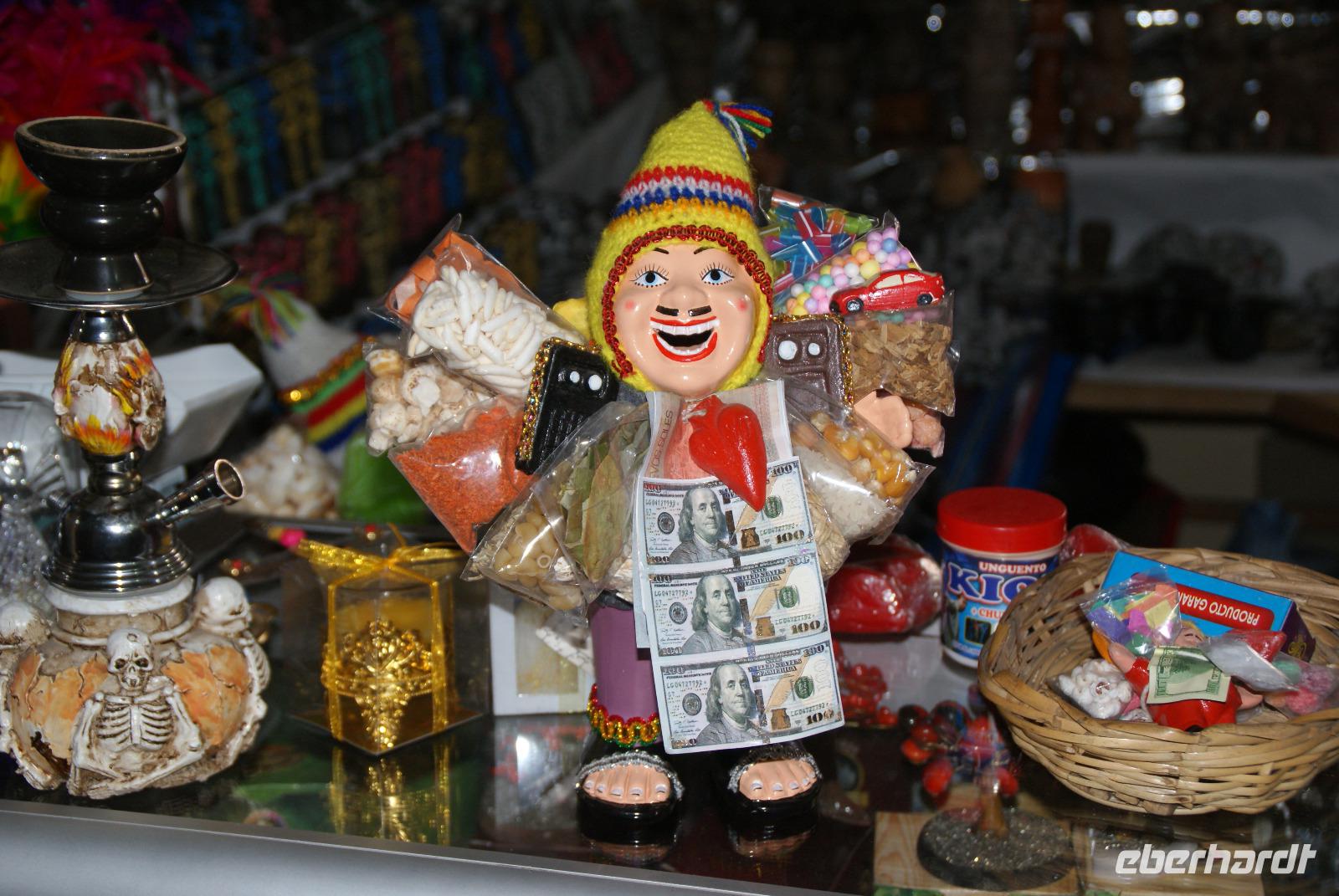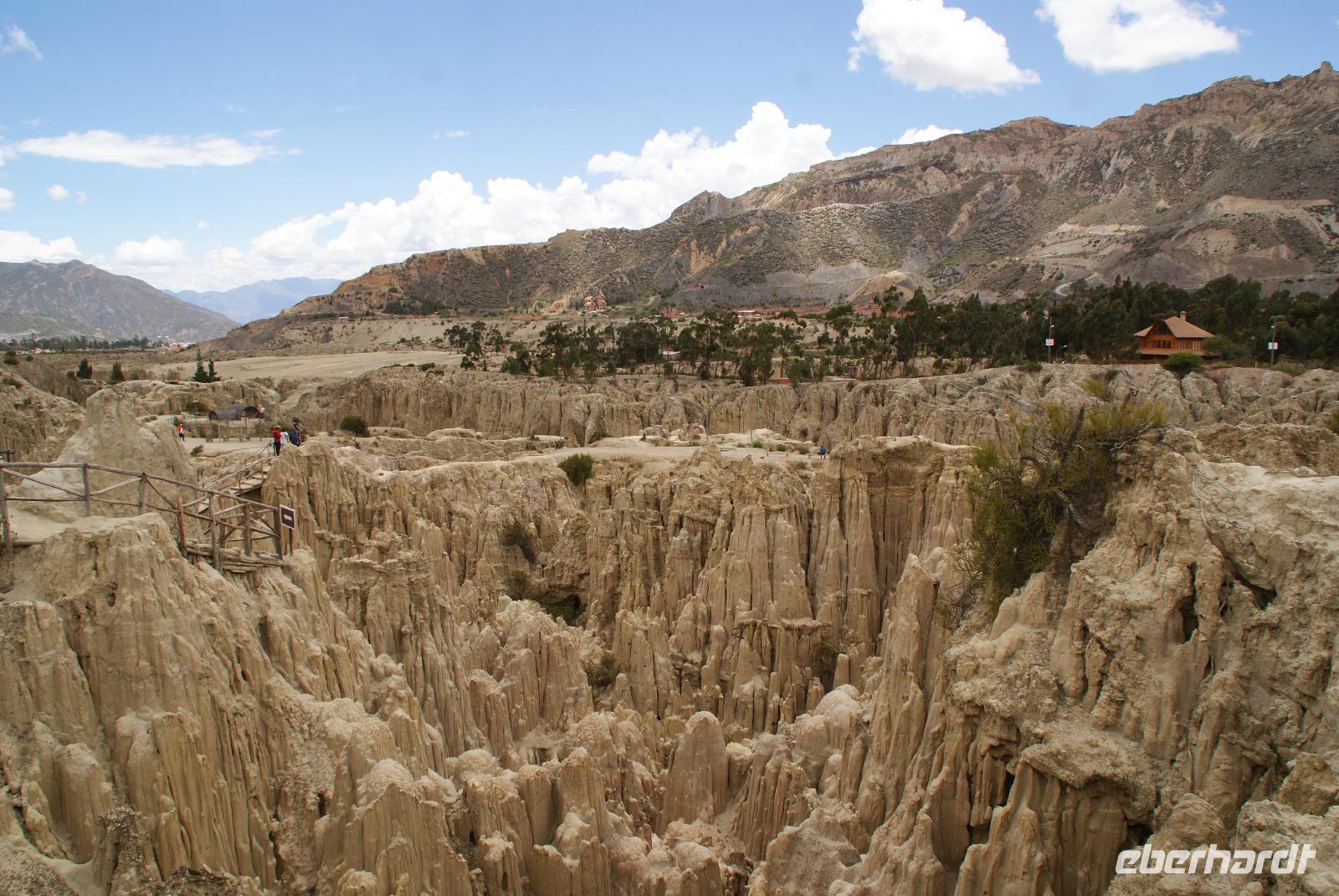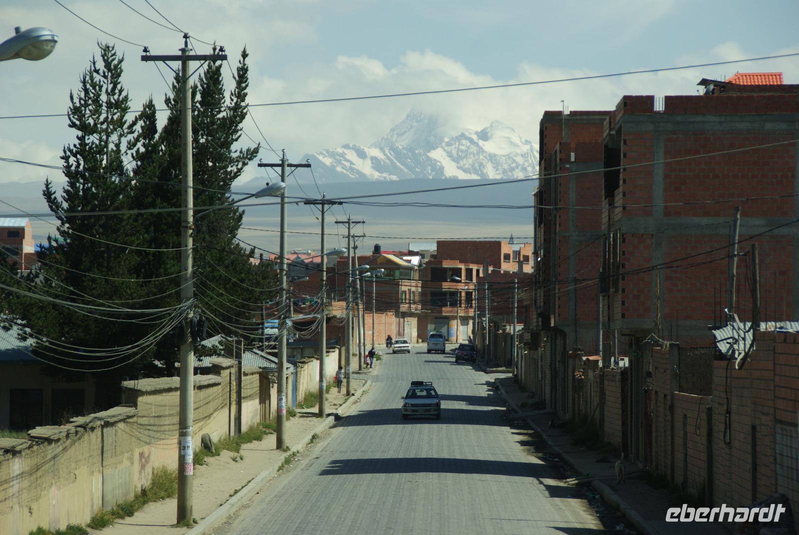 Wir erwachen bei strahlendem Sonnenschein und unglaublicher Kulisse mit Blick auf den Titicacasee. Gut gefrühstückt brechen wir auf und fahren nach La Paz, dem Regierungssitz Boliviens, welches 1,2 Millionen Einwohner fasst. Zunächst stoppen wir jedoch für wie Martin es sagt „Fotoalarm", denn wir haben einen grandiosen Ausblick auf die Königberge, die um die 6000m hoch und schneebedeckt sind. Einfach toll dieser Kontrast zur übrigen Landschaft. Weiter geht's und bald darauf kommen wir in El Alto, der Oberstadt von La Paz an. Diese ist ebenfalls eine riesen Stadt für sich, die bis 1985 zu La Paz gehörte und als die größte indigene Stadt der Welt mit aktuell 1 Mio Einwohner gilt. Martin zeigt uns die interessante Bauweise, wo ganze Häuser auf den Dächern von mehrstöckigen Gebäuden thronen. Hier wird für uns eine Überraschung bereitgehalten und wir fahren mit der erst vor wenigen Jahren erbauten Seilbahn der Firma Doppelmayr hinunter nach La Paz. So überwinden wir innerhalb von 40 Min. Fahrt eine Höhendistanz von 700m hinunter in die Unterstadt. Ein Wahnsinnsausblick bietet sich uns und wir haben von den Gondeln aus die Möglichkeit, diese riesen Stadt in all ihren Dimensionen zu bestaunen. Unten angekommen, sorgen wir zunächst für unser Mittagessen und folgen der Empfehlung unseres Reiseleiters und kosten die köstlichen Saltenas, verschieden gefüllte Teigtaschen. Anschließend besichtigen wir die interessanten Formationen des Mondtals. Dieses befindet sich 10 Km südöstlich von La Paz (= der Frieden) und besteht aus unzähligen Felsen, Felsformationen und Erdhügeln. Benannt wurden diese nach Nils Armstrong, der sie mit der Landschaft auf dem Mond verglich. Doch nun zurück ins spanische Viertel von La Paz und schon bald schlendern wir durch die Jaen Straße, die aus dem 17. Jahrhundert stammt und noch viele schöne alte und gut erhaltene Bauten vorzuweisen hat. An dessen Ende stoßen wir auf die Galerie des berühmten Malers Mamani Mamani und haben das große Glück diesen persönlich anzutreffen. Wir werden herzlich empfangen und auf seinen Wunsch machen wir mit ihm ein schönes gemeinsames Foto. Wir hören, dass dieser ein enger Freund des Präsidenten Evo Morales ist und befinden uns somit in prominenter Gesellschaft. Weiter geht die Stadtbesichtigung zum Plaza Murillo, an dem man des Weiteren auch die Kathedrale, den historischen und modernen Präsidentenpalast und das Parlament bestaunen kann. Eine tolle Kulisse, die wir bei bestem Wetter genießen. Nun wird es gruselig, wir begeben uns zum Hexenmarkt und im Haus einer Hexe führt uns Martin in die verschiedenen Rituale und Gebräuche der „brujas" ein. Wir entdecken gruselige Utensilien wie beispielsweise Lamaföten. Schnell ziehen wir weiter und genießen erst mal einen Kaffee in geselliger Runde. Abschließend werfen wir noch einen Blick auf die St. Francisco Kirche und checken anschließend in unser Ritz Apart Hotel ein. Ein Abendessen im Haus beendet unseren Aufenthalt in Bolivien und morgen früh heißt es auf zu neuen Abenteuern-Chile, wir kommen!