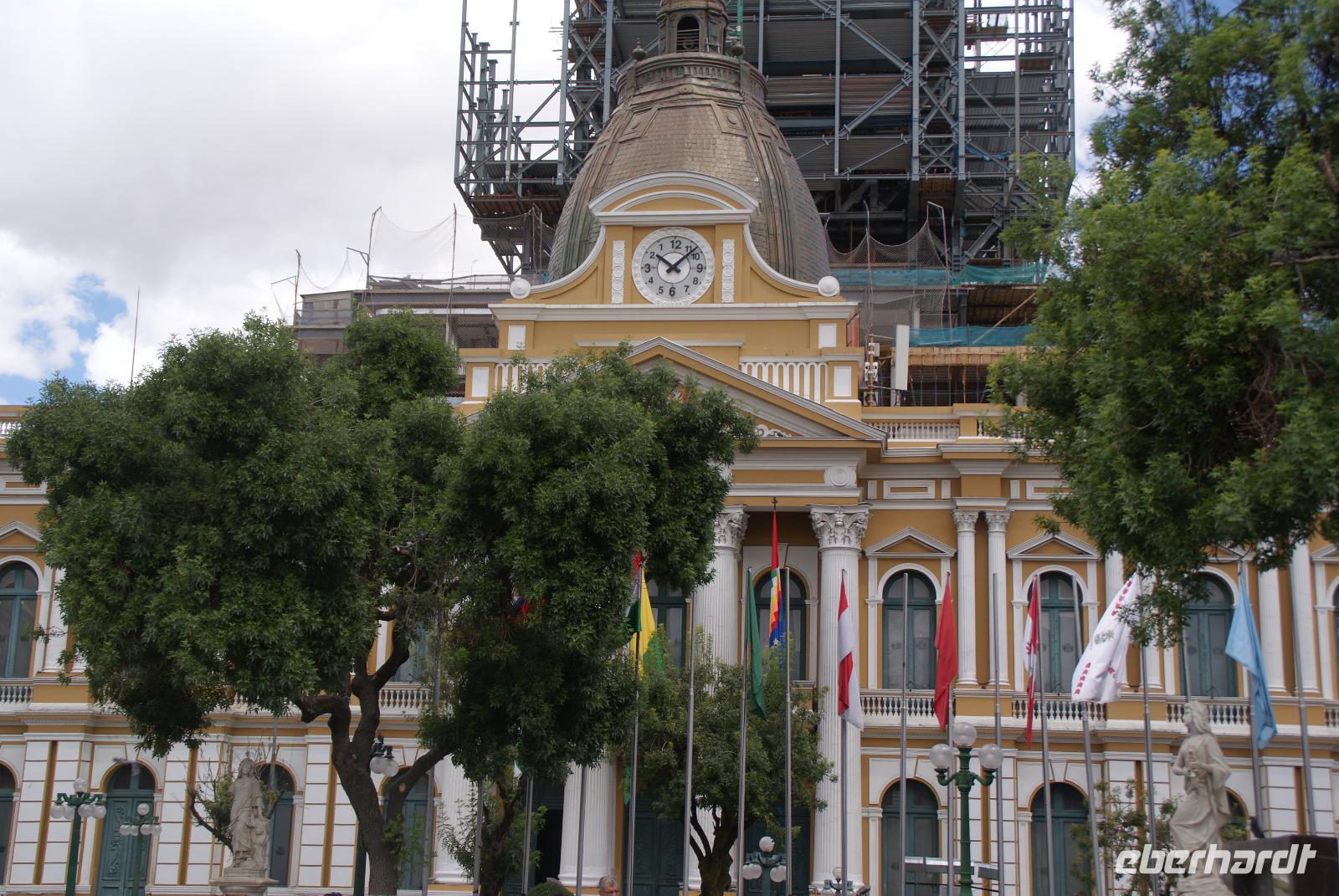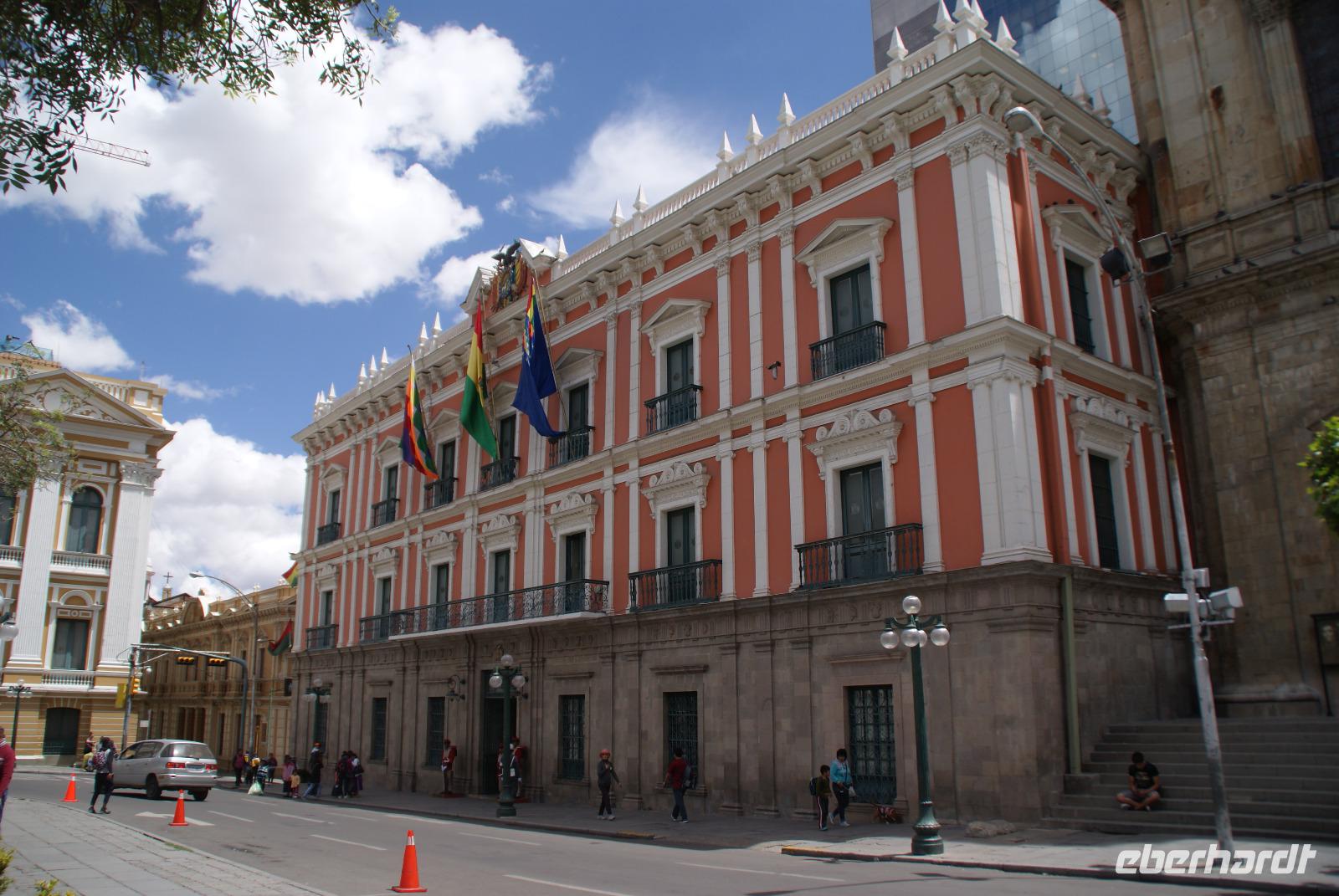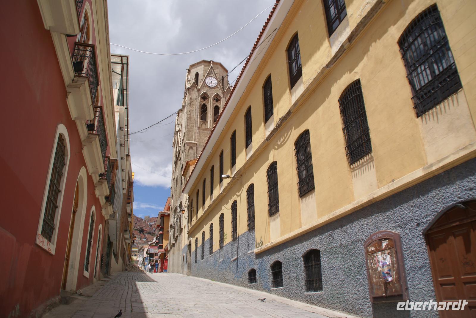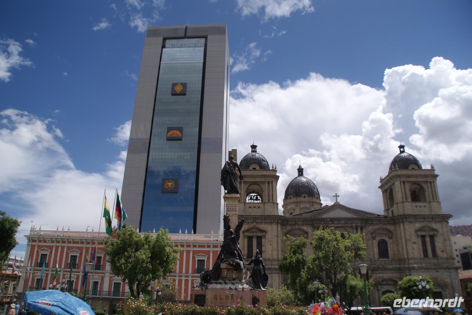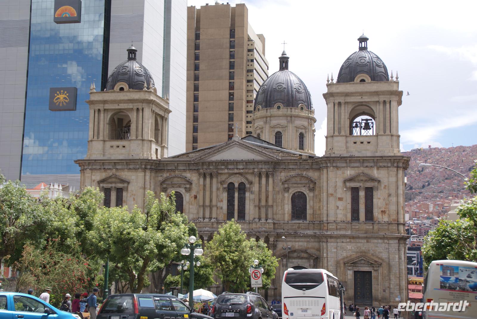 Wir erwachen bei strahlendem Sonnenschein und unglaublicher Kulisse mit Blick auf den Titicacasee. Gut gefrühstückt brechen wir auf und fahren nach La Paz, dem Regierungssitz Boliviens, welches 1,2 Millionen Einwohner fasst. Zunächst stoppen wir jedoch für wie Martin es sagt „Fotoalarm", denn wir haben einen grandiosen Ausblick auf die Königberge, die um die 6000m hoch und schneebedeckt sind. Einfach toll dieser Kontrast zur übrigen Landschaft. Weiter geht's und bald darauf kommen wir in El Alto, der Oberstadt von La Paz an. Diese ist ebenfalls eine riesen Stadt für sich, die bis 1985 zu La Paz gehörte und als die größte indigene Stadt der Welt mit aktuell 1 Mio Einwohner gilt. Martin zeigt uns die interessante Bauweise, wo ganze Häuser auf den Dächern von mehrstöckigen Gebäuden thronen. Hier wird für uns eine Überraschung bereitgehalten und wir fahren mit der erst vor wenigen Jahren erbauten Seilbahn der Firma Doppelmayr hinunter nach La Paz. So überwinden wir innerhalb von 40 Min. Fahrt eine Höhendistanz von 700m hinunter in die Unterstadt. Ein Wahnsinnsausblick bietet sich uns und wir haben von den Gondeln aus die Möglichkeit, diese riesen Stadt in all ihren Dimensionen zu bestaunen. Unten angekommen, sorgen wir zunächst für unser Mittagessen und folgen der Empfehlung unseres Reiseleiters und kosten die köstlichen Saltenas, verschieden gefüllte Teigtaschen. Anschließend besichtigen wir die interessanten Formationen des Mondtals. Dieses befindet sich 10 Km südöstlich von La Paz (= der Frieden) und besteht aus unzähligen Felsen, Felsformationen und Erdhügeln. Benannt wurden diese nach Nils Armstrong, der sie mit der Landschaft auf dem Mond verglich. Doch nun zurück ins spanische Viertel von La Paz und schon bald schlendern wir durch die Jaen Straße, die aus dem 17. Jahrhundert stammt und noch viele schöne alte und gut erhaltene Bauten vorzuweisen hat. An dessen Ende stoßen wir auf die Galerie des berühmten Malers Mamani Mamani und haben das große Glück diesen persönlich anzutreffen. Wir werden herzlich empfangen und auf seinen Wunsch machen wir mit ihm ein schönes gemeinsames Foto. Wir hören, dass dieser ein enger Freund des Präsidenten Evo Morales ist und befinden uns somit in prominenter Gesellschaft. Weiter geht die Stadtbesichtigung zum Plaza Murillo, an dem man des Weiteren auch die Kathedrale, den historischen und modernen Präsidentenpalast und das Parlament bestaunen kann. Eine tolle Kulisse, die wir bei bestem Wetter genießen. Nun wird es gruselig, wir begeben uns zum Hexenmarkt und im Haus einer Hexe führt uns Martin in die verschiedenen Rituale und Gebräuche der „brujas" ein. Wir entdecken gruselige Utensilien wie beispielsweise Lamaföten. Schnell ziehen wir weiter und genießen erst mal einen Kaffee in geselliger Runde. Abschließend werfen wir noch einen Blick auf die St. Francisco Kirche und checken anschließend in unser Ritz Apart Hotel ein. Ein Abendessen im Haus beendet unseren Aufenthalt in Bolivien und morgen früh heißt es auf zu neuen Abenteuern-Chile, wir kommen!