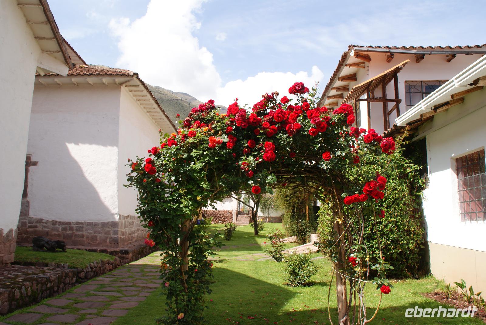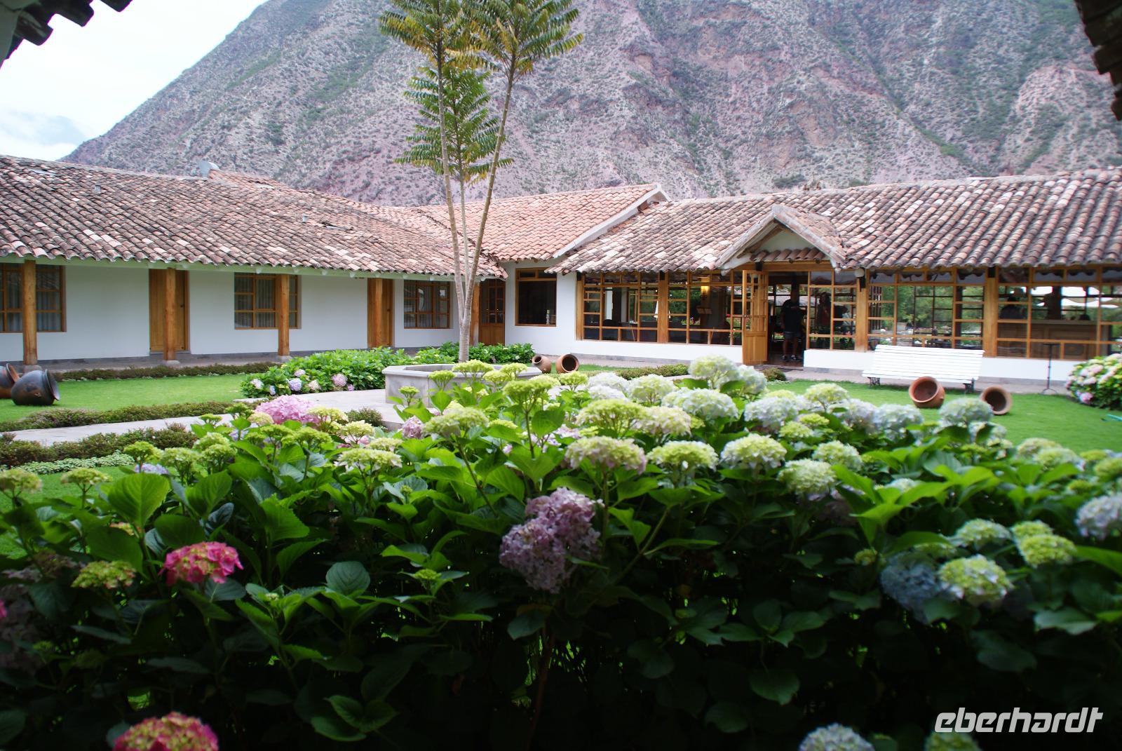 Heute verlassen wir Cusco für 2 Tage, lagern unsere Koffer ein und reisen mit kleinem Gepäck ab. Unsere Fahrt führt uns zunächst zur „Roten Festung" Pukapukara, wo wir uns eine weitere Inkastätte oberhalb von Cusco ansehen. Diese galt einst als eine der Kontakt-und Verwaltungsposten der Inkas. Ein weiterer schöner Spaziergang führt uns zu Tambomachay, wo es eine Inkastätte noch sehr gut erhalten zu besichtigen gilt. Wir erfreuen uns mindestens genauso über die bunt gekleideten indigenen Damen, die hier mit Lama, Lamm und Co. für Fotos posieren. Eine kleine Überraschung seitens Eberhardt TRAVEL soll nun folgen und wir sind zu einem Besuch bei „Sanctuario Animal de Cochahuasi" einer Art Tierauffangstation eingeladen. Hier haben wir die Möglichkeit verschiedene Andentiere beinahe hautnah zu erleben und so sehen wir die seltenen Vicunas, Brillenbären, Pumas, Lamas, Alpacas, Nackthunde und Condore. Welch ein Erlebnis einen riesigen Condor dicht an sich vorbeifliegen zu sehen und diesen besonderen Tieren der Anden so nah begegnen zu dürfen. Bevor wir Pisac erreichen, erfolgt noch ein Fotostopp mit Panoramablick auf das unter uns liegende Heilige Tal. In Pisac angekommen, genießen wir die Freizeit mit einem Bummel über den riesigen Souvenirmarkt und kehren zu einem Mittagssnack zu Cuchara de Palo ein. Am Nachmittag erfolgt ein Besuch des Sonnentempels von Ollantaytambo. Alle gemeinsam erklimmen wir die heilige Stätte und staunen über die noch gut erhaltenen Fassaden und über die Größe der Felsen, die hier einst verarbeitet wurden. Die Aussicht von hier oben ist einfach überwältigend und wir sind uns einig, dass sich der atemraubende Aufstieg mehr als gelohnt hat. Abschließend fahren wir zu unserem Hotel La Casona de Yucay und genießen das besondere Flair, welches an eine einstiege Hazienda erinnert. Ein Gaumenschmaus im Hotelrestaurant rundet den Abend ab und wir freuen uns auf das große morgige Highlight-Machu Picchu-wir kommen!
