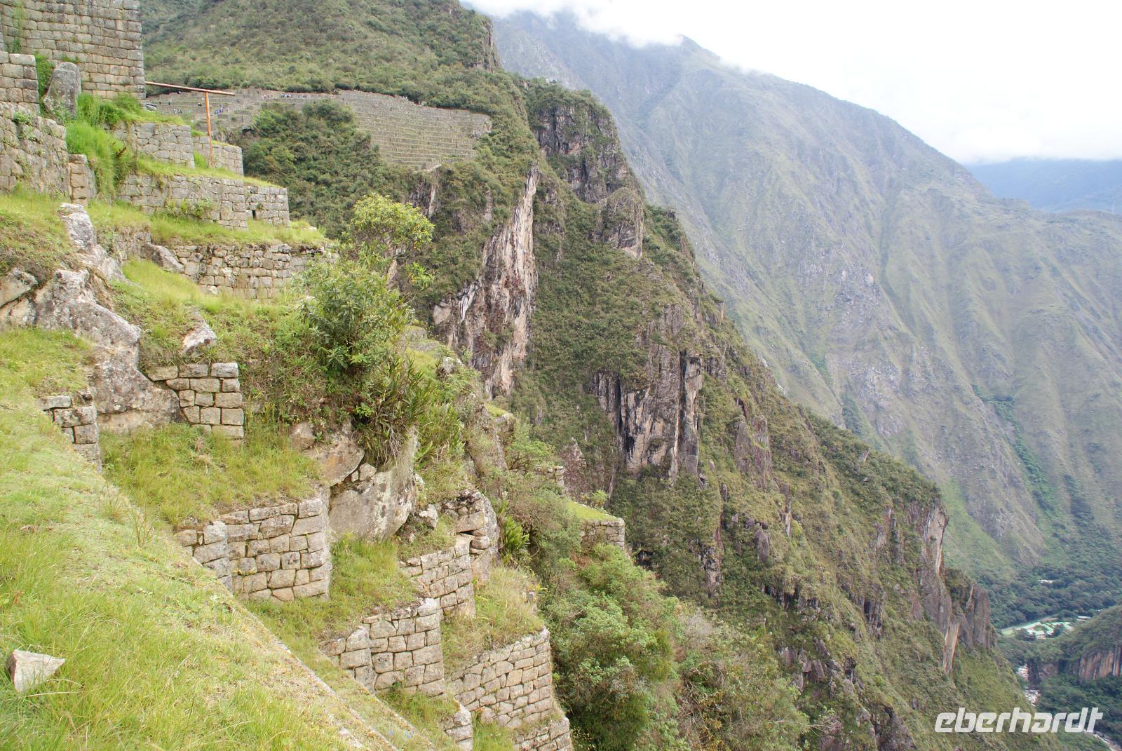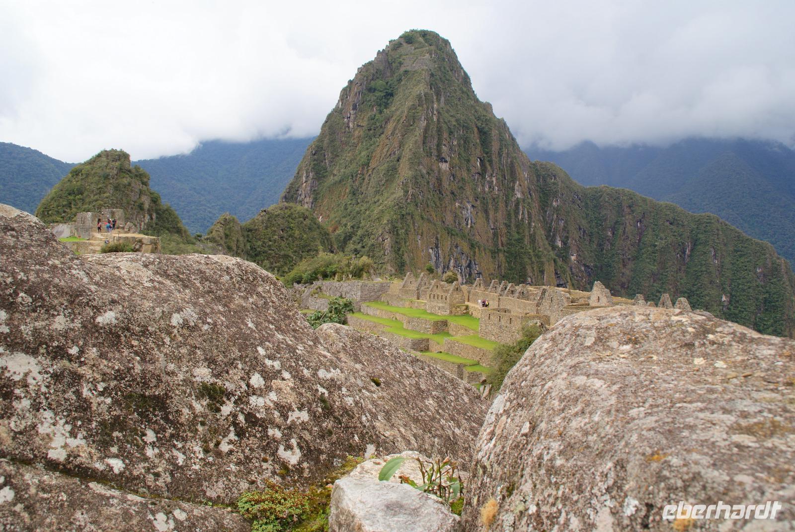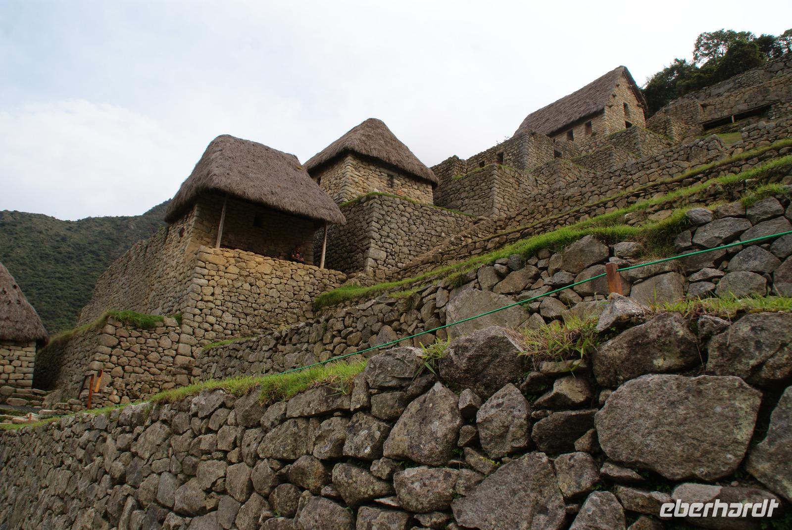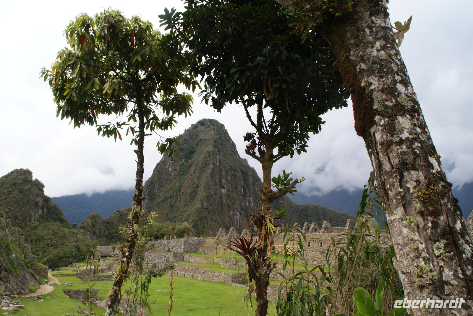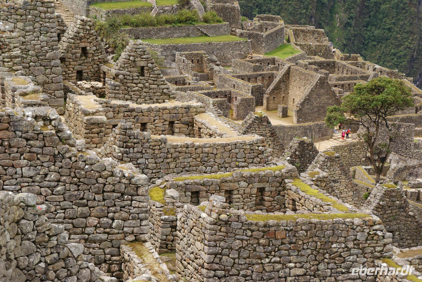 Bestens gefrühstückt verlassen wir die schöne Hazienda und fahren per Bus mit Caesar und Lucas nach Ollantaytambo, dem Bahnhof von wo aus der Perurail Zug nach Aguas Calientes fährt. Eine wunderschöne 1.5-stündige Zugfahrt führt uns malerisch durch eine grüne Schlucht, von wo wir auch immer den berühmten Inka Trail sehen. Auf diesem kann man sich einer 4-tägigen und 40 Km langen, geführten Trekking Tour zum Machu Picchu anschließen. Pünktlich kommen wir in Aguas Calientes an, gehen zu unserem Hotel El Mapi, erledigen die Formalitäten, deponieren unser Gepäck und starten zur Auffahrt zur Ruinenstadt Machu Picchu. Ein Shuttlebus bringt uns in 20 Minuten nach oben und wir stehen vor einem der größten Highlights dieser besonderen Reise. Zunächst gehen wir zu einem Aussichtspunkt und dürfen alles erst mal in Ruhe fotografieren und auf uns wirken lassen. Lucas erzählt uns ausführlich die Geschichte Machu Picchus und auch die verschiedenen Theorien, wer hier gewohnt hat und warum dieser Ort nach nur ca. 100 Jahren wieder verlassen wurde. Wir erfahren, dass die Anlage Machu Picchu alter Berg bedeutet, wobei man bei der klassischen Ansicht auf den „Wayna Picchu", den jungen Berg schaut. Die Stadt Machu Picchu wurde 1450 erbaut und umfasste in ihrer Hochzeit bis zu 1000 Bewohner. Wir spazieren durch die verschiedenen Bereiche und Häuser, sehen Versammlungs-und Opferplätze und auch Häuser, die originalgetreu wieder mit Dächern gedeckt wurden. Eine tolle Atmosphäre und es entstehen unzählige schöne Aufnahmen. Am Nachmittag kehren wir wieder per Bus nach Aguas Calientes vom beeindruckenden Ausflug zurück und nun genießt jeder nach Gusto den restlichen Nachmittag in diesem quirligen Örtchen. Ein schönes Abendessen im Hotel rundet den ereignisreichen Tag ab...
