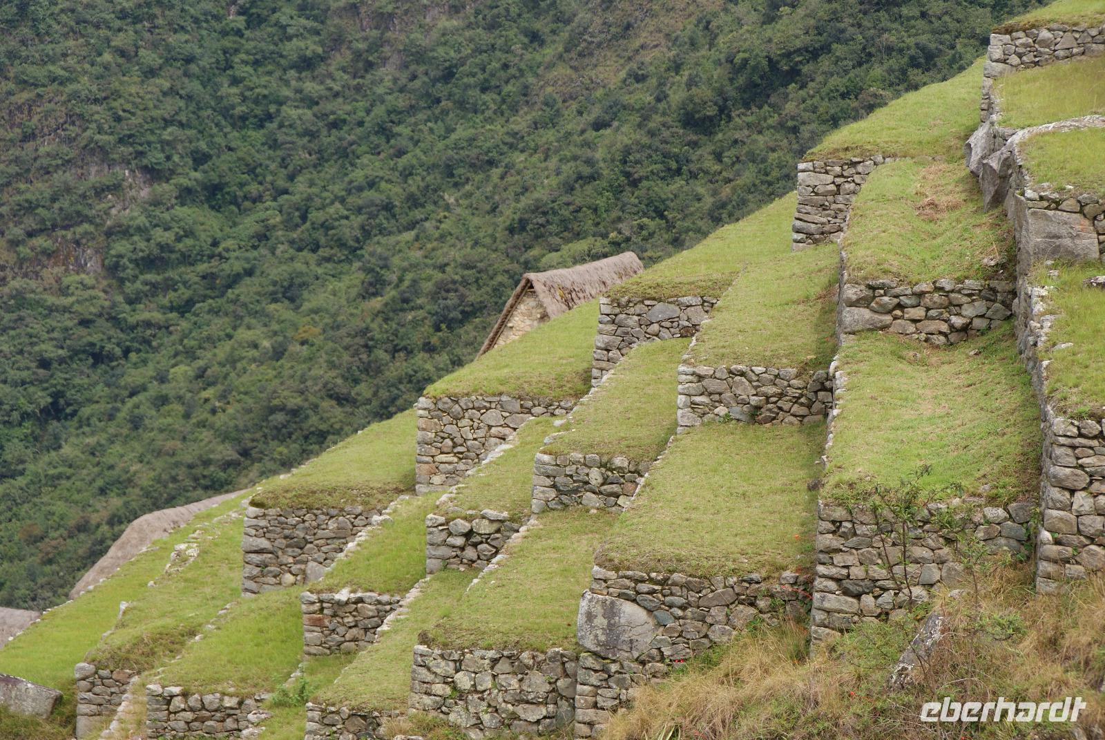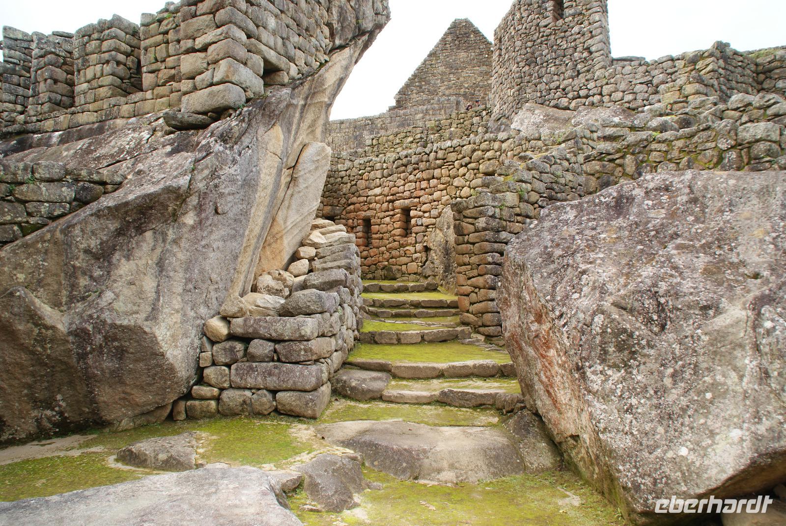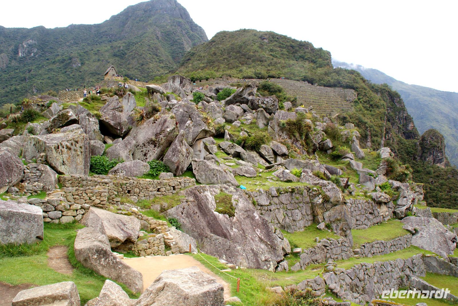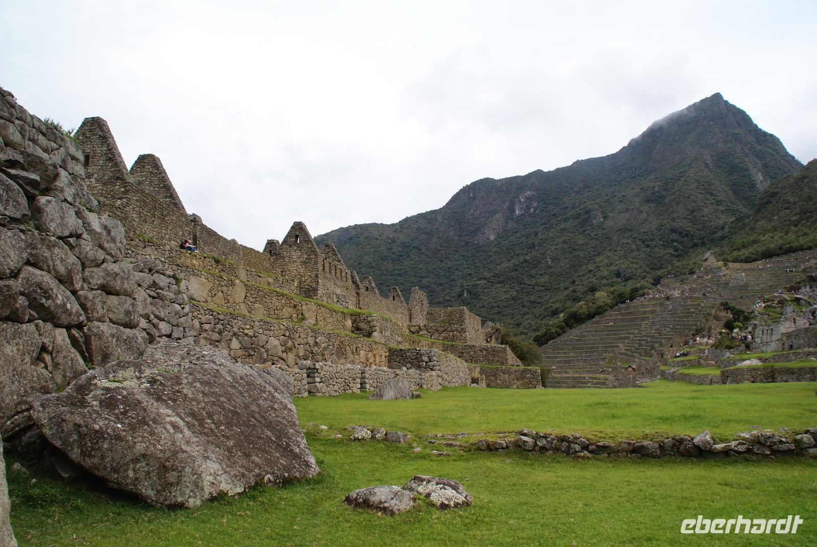 Bestens gefrühstückt verlassen wir die schöne Hazienda und fahren per Bus mit Caesar und Lucas nach Ollantaytambo, dem Bahnhof von wo aus der Perurail Zug nach Aguas Calientes fährt. Eine wunderschöne 1.5-stündige Zugfahrt führt uns malerisch durch eine grüne Schlucht, von wo wir auch immer den berühmten Inka Trail sehen. Auf diesem kann man sich einer 4-tägigen und 40 Km langen, geführten Trekking Tour zum Machu Picchu anschließen. Pünktlich kommen wir in Aguas Calientes an, gehen zu unserem Hotel El Mapi, erledigen die Formalitäten, deponieren unser Gepäck und starten zur Auffahrt zur Ruinenstadt Machu Picchu. Ein Shuttlebus bringt uns in 20 Minuten nach oben und wir stehen vor einem der größten Highlights dieser besonderen Reise. Zunächst gehen wir zu einem Aussichtspunkt und dürfen alles erst mal in Ruhe fotografieren und auf uns wirken lassen. Lucas erzählt uns ausführlich die Geschichte Machu Picchus und auch die verschiedenen Theorien, wer hier gewohnt hat und warum dieser Ort nach nur ca. 100 Jahren wieder verlassen wurde. Wir erfahren, dass die Anlage Machu Picchu alter Berg bedeutet, wobei man bei der klassischen Ansicht auf den „Wayna Picchu", den jungen Berg schaut. Die Stadt Machu Picchu wurde 1450 erbaut und umfasste in ihrer Hochzeit bis zu 1000 Bewohner. Wir spazieren durch die verschiedenen Bereiche und Häuser, sehen Versammlungs-und Opferplätze und auch Häuser, die originalgetreu wieder mit Dächern gedeckt wurden. Eine tolle Atmosphäre und es entstehen unzählige schöne Aufnahmen. Am Nachmittag kehren wir wieder per Bus nach Aguas Calientes vom beeindruckenden Ausflug zurück und nun genießt jeder nach Gusto den restlichen Nachmittag in diesem quirligen Örtchen. Ein schönes Abendessen im Hotel rundet den ereignisreichen Tag ab...