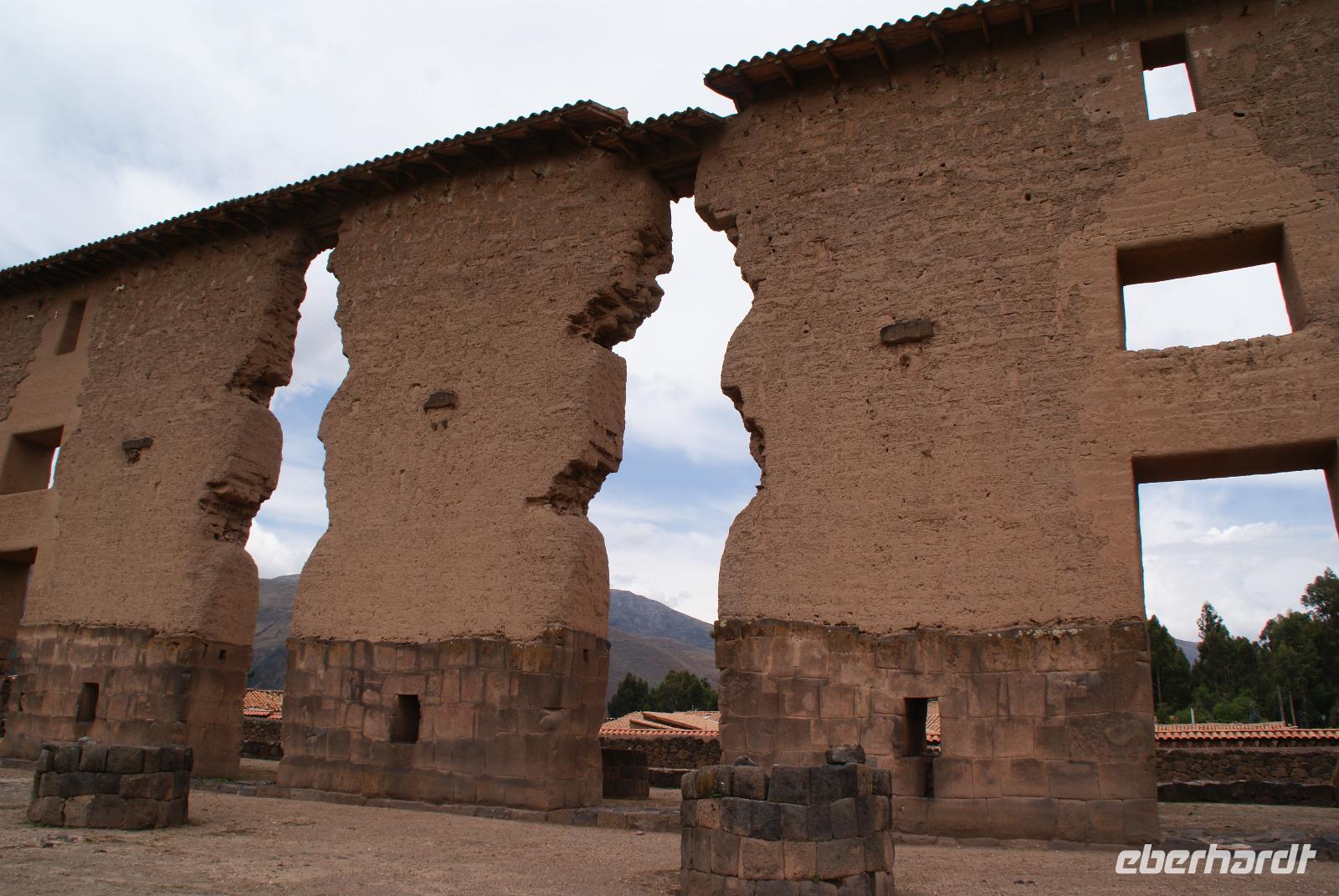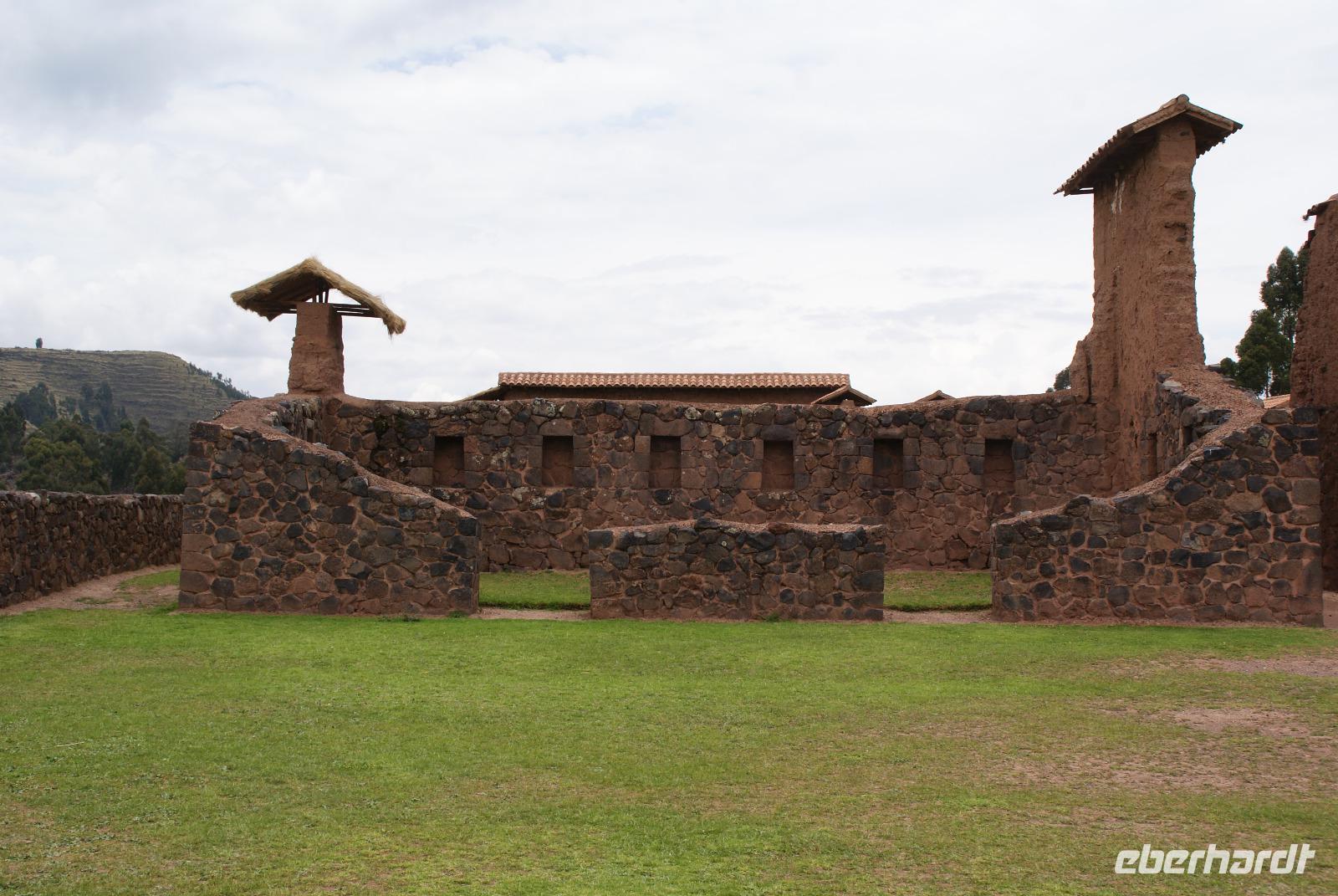 Wir genießen ein letztes Frühstück im schönen Cusco und müssen uns nach kurzem Transfer zum Busbahnhof von unserem lieben Busfahrer Caesar verabschieden. Für die lange Fahrt nach Puno erhalten wir einen großen Bus und zwei neue Busfahrer Americano und David. Auf unserer heutigen Strecke fahren wir durch diverse Ortschaften wie beispielsweise Saylla, bekannt für Chicaron, eine Schweinefleischspezialität, Oropesa, bekannt für seine vielen Bäckereien, Huasau, bekannt für Cuy also Meerschweinspezialitäten. Wir besichtigen die Kirche St. Pedro, die Ende des 16. Jahrhunderts erbaut wurde und staunen für deren farbenfrohes und prächtiges Interieur. Wir erfahren von Lucas, dass früher die Messen vom Außenbalkon der Kirche zum Platz hin gehalten wurden und erst später in der Kirche selbst stattfanden. Auf unserer Weiterfahrt sehen wir viele indigene Frauen und wir hören, dass diese traditionell zwischen 3-10 Röcke übereinander tragen, dazu eine Weste oder Strickjacke und natürlich darf auch der markante Hut mit geflochtenen Zöpfen nicht fehlen. In Raqchi angekommen besichtigen wir die dort vorhandene und noch gut erhaltene Inkastätte und schlendern anschließend über den kleinen Souvenirmarkt. Nachdem wir im Restaurant Feliphorn zum Mittag gegessen haben, fahren wir weiter über das Altiplano zum höchsten Punkt und halten auf 4.335m Höhe um dies natürlich mit unzähligen Fotos umrahmt von indigenen Damen mit Alpacas festzuhalten. Hier oben herrscht ein kühler Wind und auf unserer Weiterfahrt nach Puno erleben wir alles vom Gewitter bis zum bereits am Boden liegenden Hagel +Sonnenuntergang. Bevor wir Puno am Abend erreichen durchfahren wir noch die Stadt Juliaca, welche die größte Stadt des Hochlands mit 300.000 EW ist. Auch das hier herrschende Verkehrschaos beherrschen unsere Fahrer mit Bravour und wir können über deren Fahrkünste und Gelassenheit nur staunen. In Puno angekommen müssen wir uns nun von unserem netten Reiseleiter Lucas verabschieden. Gerne hätten wir ihn noch viele weitere Tage bei uns gehabt. Es erfolgt ein geselliges Abendessen und müde fallen wir von einem erlebnisreichen Tag in unsere Betten.
