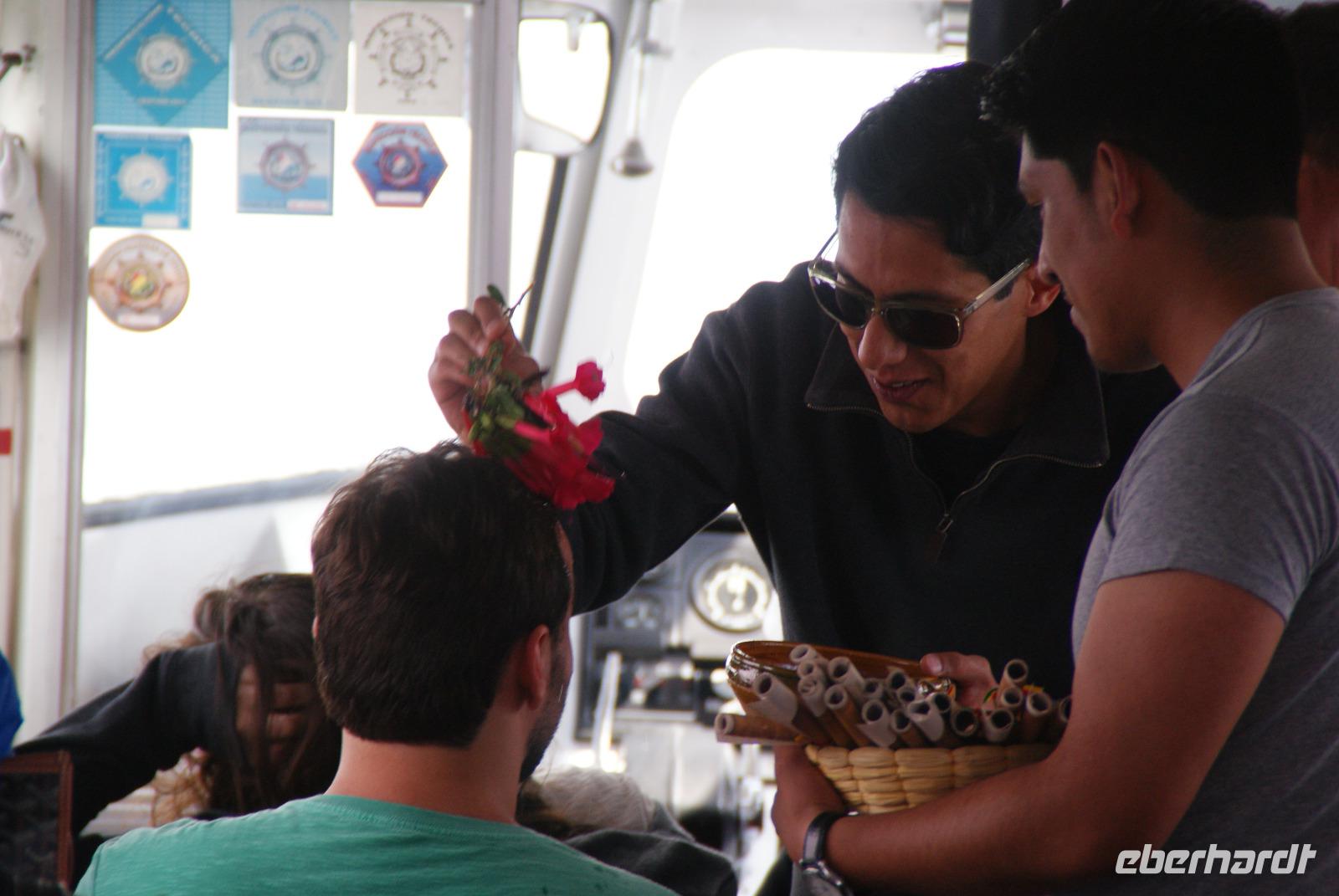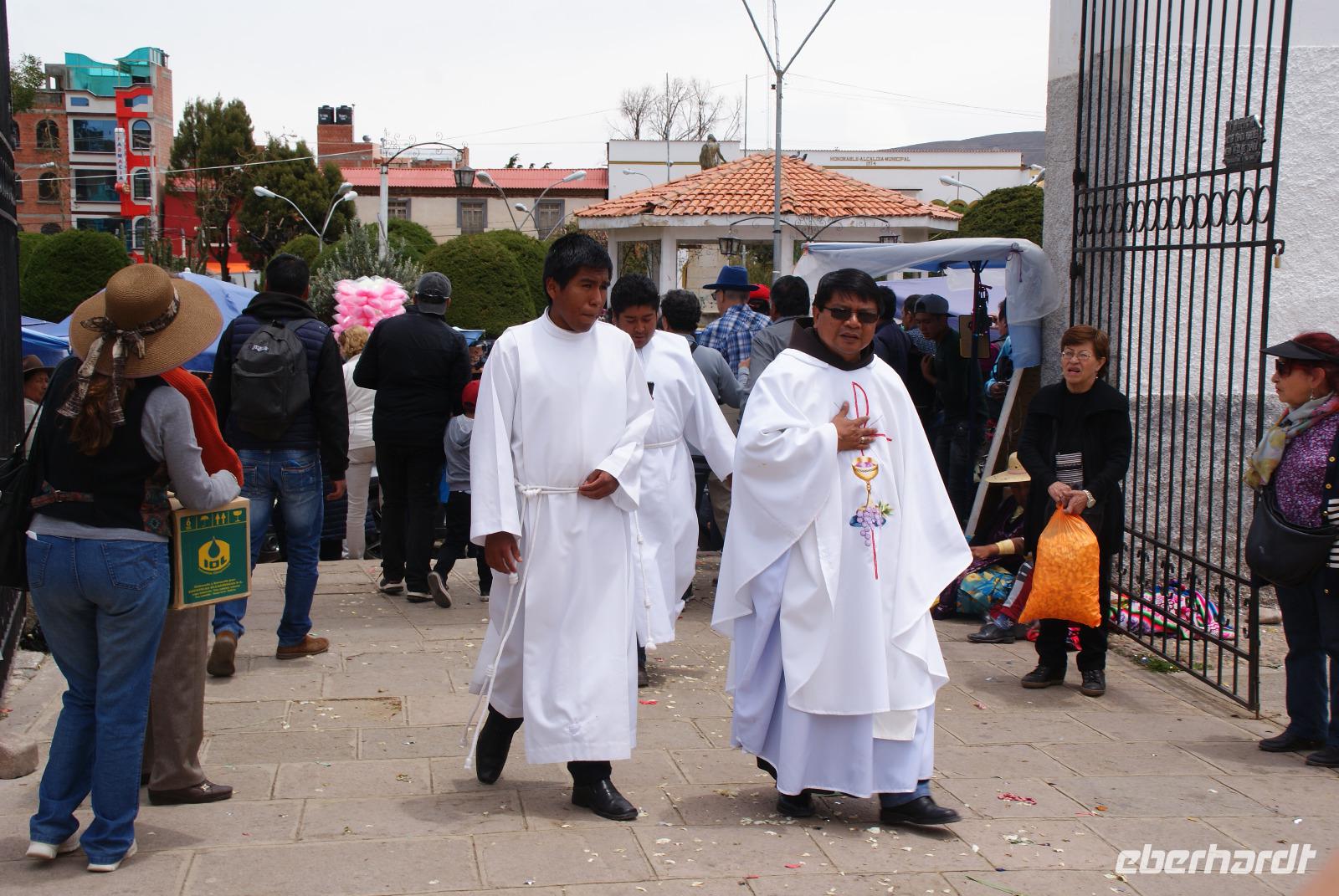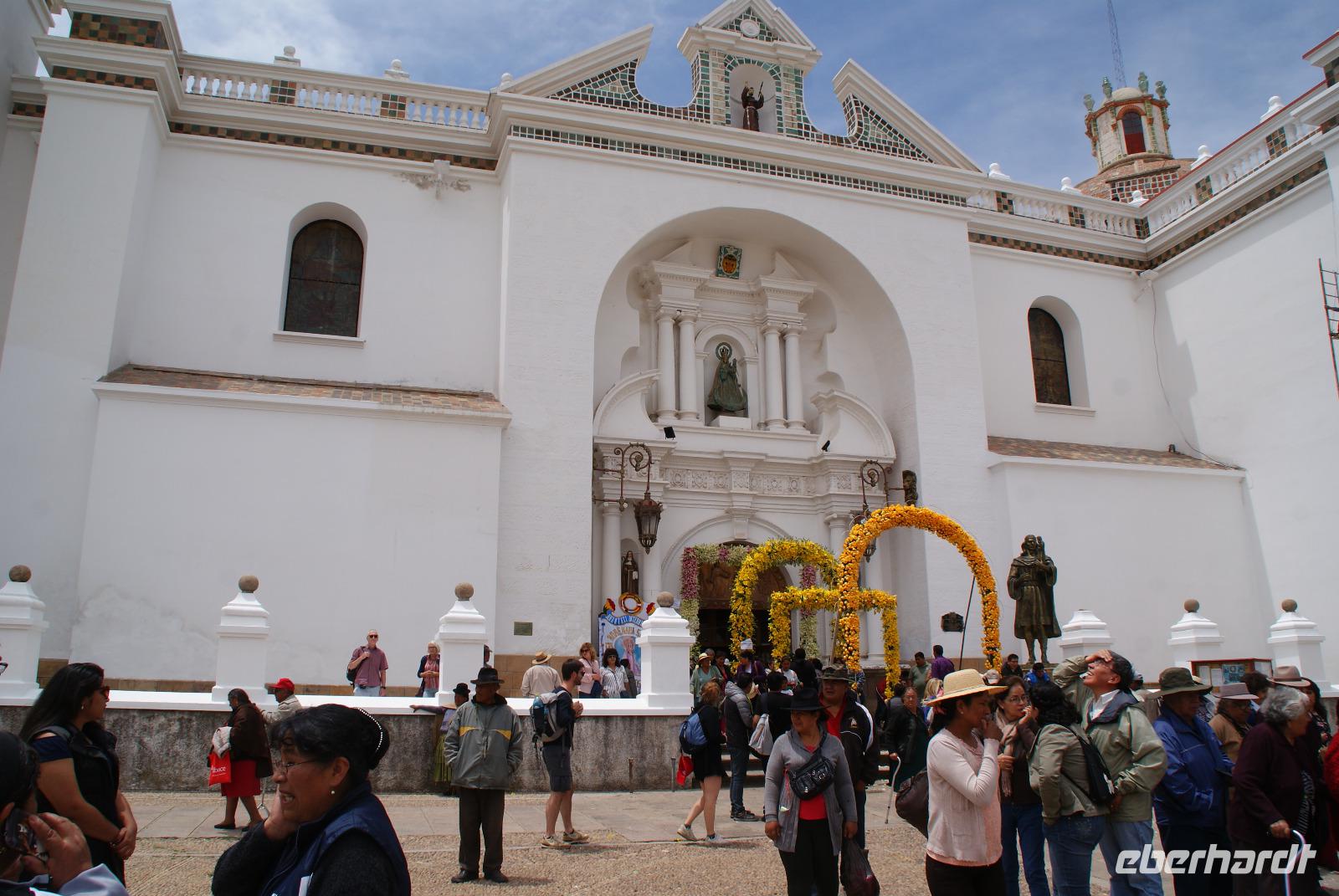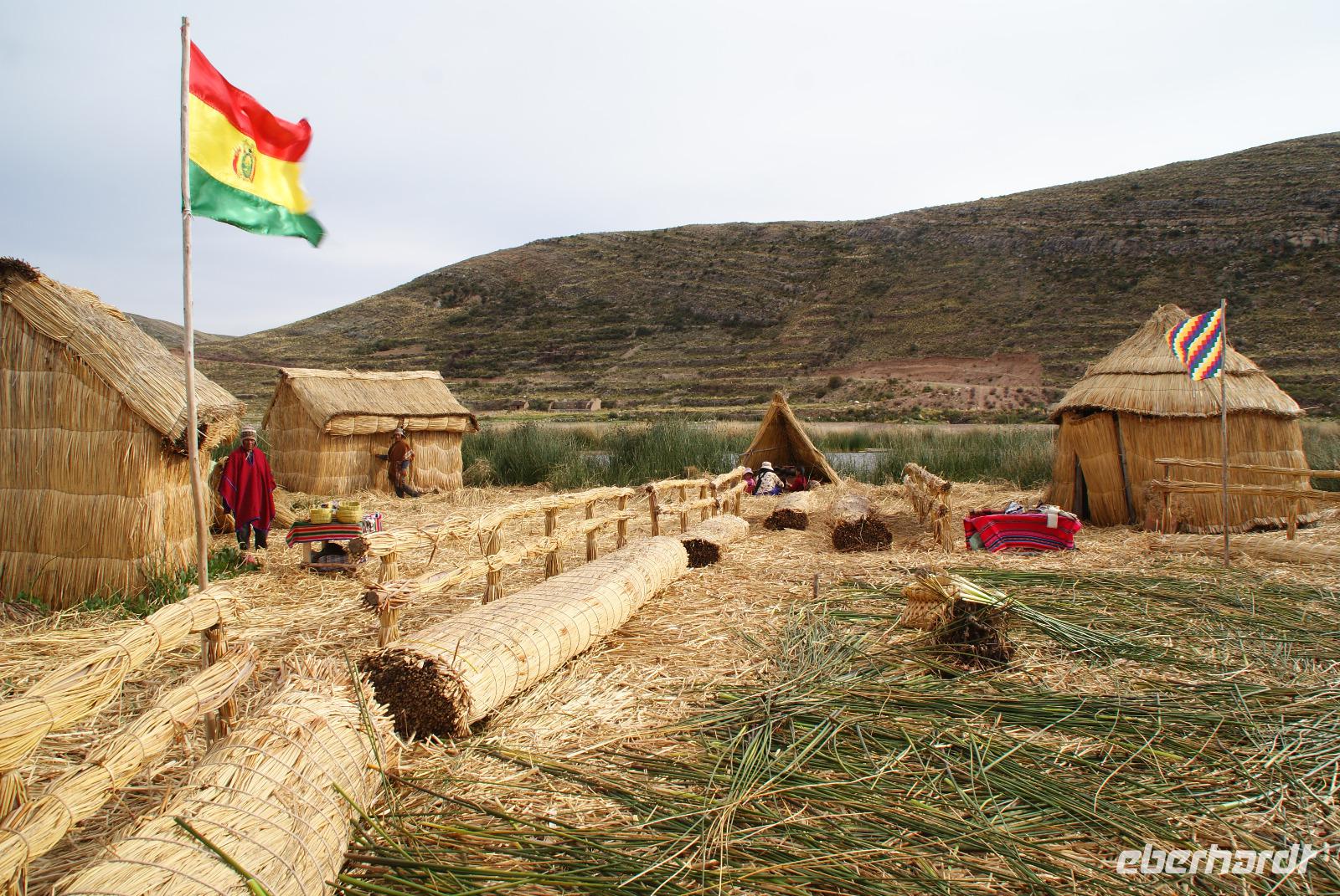 Heute frühstücken wir mit herrlichem Blick auf den Titicacasee. Bestes Wetter erwartet uns und mit unserer Reiseleiterin Inka, die uns bis zur bolivianischen Grenze bringt, starten wir in den Tag. Mit vielen interessanten Informationen versüßt uns Inka die Zeit, die uns in Peru noch bleibt. So erfahren wir, dass der Ort Puno 350 Jahre alt ist und um 1668 gegründet wurde. Heute ist Markttag und wir sehen viele Menschen, die ihre Ware zum Markt bringen oder bereits gekaufte Schafe abtransportieren. Nach alter Tradition stellt man einen Glücksbringer ins Fenster, der mit dem wichtigsten behangen, für gute Geschäfte sorgen soll. Inka berichtet, dass der Titicacasee zwischen 8-12 Grad hat und die Luft hier im Winter bis zu -10 Grad werden kann. Somit wächst hier auch nur bedingt etwas wie beispielsweise Zwiebeln, Kartoffeln, Quinoa. Puno und Umgebung ist außerdem bekannt für die Forellenzucht. Auf dem Weg zur Grenze sehen wir viele gelbe Kanister, die darauf hinweisen, dass hier auf dem Schwarzmarkt Benzin aus Bolivien verkauft wird. Wir passieren den kleinen Ort Juli, der einst als kleines Rom bekannt wurde. Leider ist heute außer 2-3 Kirchen nichts mehr vom italienischen Charme sichtbar. Wir erreichen die Grenze und reisen zu Fuß aus Peru aus und zu Fuß in Bolivien ein. Unser Gepäck reist per Handkarren mit uns und in Bolivien angekommen werden wir von unserem neuen Reiseleiter Martin herzlich empfangen. Unser erstes Ziel im neuen Land ist der Ort Copacabana, wo wir die berühmte Kirche ansteuern. Wir staunen nicht schlecht, welch Spektakel uns empfängt. Genau zur richtigen Zeit verlässt eine Gruppe die Kirche, wird mit lauter Musik und Böllern begleitet, wir mittendrin. Ein Spaziergang durch den Ort und bald darauf fahren wir per Boot zur Sonneninsel, wo wir in einem Eco Resort zu Mittag erwartet werden. Vorab müssen wir jedoch die alten Inkatreppen nach oben und wir sind mal wieder ziemlich außer Puste. Nach dem idyllischen Aufenthalt geht unsere Reise weiter zur Mondinsel, wo ein Besuch des Jungfrauentempels erfolgt. Das nächste Highlight sollte folgen und unser Programm führt uns zu den Urus, den schwimmenden Inseln mit dessen Bewohnern. Ein beeindruckender Aufenthalt bei diesen besonderen Menschen und deren Lebensweise. Im Hotel angekommen ziehen die meisten von uns nochmals mit Reiseleiter Martin zu den verschiedenen Museen, die uns hier umgeben. Nach einem absolut erlebnisreichen Tag sehen wir uns beim Abendessen im Hotel und Live Musik wieder.
