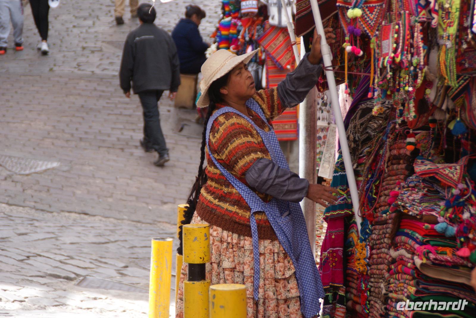 Als hätten wir es geahnt...wir erwachen und es gießt in Strömen. Somit möchte natürlich niemand von uns mehr hoch zu Machu Picchu und wir treffen uns erst mal gemütlich zu einem ausgiebigen Frühstück. Danach schlendern wir gemeinsam durch den Ort zum Geld wechseln, stöbern durch den Souvenirmarkt und wer hätte es gedacht-natürlich finden wir so manches...Heute haben wir noch eine besondere Mission, unsere männlichen Gäste möchten die peruanische Spezialität Cuy (Meerschweinchen) probieren. So kundschaften wir verschiedene Lokale aus und staunen mittags über das arme Schweinchen, welches knusprig serviert und durch vier Mäuler geteilt wird. Wir genießen die beste Lage in der Fußgängerzone und beobachten das geschäftige Treiben. Am Nachmittag bringt uns Perurail wieder sicher mit dem Panoramazug zurück nach Ollantaytambo , während wir bestens bei Kaffee und Kuchen und einer netten Modenschau seitens des Zugpersonals unterhalten werden. Am späten Abend erreichen wir Cusco, kehren in ein schönes Lokal in der Altstadt ein und nächtigen nochmals in dem uns schon bekannten Novotel, gleich um die Ecke.