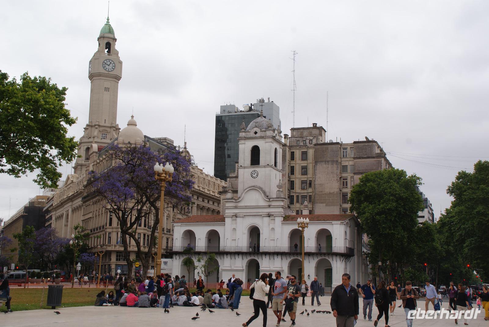 Bestens geschlafen und gut gefrühstückt starten wir zur heutigen City Tour durch Buenos Aires. Mit Reiseleitung Deborah und Busfahrer Herrmann fahren wir zunächst am Wahrzeichen der Stadt dem Obelisk vorbei, sehen dann die Staatsoper, die Jura Fakultät und machen einen Fotostopp an der Floralis Generica, dem tollen Blumen-Kunstobjekt. Entlang vieler internationaler Botschaften folgen wir der 33 Km langen Avenida del Libertador zum Plaza Evita, wo wir das einzige Denkmal Evita Perons in Buenos Aires sehen. Maria Eva Duarte (kurz Evita genannt) wird es auch mit verdankt, dass das Wahlrecht für Frauen 1951 eingeführt wurde. Sie wurde sehr berühmt und populär, verstarb leider im jungen Alter von 33 Jahren. Deswegen führt uns unsere Tour zum berühmten Recoletta Friedhof mit 4000 Mausoleen und wir streifen durch diverse Wege und Gänge und staunen über die riesigen Totenhäuser mit sichtbaren Särgen, die gerne schon mal 300000 US$ kosten können, zzgl. der regelmäßigen Pflege natürlich. Dank Debi unserer Reiseleitung finden wir auch das Mausoleum von Evita, welches sich eher etwas unscheinbar in einem Seitengang im Kreis ihrer Familie befindet. Zurück zu den Lebenden zieht es uns anschließend wieder in die quirlige Innenstadt und am Hafen entlang sehen wir das Zollamt und das Verteidigungsminister. Wir halten am Plaza de Mayo, wo wir den Regierungspalast sehen und die beeindruckende Kathedrale besichtigen. Auf dem Plaza de Mayo sehen wir Kopftücher aufgemalt, die symbolisch an die Mütter erinnern, die Jahrzehnte hier aufgrund ihrer zu tausenden verschwundenen Familienmitglieder protestierten. Am Nachmittag gehen wir zu Fuß erneut zum Hafen und nehmen einen leckeren Mittagssnack ein. Wir schlendern zurück zum Hotel und ruhen ein bisschen aus um für die heutige Tangoshow am Abend fit zu sein. Per Transporteur des Hauses sind wir bald im „Gala Tango" und werden im VIP Bereich platziert. Nach einem schmackhaften 3-Gänge Menü startet bald die Tango Show und wir sind sehr begeistert von der Vielseitigkeit der Auftritte. Neben absolut professionellen Tangotänzern, treten auch Sänger, Liveband, Gauchos und ein Geiger, eher ein Virtuose, auf. Eine Show voller Highlights zieht uns in ihren Band und den großen Showdown bildet „Don't cry for me Argentina" und die Argentinische Fahne wird geschwenkt. Emotionsgeladen verlassen wir dieses besondere Etablissement und werden wieder zum Hotel zurück gebracht...Was für ein Abend mit einem unvergesslichen Erlebnis.