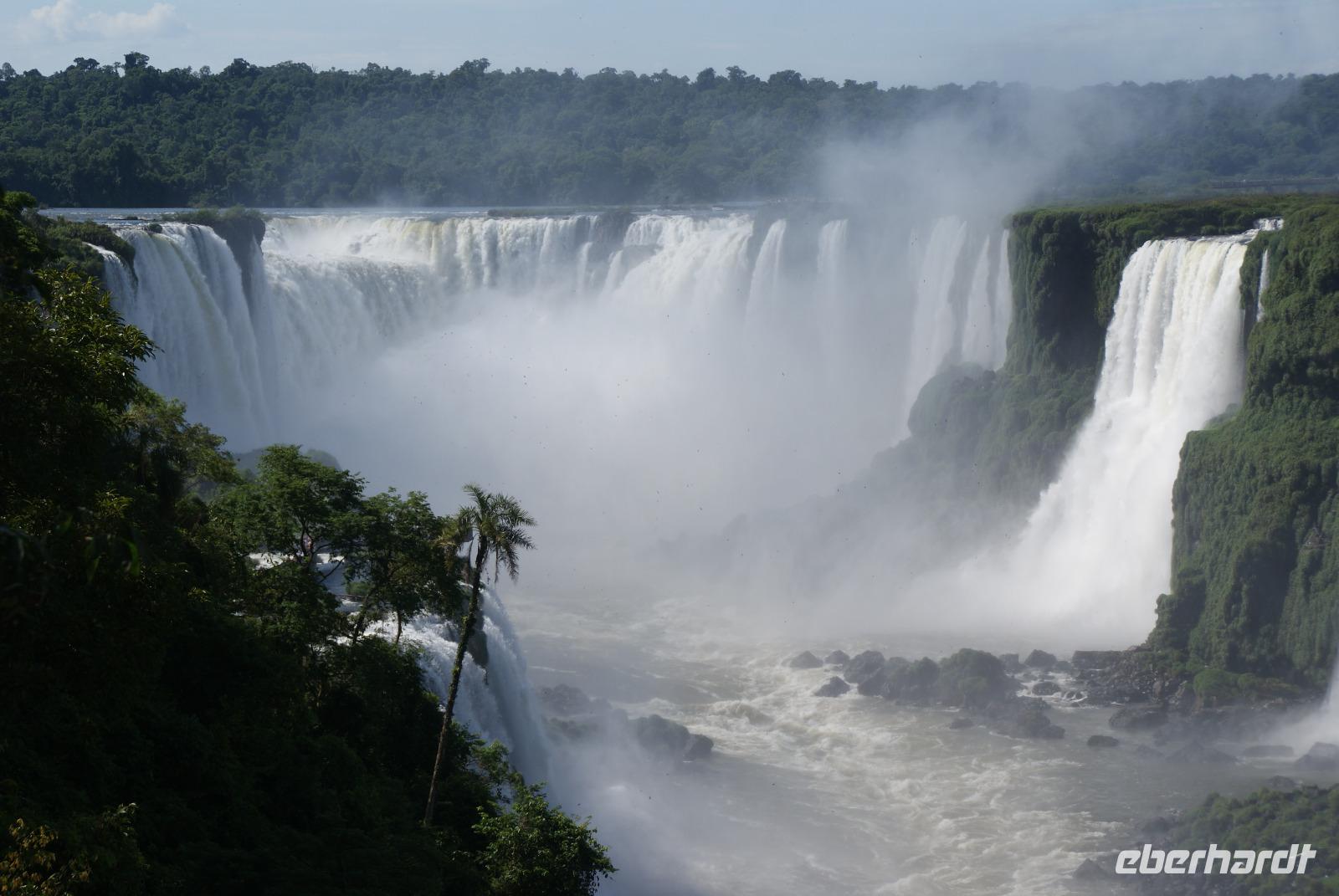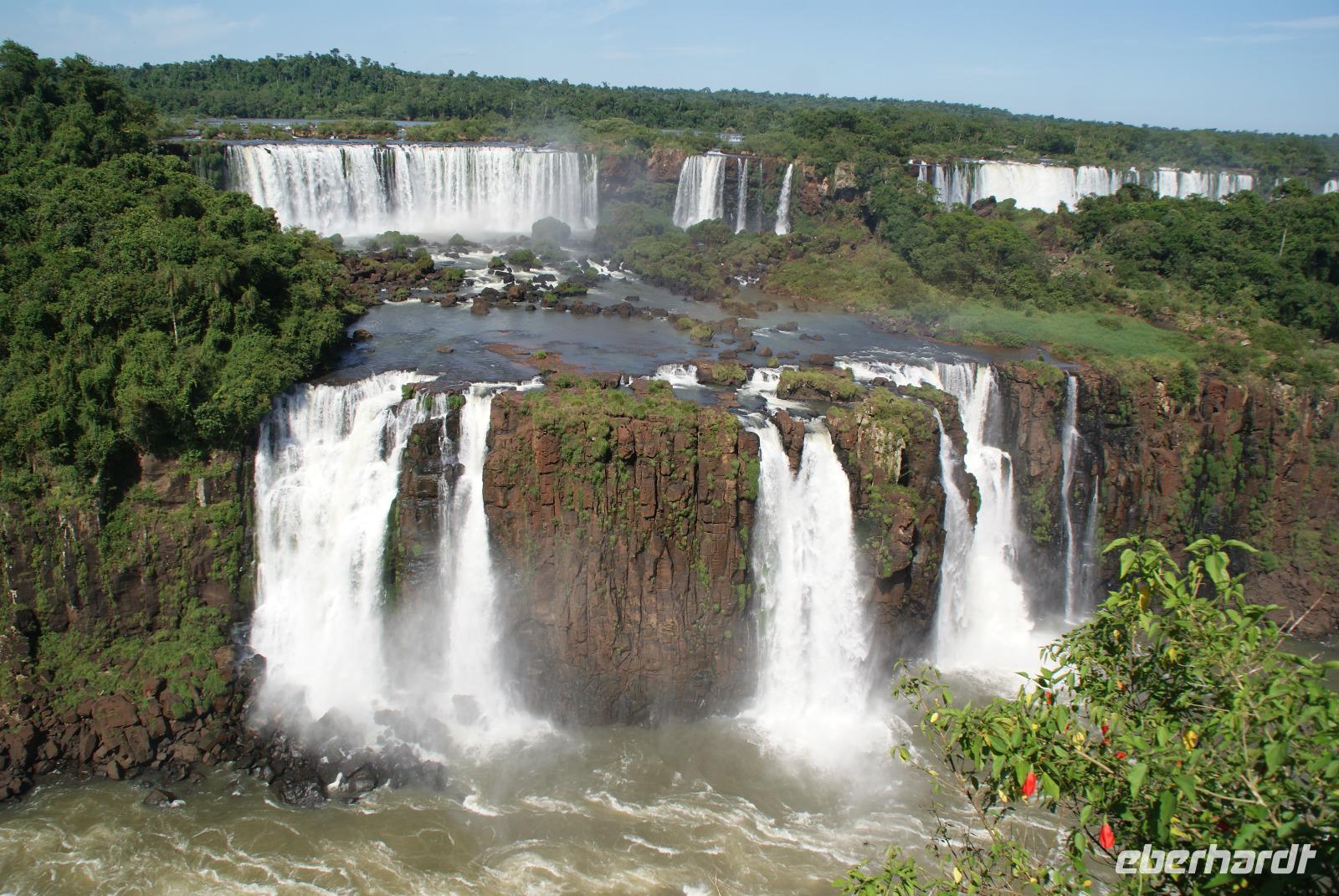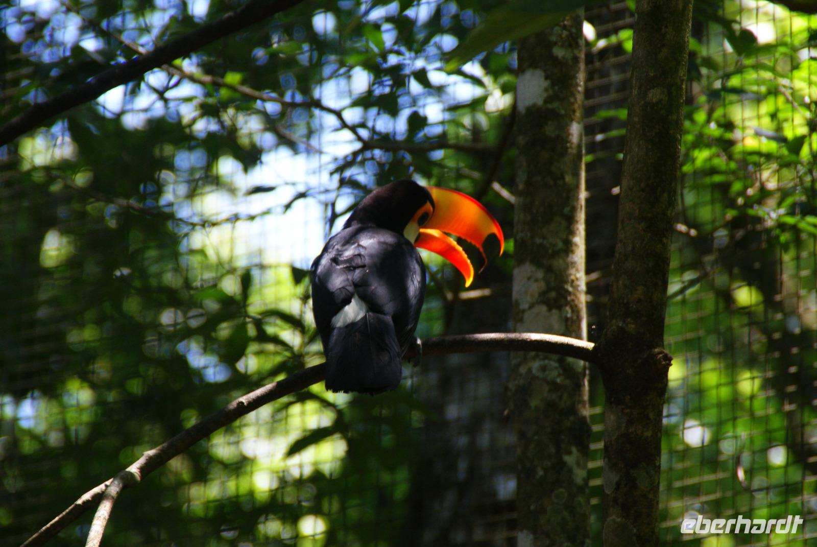 Nach einem guten Frühstück in unserem Hotel starten wir mit Reiseleiter Gil und Everton unserem Fahrer, um die brasilianische Seite der Wasserfälle kennenzulernen. Ein weiterer Traumtag erwartet uns. Wir erfahren von Gil, dass Brasilien 27 Bundesstaaten hat und wir uns nun im Staat Parana befinden, dessen Hauptstadt Coritiba mit 2,5 Millionen Einwohnern ist und von hier 600 km entfernt liegt. Wieder wird uns die Dimension dieses riesigen Landes bewusst. Zunächst melden wir uns im Besucherzentrum an und dürfen dann nach der Registrierung weiterfahren. Ca. 2 Stunden schlendern wir treppab und unzählige Fotostopps weiter gelangen wir bis zum finalen Punkt mit Blick auf den Teufelsschlund in Argentinien und von wo wir ein wenig nass werden, da wir unmittelbar an den riesigen Wasserfällen stehen. Ein absolutes Erlebnis, diese Vielzahl an Wasserfällen in dieser grandiosen Natur erleben zu dürfen. Ein weiteres absolutes Highlight dieser so besonderen Reise. Nachdem wir alle ausgiebig fotografiert, geshoppt und gestaunt haben, lädt uns Eberhardt TRAVEL auf einen Besuch des Vogelparks Parque das Aves ein. Ein Paradies, was hier erschaffen wurde, wir sehen Tukane, Papageien, weitere bunte und ungewöhnliche Vögel Brasiliens, die wir noch nie gesehen haben, auch Kaimane und eine Anakonda darf nicht fehlen...Das Ganze wunderbar in die Natur integriert, ein toller Rundgang durch Flora, Fauna und Tierwelt des Landes geschaffen auf einem riesen Areal. Einen Ausflug, den wir nicht hätten missen wollen. Zurück im Hotel bleibt noch Zeit für einen Urlaubsnachmittag und so zieht es uns an den schön im inneren der Anlage gelegenen Pool oder wir machen einen Spaziergang auf dem Naturpfad der Anlage, der bis zum Iguazu Fluss 1,2 Km führt. Zum Abendessen treffen wir uns wieder am leckeren Buffet und kosten ein weiteres Mal brasilianische Köstlichkeiten. Boa noite da Iguazu.