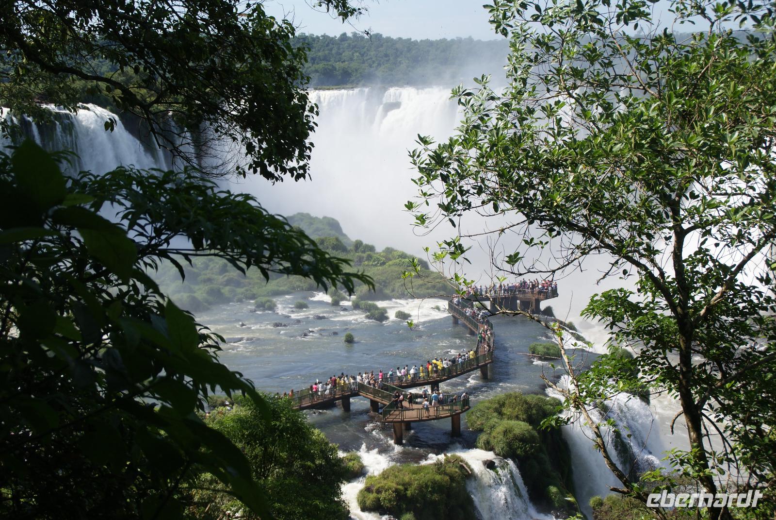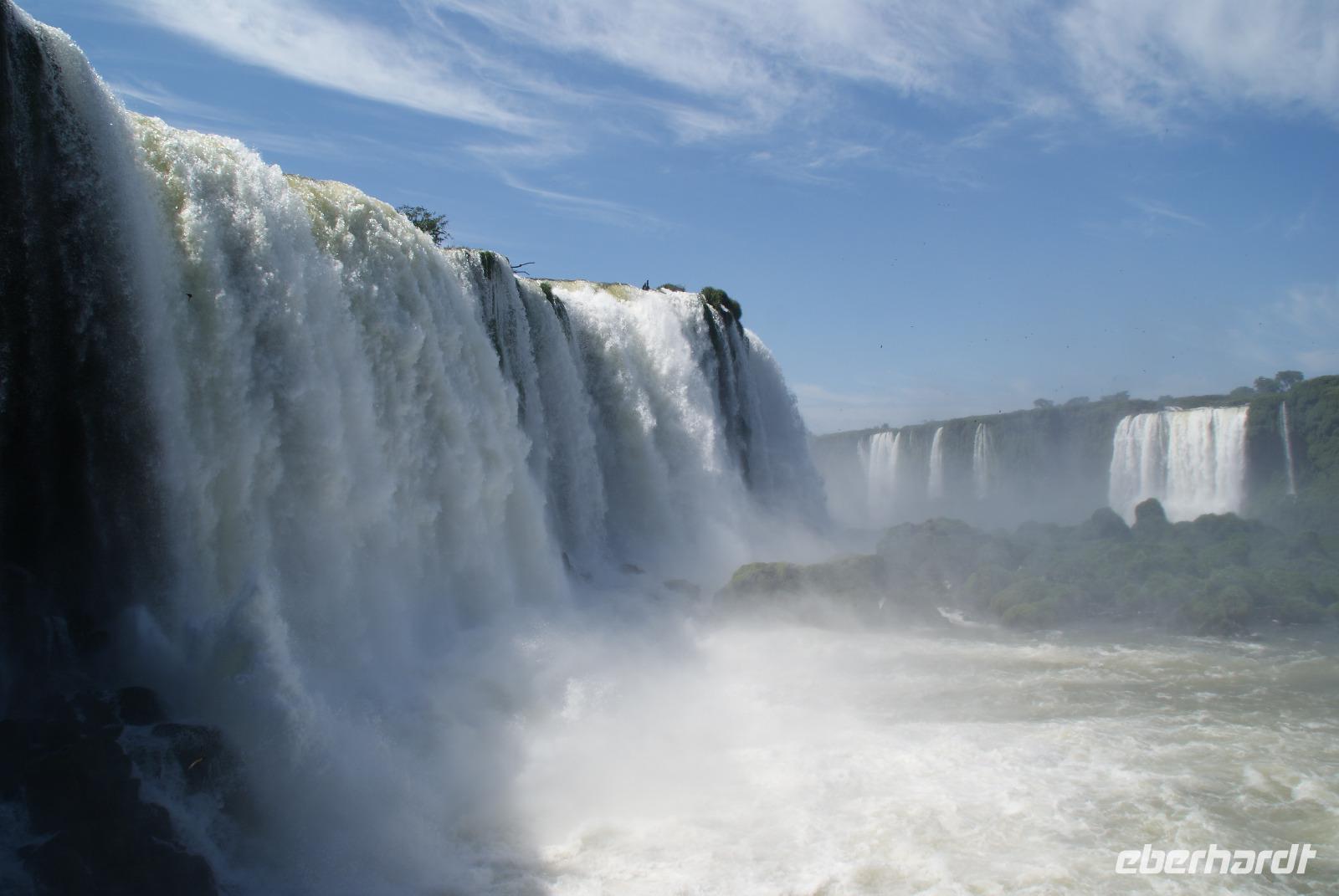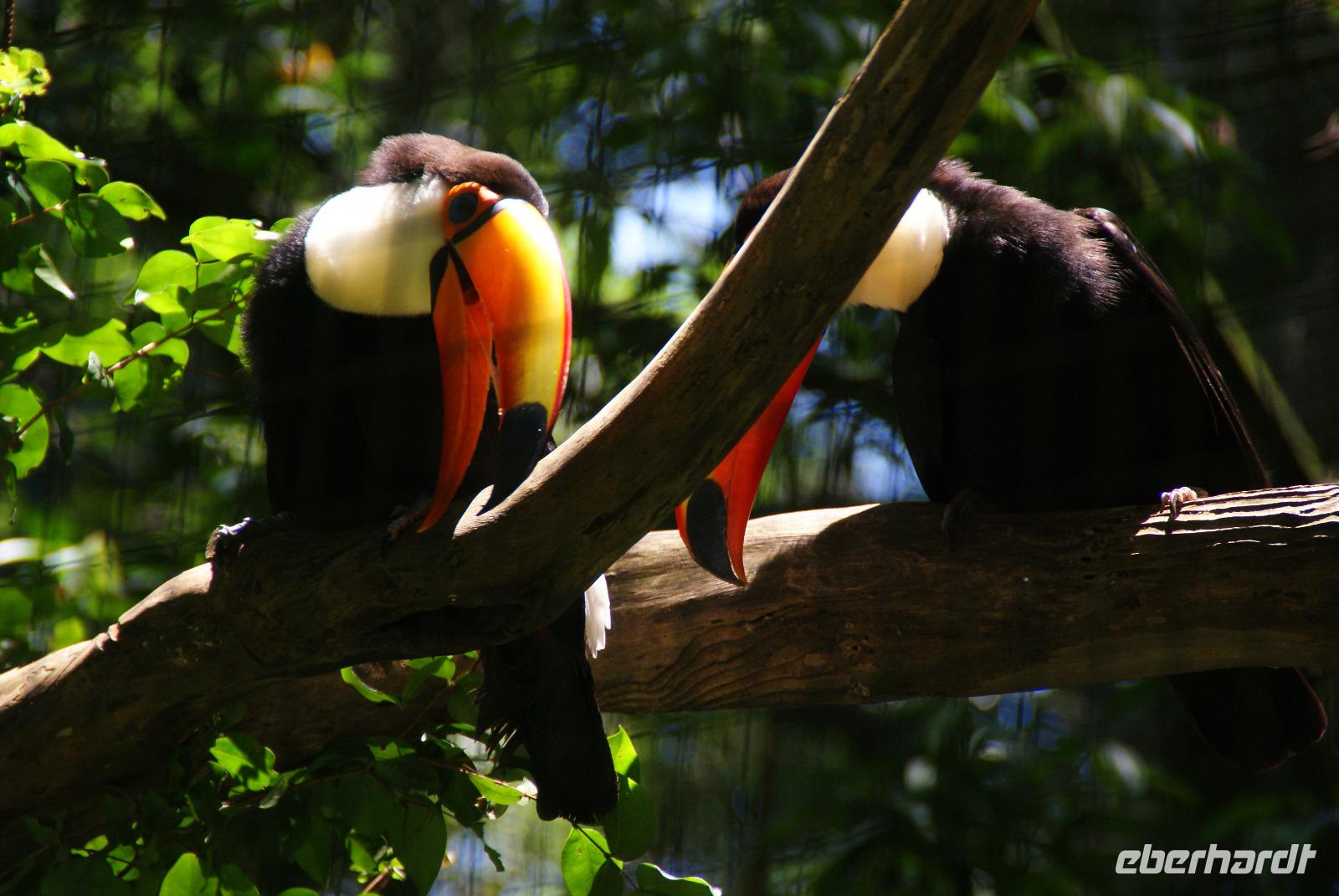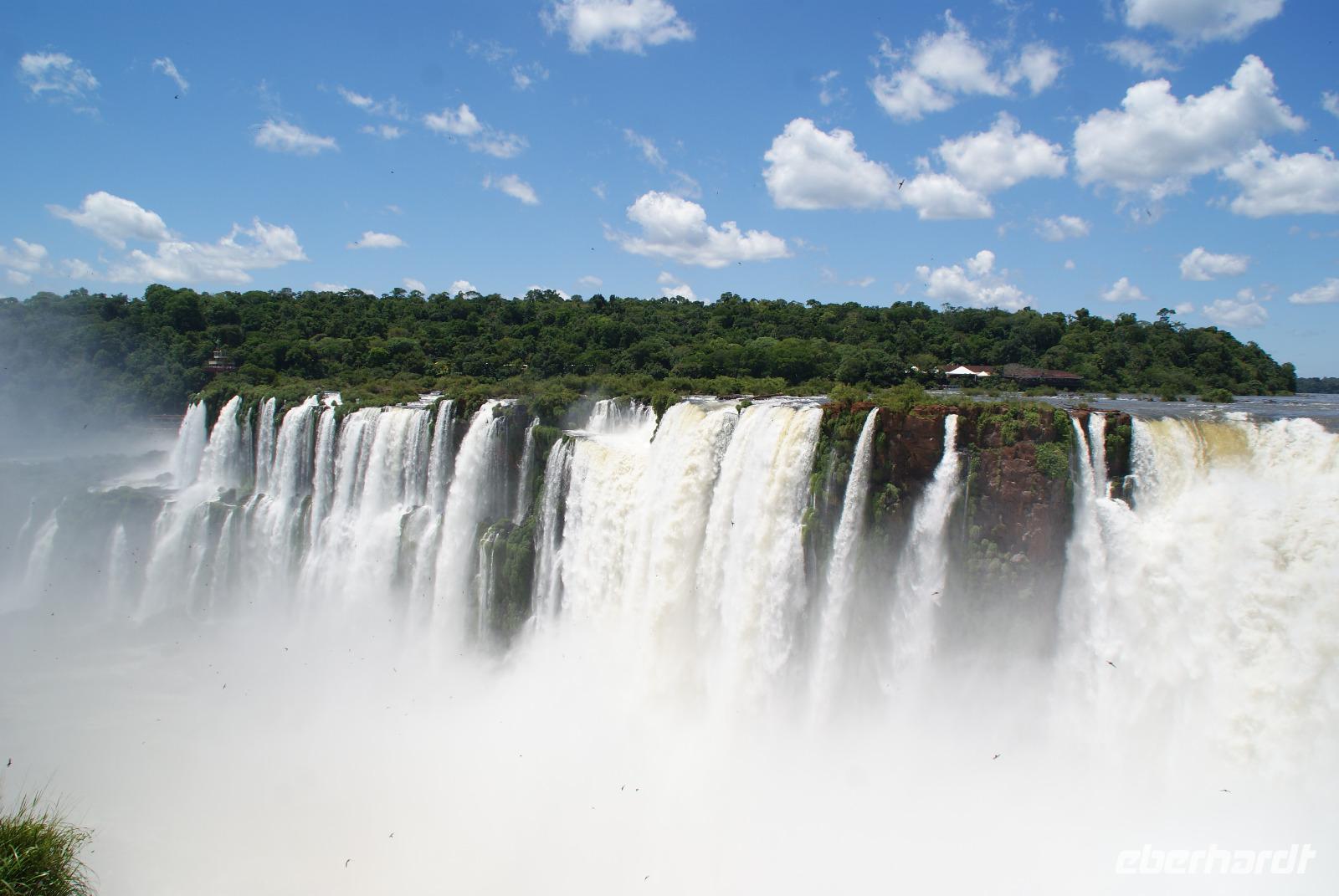 Nach einem guten Frühstück in unserem Hotel starten wir mit Reiseleiter Gil und Everton unserem Fahrer, um die brasilianische Seite der Wasserfälle kennenzulernen. Ein weiterer Traumtag erwartet uns. Wir erfahren von Gil, dass Brasilien 27 Bundesstaaten hat und wir uns nun im Staat Parana befinden, dessen Hauptstadt Coritiba mit 2,5 Millionen Einwohnern ist und von hier 600 km entfernt liegt. Wieder wird uns die Dimension dieses riesigen Landes bewusst. Zunächst melden wir uns im Besucherzentrum an und dürfen dann nach der Registrierung weiterfahren. Ca. 2 Stunden schlendern wir treppab und unzählige Fotostopps weiter gelangen wir bis zum finalen Punkt mit Blick auf den Teufelsschlund in Argentinien und von wo wir ein wenig nass werden, da wir unmittelbar an den riesigen Wasserfällen stehen. Ein absolutes Erlebnis, diese Vielzahl an Wasserfällen in dieser grandiosen Natur erleben zu dürfen. Ein weiteres absolutes Highlight dieser so besonderen Reise. Nachdem wir alle ausgiebig fotografiert, geshoppt und gestaunt haben, lädt uns Eberhardt TRAVEL auf einen Besuch des Vogelparks Parque das Aves ein. Ein Paradies, was hier erschaffen wurde, wir sehen Tukane, Papageien, weitere bunte und ungewöhnliche Vögel Brasiliens, die wir noch nie gesehen haben, auch Kaimane und eine Anakonda darf nicht fehlen...Das Ganze wunderbar in die Natur integriert, ein toller Rundgang durch Flora, Fauna und Tierwelt des Landes geschaffen auf einem riesen Areal. Einen Ausflug, den wir nicht hätten missen wollen. Zurück im Hotel bleibt noch Zeit für einen Urlaubsnachmittag und so zieht es uns an den schön im inneren der Anlage gelegenen Pool oder wir machen einen Spaziergang auf dem Naturpfad der Anlage, der bis zum Iguazu Fluss 1,2 Km führt. Zum Abendessen treffen wir uns wieder am leckeren Buffet und kosten ein weiteres Mal brasilianische Köstlichkeiten. Boa noite da Iguazu.
