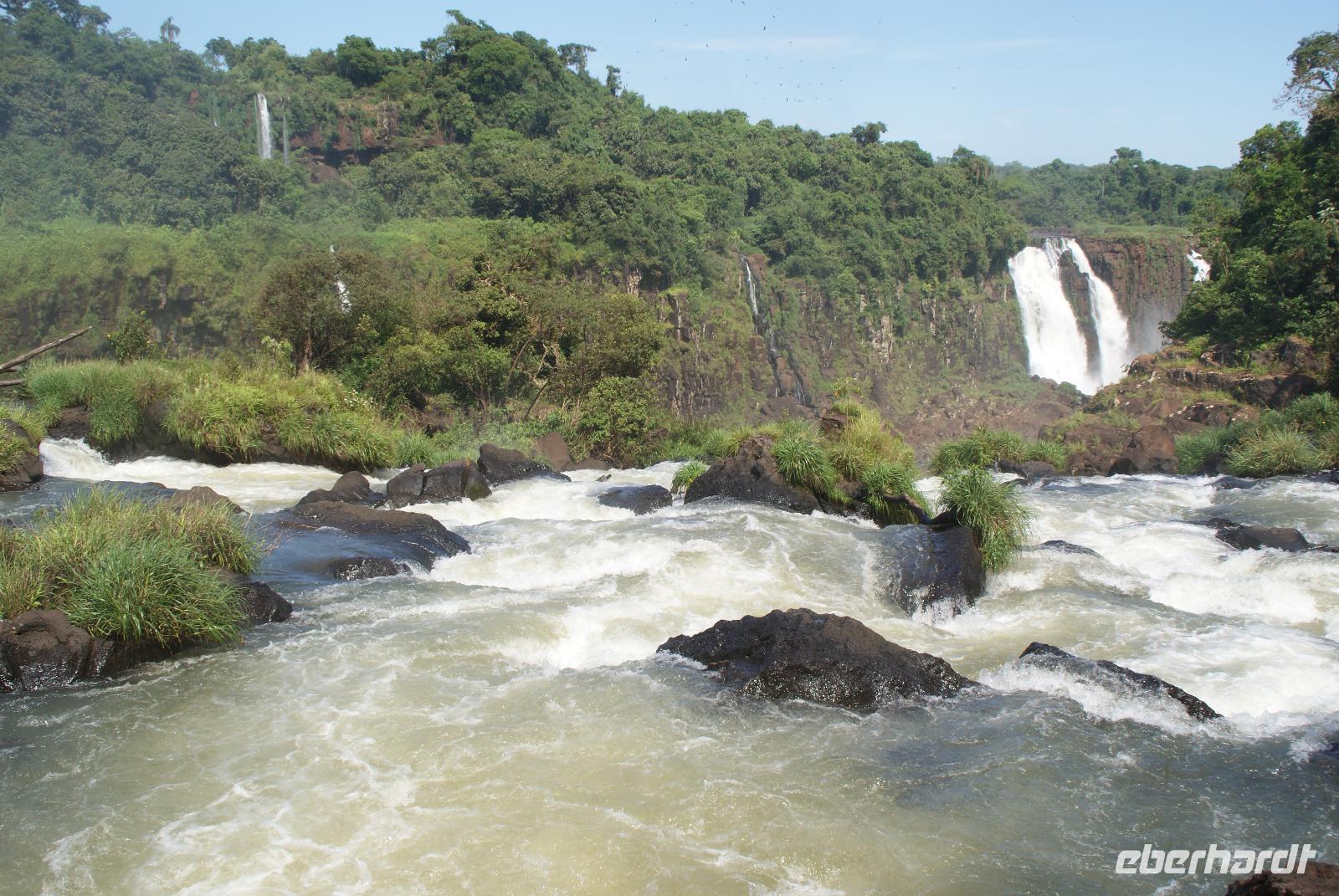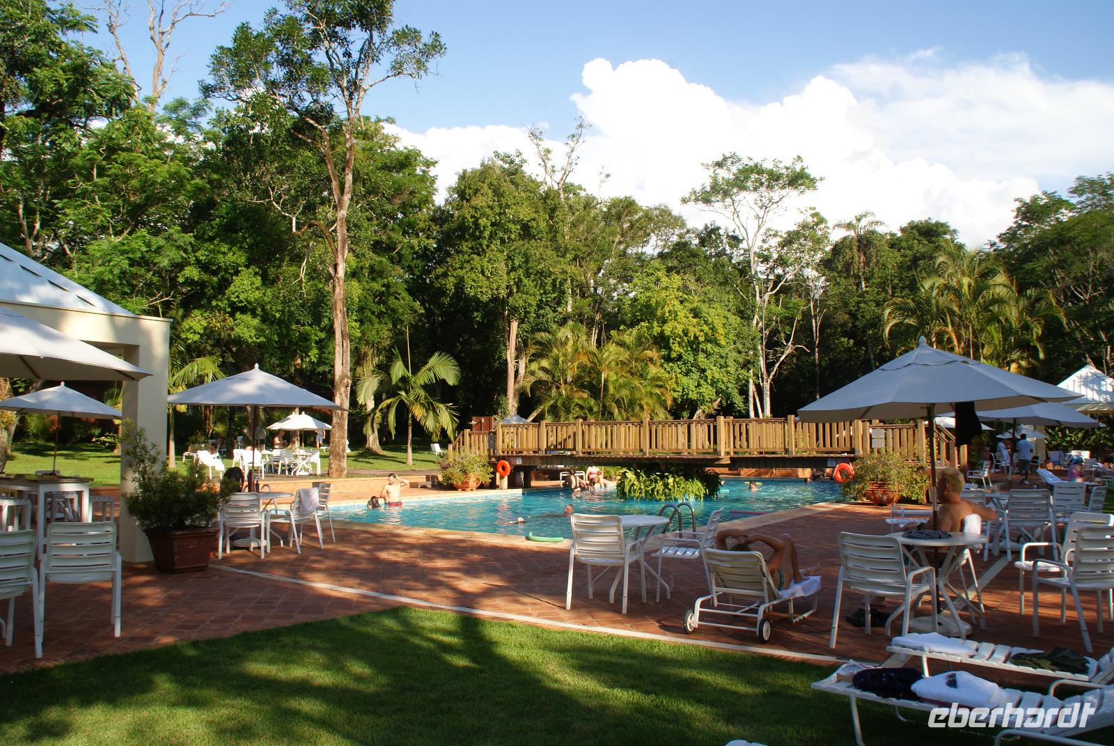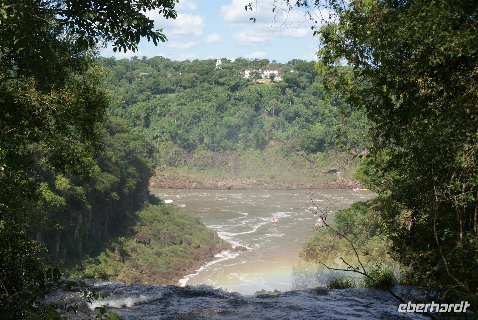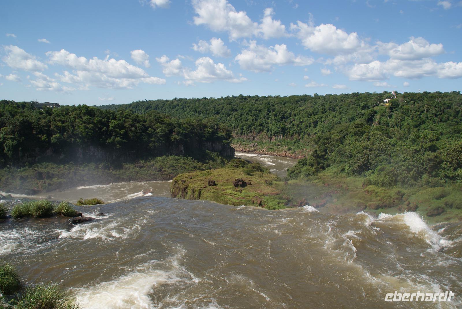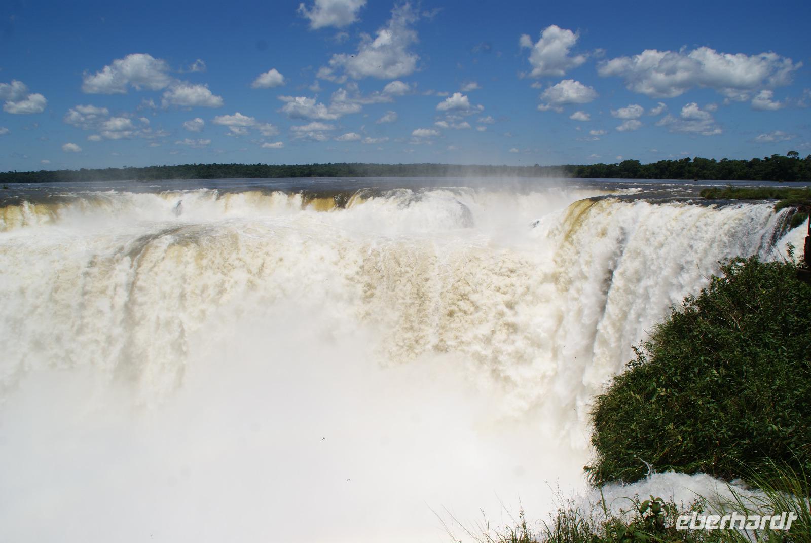 Nach einem kurzen Transfer befinden wir uns am Nationalen Flughafen und checken für den Flug nach Iguazu ein. Leider müssen wir uns von unserer sehr netten Reiseleitung Deborah „Debi" verabschieden...aber was kann man machen-auf zu neuen Abenteuern. Ein kurzer 2-stündiger, ruhiger Flug und wir landen früher als geplant und mit allen Koffern in Iguazu. Reiseleiter Gilnei und Fahrer Everton empfangen uns und nach kurzer Fahrt stehen wir vor unserem nächsten Highlight unserer vielseitigen Reise-den argentinischen Wasserfällen von Iguazu. „Gil" erklärt uns, dass Iguazu aus der Iguani Sprache kommt und „großes Wasser" bedeutet. Es gibt hier 275 Wasserfälle, die sich auf eine Länge von 2,7 Km erstrecken. 70 % davon gehören zu Argentinien und 30% zu Brasilien. Der Nationalpark Iguazu wurde 1934 errichtet, gehört heute zum Weltnaturerbe und umfasst 555km². Wir fahren zunächst mit der Schmalspurbahn bis zum Ende, um zum Teufelsschlund zu gelangen. Hin und zurück laufen wir 2,2 Km und staunen über die sagenhafte Natur um uns herum. Das Wetter ist ein Traum du so können wir uns von den herunterstürzenden Wassermassen nicht satt sehen. Wir nehmen nochmals den Zug und wandern einen schöne Strecke auf der brasilianischen Seite um die Wasserfälle aus diesem Blickwinkel sehen zu können. Welch unglaubliche Fotokulisse, strahlend blauer Himmel, das Wasser, ein paar Wolken, wie Wattetupfer am Himmel und die grandiosen Wasserfälle. Einfach wunderbar. Sogar ein paar Tiere sichten wir, dazu gehörten Affen, Webervögel, ein Kaiman, der im Fluss liegt und natürlich die possierlichen Nasenbären. Am Nachmittag überqueren wir die argentinische Grenze, verlassen das Land und reisen nach 300m in Brasilien wieder ein. Alles geht unproblematisch und sehr schnell. Kurz darauf checken wir in unser schönes Hotel San Martin Hotel& Resort ein und treffen uns zu einem schönen, ersten brasilianischen Abendessen im Restaurant wieder. Ein fröhlicher Tag klingt in der Hotelbar aus und so mancher Caipirinha und Gin Tonic lässt uns anschließend herrlich einschlummern.
