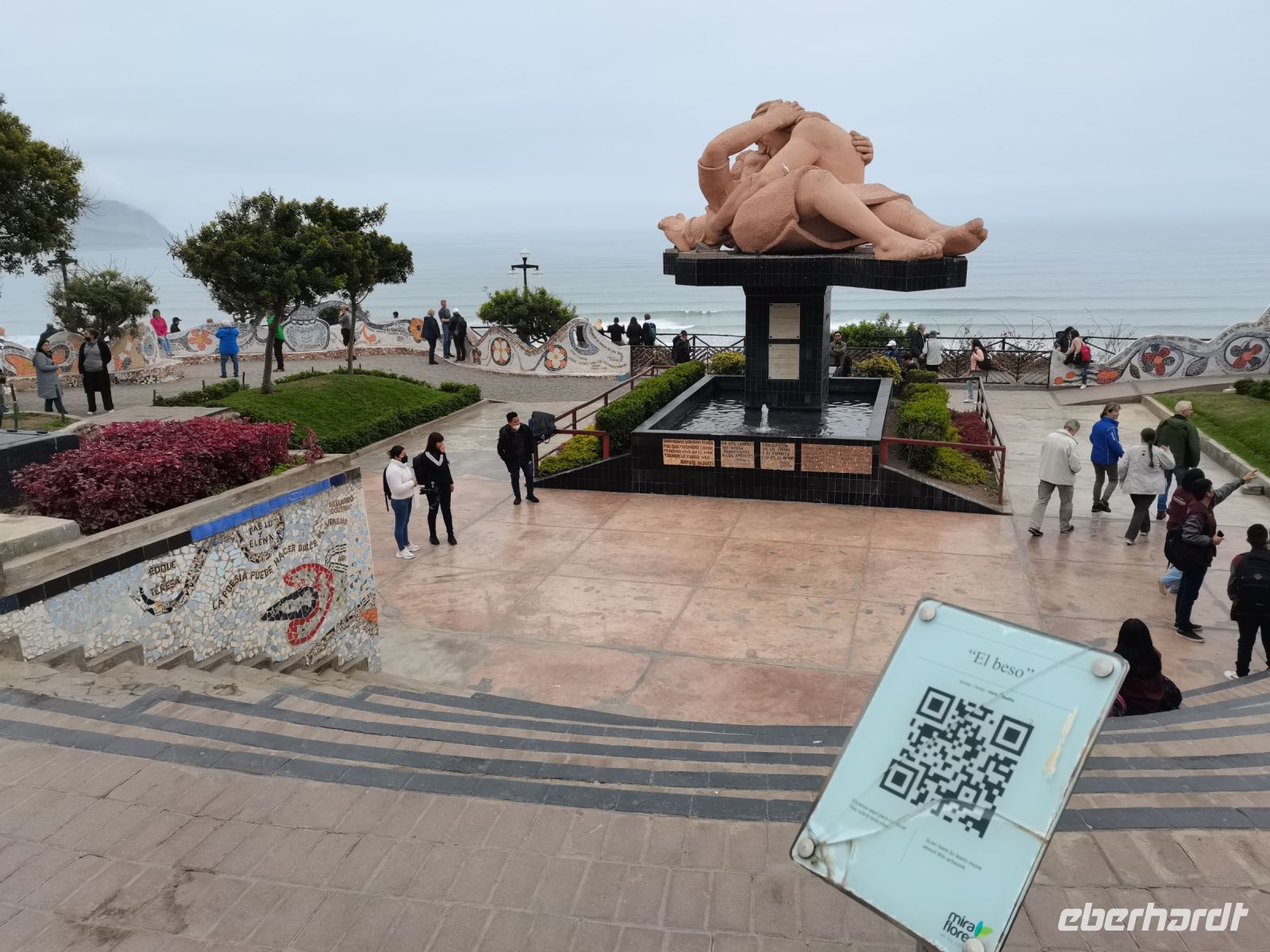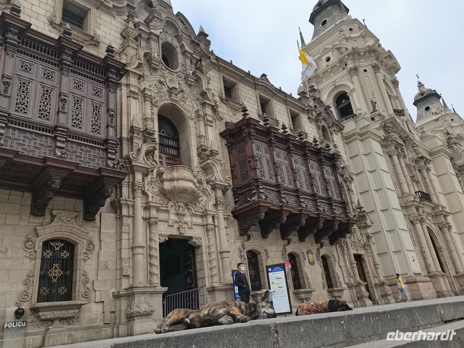 Das gute Frühstück im Hotel hat uns gestärkt für unseren ersten Tag in Lima, die Stadt der Könige! Mit unserer Reiseleiterin und schon gewechseltem Taschengeld machen wir uns im Bus auf den Weg zur Stadtrundfahrt. Wir starten im Viertel Miraflores, einem der 43 Stadtteile von Lima, das für seine prächtigen Parks bekannt ist. Hier an der Steilküste am Meer liegt auch der Parque del Amor, umrahmt von farbenfrohen Mosaikmauern. Die riesige Skulptur eines Paares in enger Umarmung steht für das Thema "Liebe" und ist gleichzeitig ein schönes Fotomotiv. Vorbei an der siebenstufigen Lehmziegelpyramide Huaca Pucllana erreichen wir die Altstadt Limas, die seit 1991 zum Weltkulturerbe der Menschheit gehört. Wir steigen an der "Plaza Mayor" oder offiziell "Plaza de Armas" aus. Zum ersten Mal auf unserer Reise hören wir vom spanischen Eroberer Francisco Pizarro, der in der ersten Hälfte des 16. Jahrhundert seine Eroberungszüge im Inka-Reich machte, Städte eroberte und den Großteil der Bauten der Hochkultur der Inkas zerstörte. Wir machen einen Spaziergang durch die von den Spaniern schachbrettartig angelegten Straßen und bewundern die prächtigen Bauten mit Holzbalkonen, das barocke Regierungsgebäude, heute Wohnsitz des peruanischen Präsidenten. Wir besuchen das Kloster Santo Domingo, in dem die drei wichtigsten peruanischen Heiligen ruhen. In der Markthalle Surquillo bekommen wir einen ersten Eindruck von der Vielfalt der landwirtschaftlichen Produkte Perús. Unzählige Kartoffelsorten und herrliches Obst werden wir voraussichtlich in den nächsten Wochen probieren dürfen! Der Nachmittag steht zur freien Verfügung, was wir für erste Einkäufe von Souvenirs und einen Snack mit Kaffeepause in Miraflores nutzen. Am Abend steht das typische Huhn "Pollo a la brasa" im Stadtviertel San Isidro auf dem Speisezettel.
