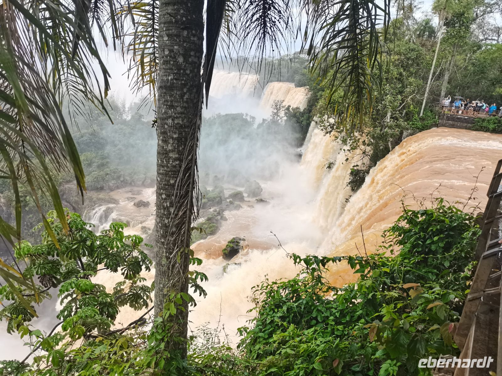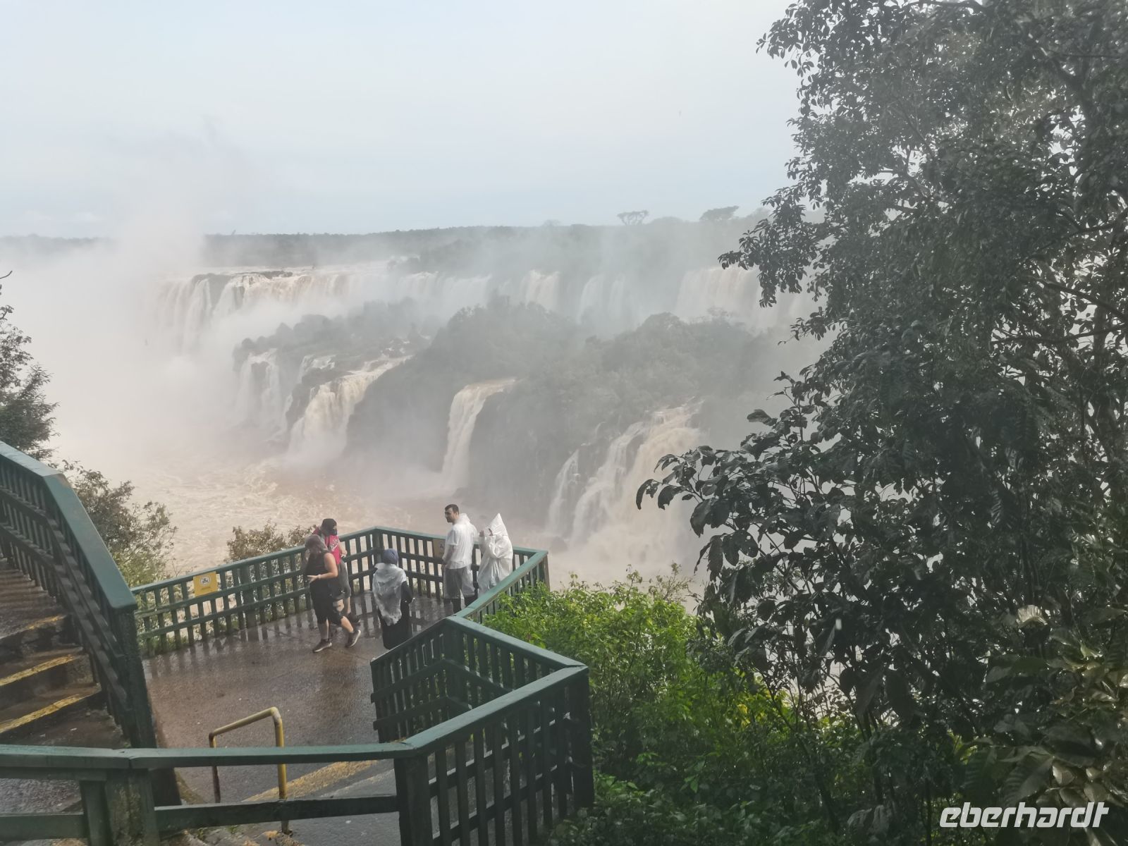Mittags landen wir in Foz do Iguazu auf der argentinischen Seite der Wasserfälle, wo wir auch übernachten. Heute besuchen wir aber zunächst die brasilianische Seite, denn hier ist der größte Panoramablick auf die Wasserfälle ("Cataratas") möglich. Dies erfordert etwas Geduld und freie Seiten im Reisepass, denn um die Wasserfälle von beiden Seiten erleben zu können, müssen wir in diesen Tagen mehrfach die Grenze überqueren. Aber es lohnt sich ungemein! Unsere neue Reiseleiterin übernimmt an den Grenzen die Formalitäten für uns. Alle sind gespannt auf den Anblick der imposanten Wassermengen, die sich die Schluchten auf rund 2,7 Kilometern hinunterstürzen. Einige Tage vor unserer Reise hat es viel geregnet, das Wasser im Fluss hat Hochstand und tost noch lauter als üblich die teilweise bis zu 82 Meter hohen Fälle herab. Wir spazieren die Pfade hinunter bis zum Steg und gelangen ganz nah unter die Gischt. Die Mutigen aus unserer Gruppe gehen bis ans Ende auf den Steg hinaus, werden ziemlich nass und haben dafür aber spektakuläre Fotos zur Erinnerung an dieses eindrucksvolle Naturerlebnis in der Tasche. Durch den Nationalpark fahren wir mit unserem Bus ins Hotel auf der argentinischen Seite, wo wir mit Caipirinha empfangen werden und anschließend die Zimmer beziehen.