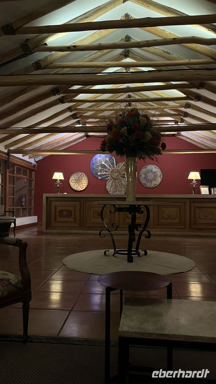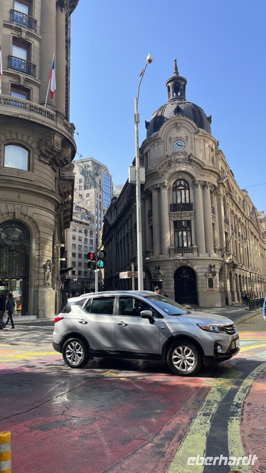 Noch bevor die Sonne aufging, waren wir auf dem Weg zum Flughafen, und nach mehreren Prozessen und Kontrollen kamen wir in der Boarding-Lounge an. Die Flugverbindungen spielten uns einen Streich, und dieser Tag stand ganz im Zeichen des Reisens... Wir kamen mit einem spektakulären Blick aus dem Flugzeug gerade noch rechtzeitig, um die letzten Sonnenstrahlen zu genießen, als wir den Flughafen von Santiago hinter uns ließen. Das gut gelegene Hotel in einem alten Viertel der Stadt, das noch immer seinen Glanz bewahrt hat, lud uns zu einem Spaziergang und zum Abendessen ein. Voller Vorfreude auf diesen ersten Spaziergang folgten wir dem Stadtplan und erreichten wohlbehalten das Restaurant El Alemán Experto! Eine deutsch-chilenische Fusionsküche, die uns sehr gut gefallen hat.