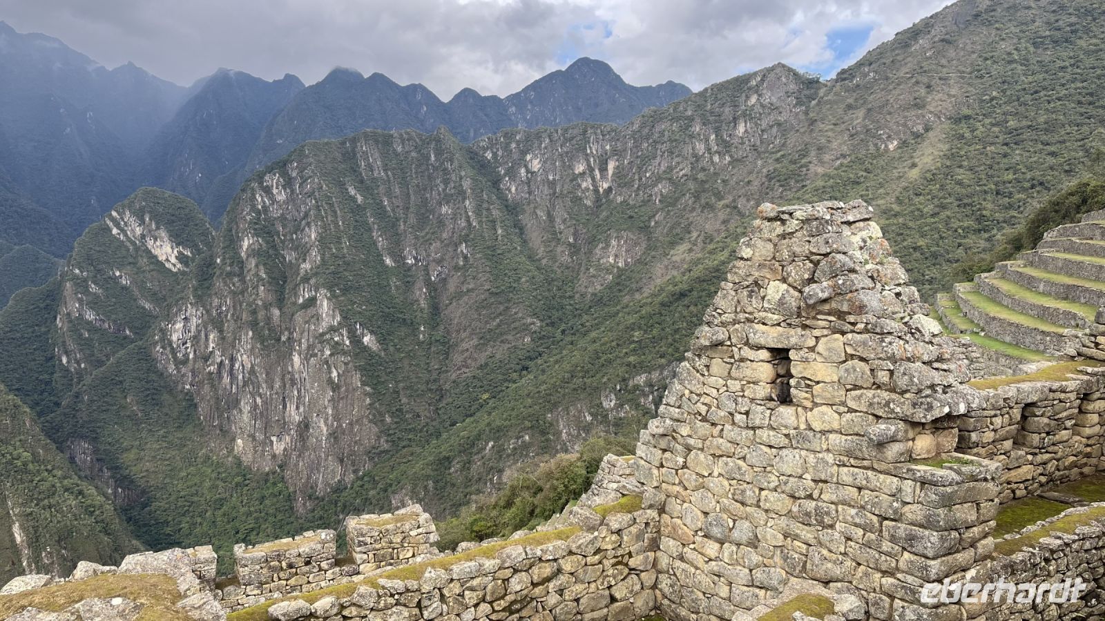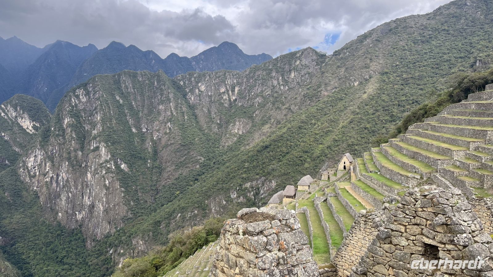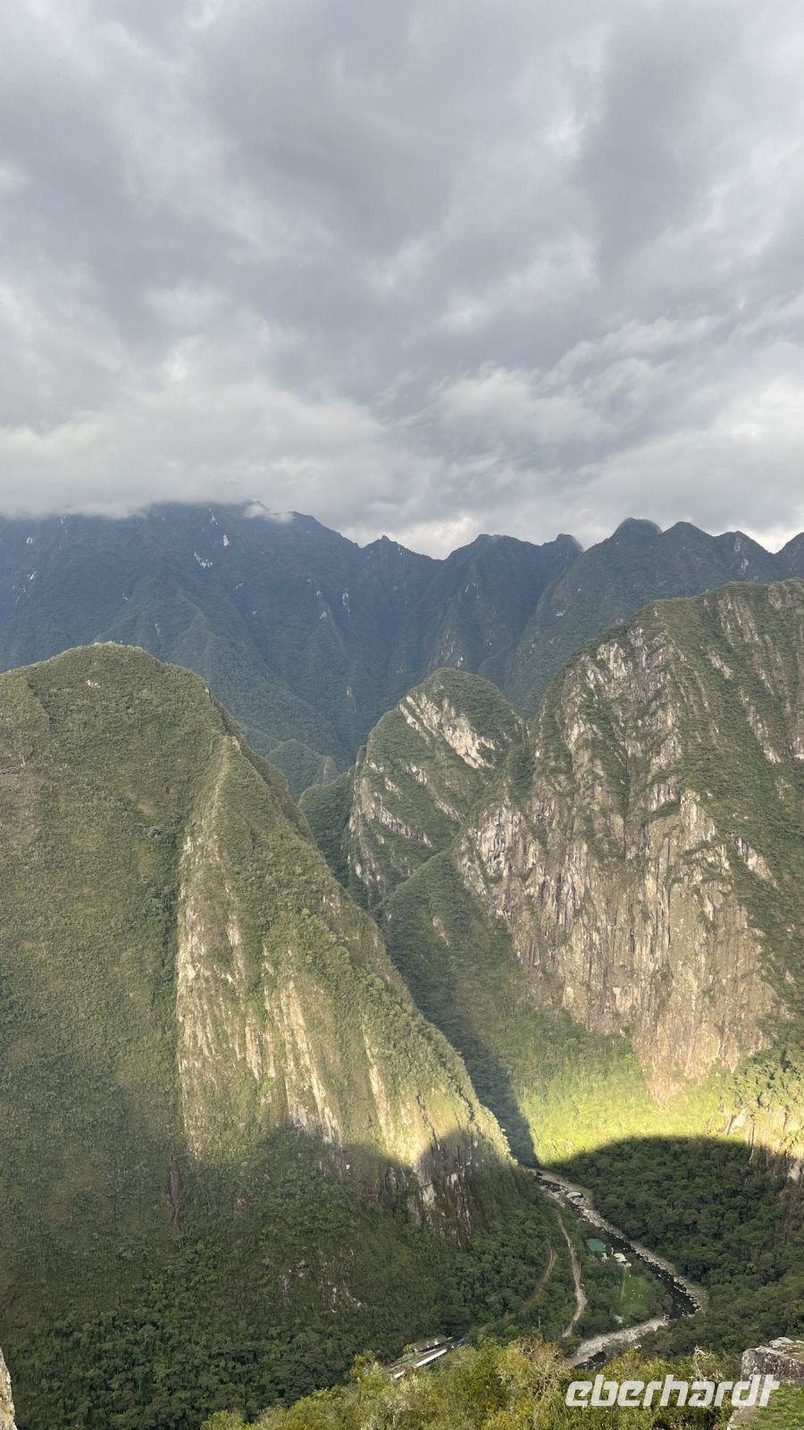 Der Sonnenaufgang war wunderschön, ein sonniger Morgen, der sich gegen die weiten Gärten abzeichnete, die in der Ferne mit den Bergen zu verschmelzen schienen. Wir genossen das Frühstück und die Aussicht und machten uns auf den Weg zum Bahnhof - dies war der Beginn eines großartigen Erlebnisses! Wir würden in einem abgelegenen Dorf in einen Zug steigen, der in die Nähe der Ruinen einer verlorenen Zivilisation fährt... "Machu Pichu"! Der Zug kam an, als wäre es gestern gewesen, wir genossen die erstaunlichen Landschaften, die sich vor unseren Fenstern auftaten, tiefe Canyons, Schluchten, uralte Tunnel und der Fluss "Urubamba" an unserer Seite, er war immer unser Begleiter. Hier und da entdeckten wir ein paar Wanderer, da sich die Bahngleise und der Inkapfad entlang schlängeln. Dort angekommen, erreichten wir nach vielen Fotos, Freuden und neuen Eindrücken unser Hotel, stellten unser Gepäck ab und machten uns auf den Weg, um mit dem Bus zu den Ruinen von Machu Pichu zu fahren. Ich könnte hier ein Buch schreiben, und es würde nicht ausreichen, um die Eindrücke wiederzugeben, die wir hatten, als wir durch diese verlorene Stadt von unvergleichlicher Pracht gingen. In meinem Leben habe ich schon viele Pyramiden und Ruinen in verschiedenen Ecken der Welt besucht, aber ich muss sagen, dass das, was ich hier gesehen habe, definitiv etwas ganz Besonderes war. Am Abend, nach dem Abendessen, schlenderten wir noch eine Weile durch die kleinen Straßen von "Aguas Calientes", die sich auf beiden Seiten des Flusses und der alten Eisenbahnlinien als Mittelachse erstrecken und den Touristen Platz bieten, um die Begeisterung ihres Besuchs zu teilen.