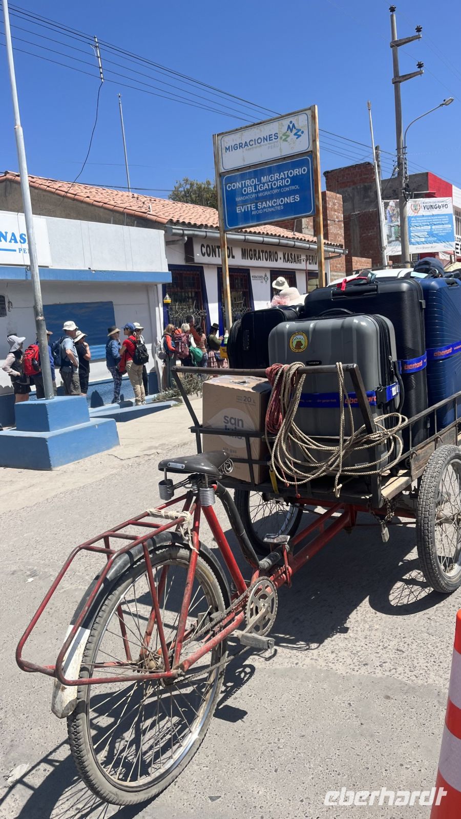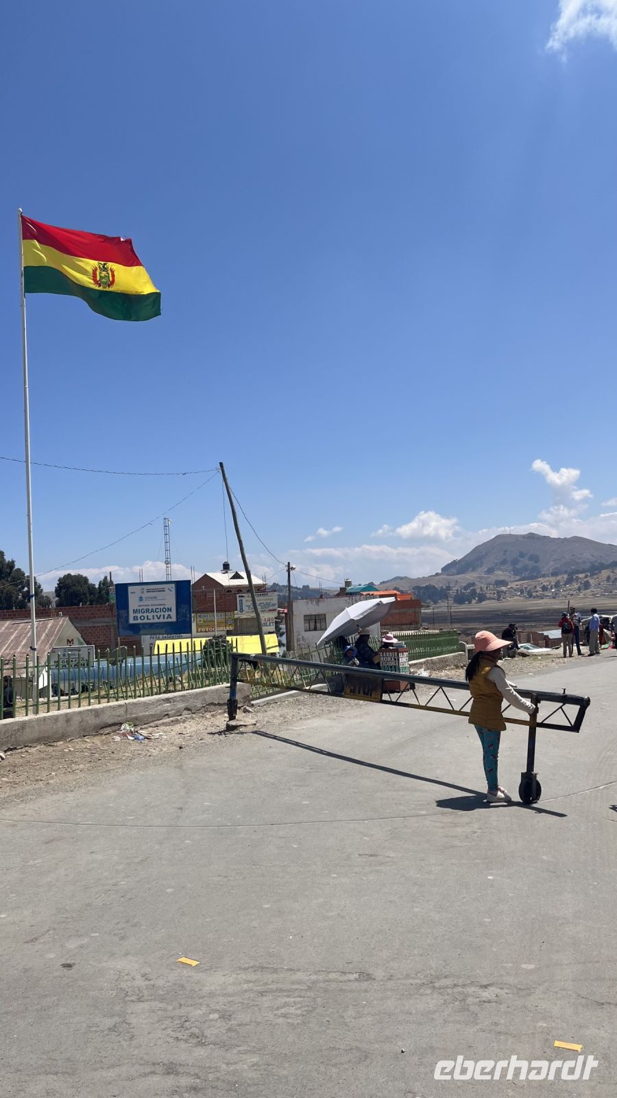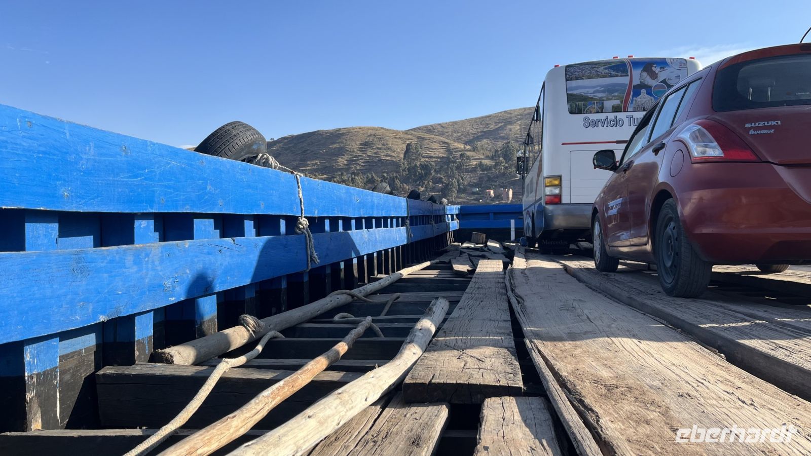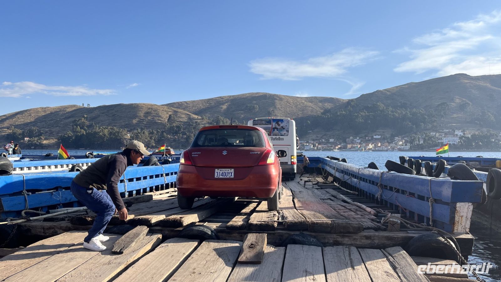 Das Wetter war weiterhin unser Verbündeter, und bei strahlendem Sonnenschein fuhren wir in Richtung der bolivianischen Grenze. Es war eine landschaftlich schöne Fahrt durch Dörfer und Landschaften, mit einer angenehmen Erklärung durch unseren Reiseleiter. Nachdem wir unsere Passstempel erhalten hatten, überquerten wir die Grenze auf malerische Weise, wobei wir unser Gepäck mit einem Transportdienst transportierten, der aus einem modifizierten Fahrrad mit hoher Tragfähigkeit bestand, so dass es wohl besser ist, zu schieben als zu treten. Wir kamen bald in Copacabana an, machten einen kurzen Rundgang über den Markt, den zentralen Park und die Kirche und fuhren dann zum Pier. Dort begannen wir eine wirklich schöne Fahrt auf dem Titicacasee, genossen das Wetter und die schöne Landschaft. Auf der Mondinsel angekommen, gab es ein leckeres Mittagessen unter freiem Himmel mit Blick auf den See. Es war ein Tag voller Aktivitäten! Wir besuchten die Sonneninsel, einen Ort der Ahnenrituale mit interessanten Ruinen, kehrten nach Copacabana zurück, um dann nach Huatajata zu fahren, wo die Abendshow und der vorherige Besuch eines Schamanen die Gruppe erfreute, ohne die unvergessliche Erfahrung unserer einzigartigen Fährüberfahrt mit unserem Bus zu vergessen.