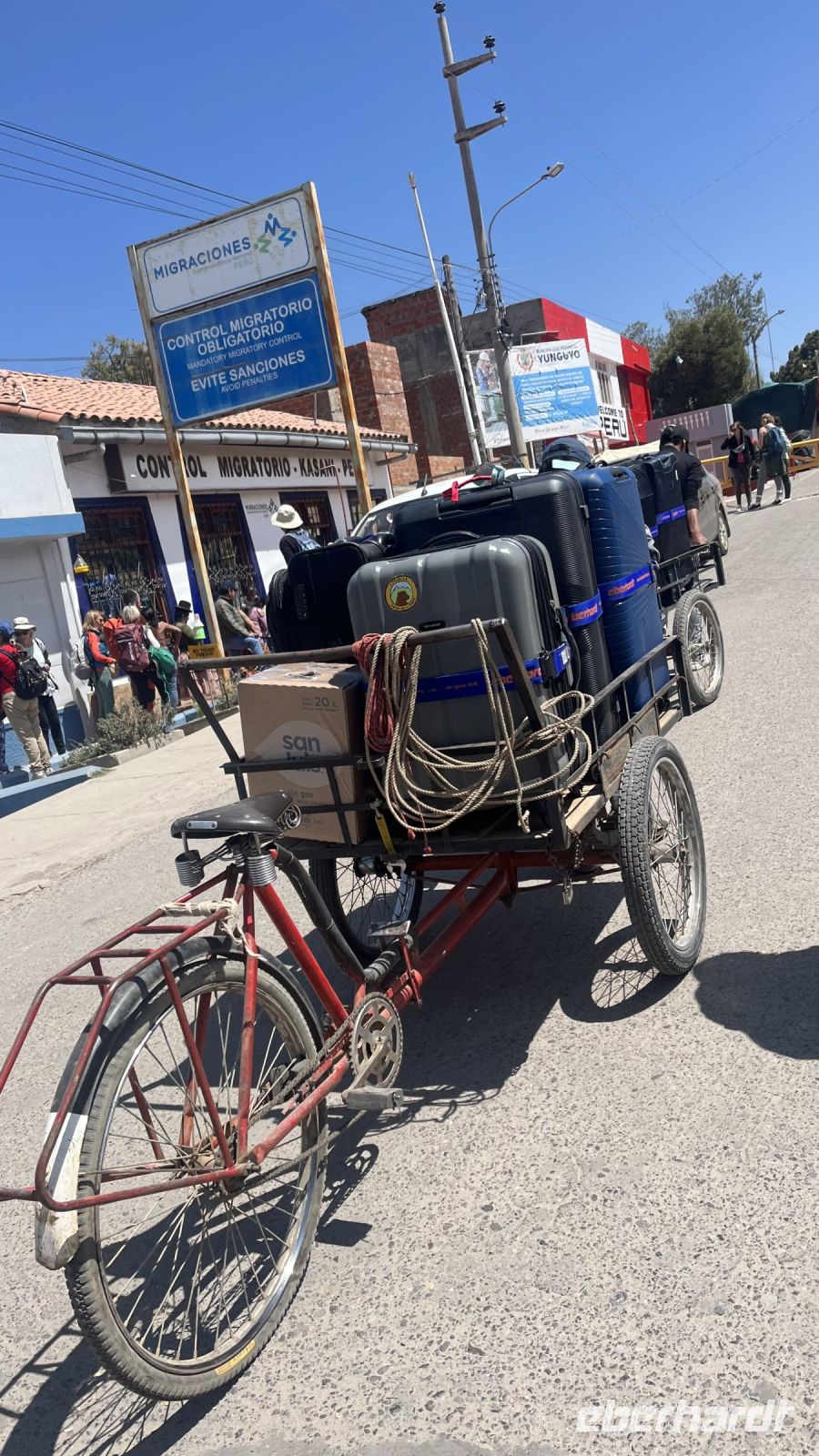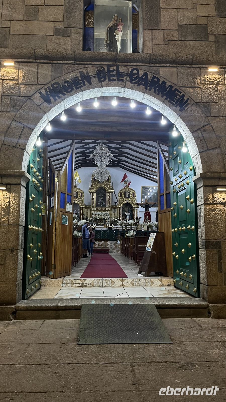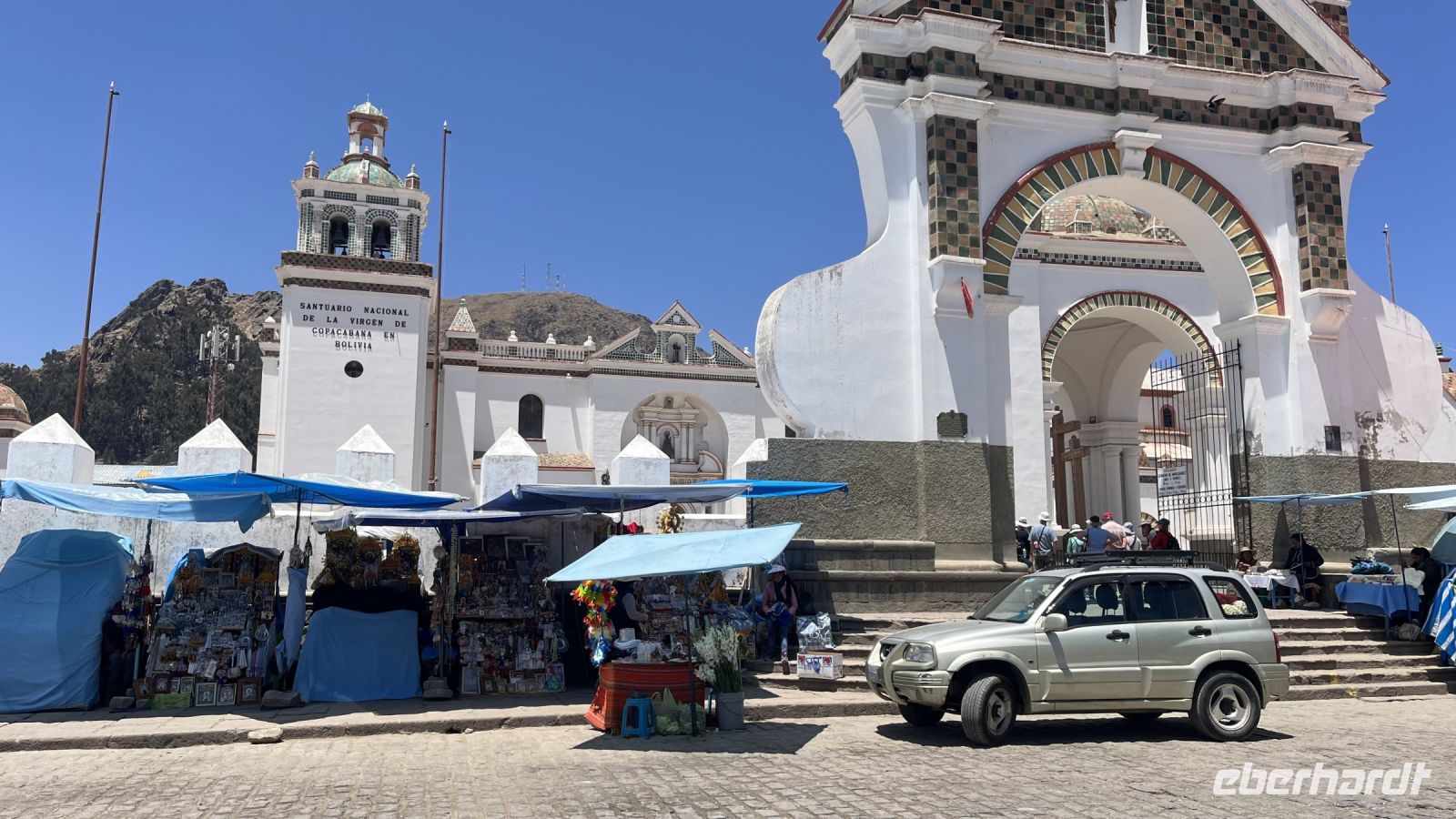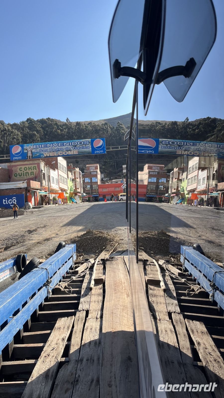 Das Wetter war weiterhin unser Verbündeter, und bei strahlendem Sonnenschein fuhren wir in Richtung der bolivianischen Grenze. Es war eine landschaftlich schöne Fahrt durch Dörfer und Landschaften, mit einer angenehmen Erklärung durch unseren Reiseleiter. Nachdem wir unsere Passstempel erhalten hatten, überquerten wir die Grenze auf malerische Weise, wobei wir unser Gepäck mit einem Transportdienst transportierten, der aus einem modifizierten Fahrrad mit hoher Tragfähigkeit bestand, so dass es wohl besser ist, zu schieben als zu treten. Wir kamen bald in Copacabana an, machten einen kurzen Rundgang über den Markt, den zentralen Park und die Kirche und fuhren dann zum Pier. Dort begannen wir eine wirklich schöne Fahrt auf dem Titicacasee, genossen das Wetter und die schöne Landschaft. Auf der Mondinsel angekommen, gab es ein leckeres Mittagessen unter freiem Himmel mit Blick auf den See. Es war ein Tag voller Aktivitäten! Wir besuchten die Sonneninsel, einen Ort der Ahnenrituale mit interessanten Ruinen, kehrten nach Copacabana zurück, um dann nach Huatajata zu fahren, wo die Abendshow und der vorherige Besuch eines Schamanen die Gruppe erfreute, ohne die unvergessliche Erfahrung unserer einzigartigen Fährüberfahrt mit unserem Bus zu vergessen.