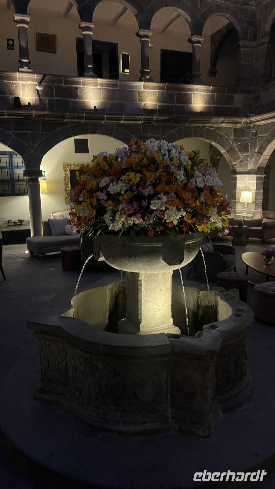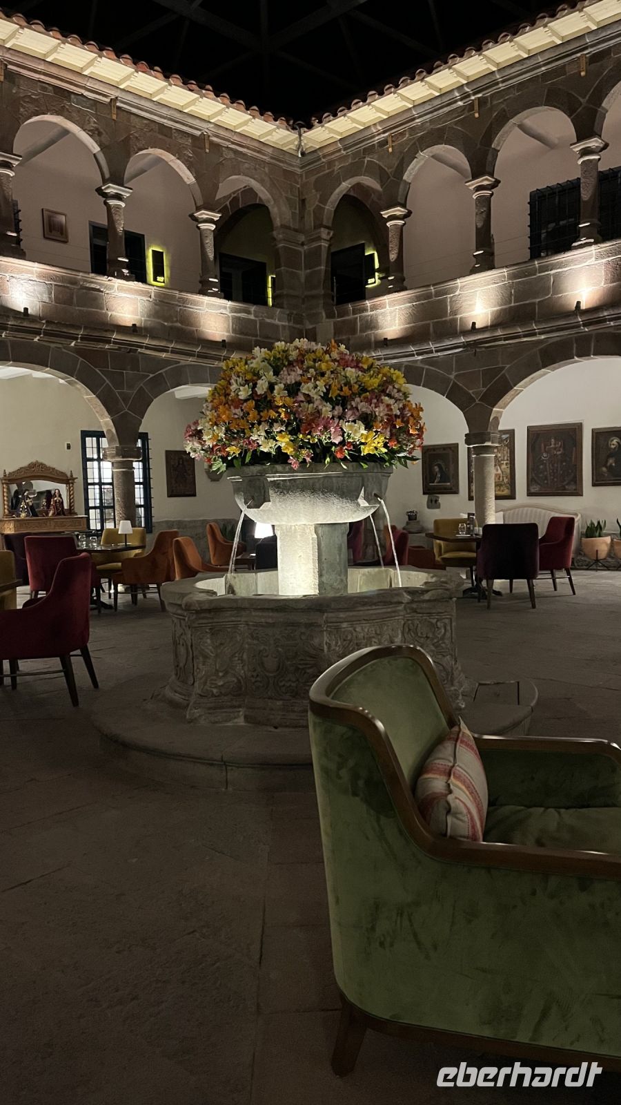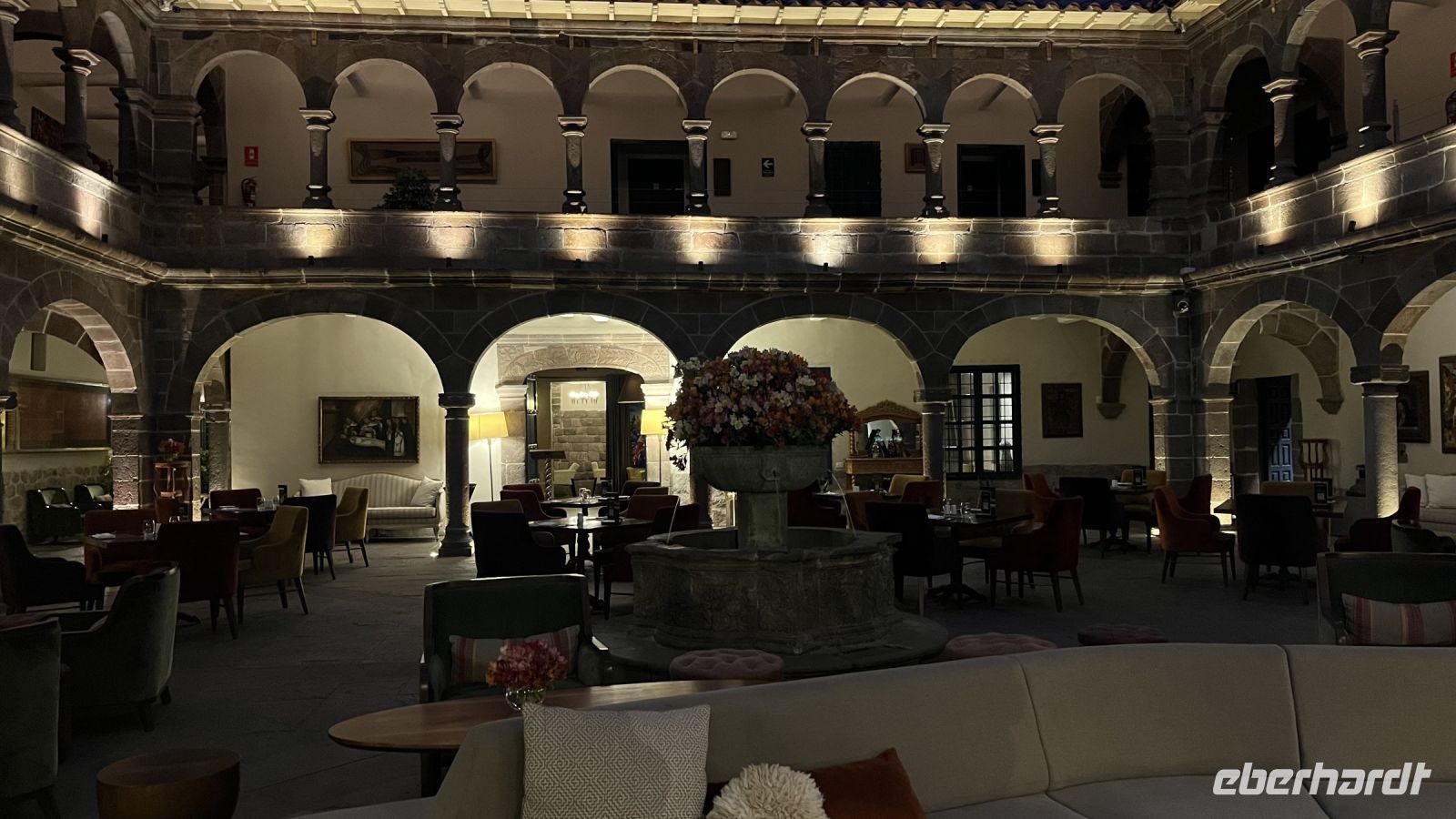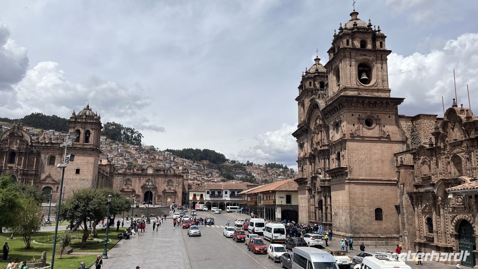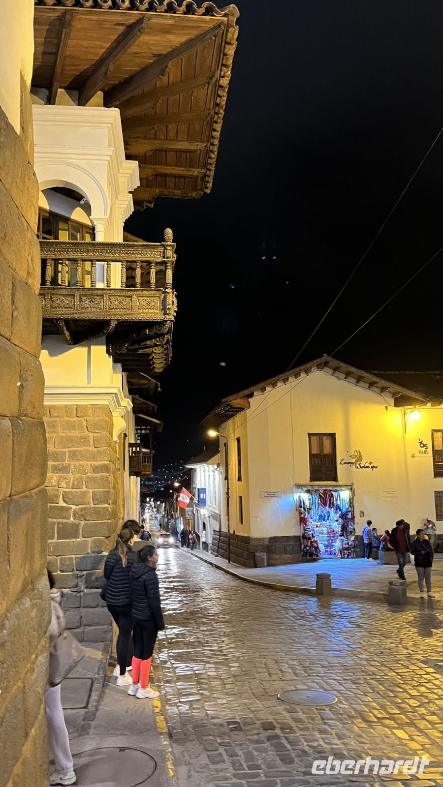 An diesem Tag ließen wir es meist ruhig angehen, ruhten uns ein wenig von den jüngsten Ereignissen aus und ließen Gehirn und Körper ein wenig nachdenken und ausruhen. Einige ließen sich die Gelegenheit nicht entgehen und machten einen zweiten Besuch. Anders als am Vortag sahen sie den Sonnenaufgang und nicht den Sonnenuntergang, der die Ruinen in ihrer ganzen Pracht beleuchtete. Am Nachmittag stiegen wir wieder in den Zug, diesmal in die entgegengesetzte Richtung, und während wir die Landschaft bewunderten, holte uns eine farbenfrohe Überraschung mit einer unterhaltsamen Show im Zugkorridor selbst aus unseren Träumereien! Nach dieser kurzen Zeit erreichten wir unser Ziel, von wo aus wir mit dem Bus weiterfuhren. Wir durchquerten unzählige Städte unterschiedlicher Größe, die uns einen Eindruck davon vermittelten, wie weit unsere Realität von derjenigen entfernt ist, wo der Alltag ein Kampf ums Vorankommen ist. Und so erreichten wir mit den letzten Sonnenstrahlen des Tages unser wunderschönes Hotel im Kolonialstil im Herzen des historischen Zentrums von Cuzco. Wenige Minuten später genossen wir ein köstliches Abendessen nach lokaler Art und einen schönen Spaziergang zur Kathedrale, was nur ein kleiner Vorgeschmack auf das sein sollte, was wir am nächsten Tag genießen und essen würden.