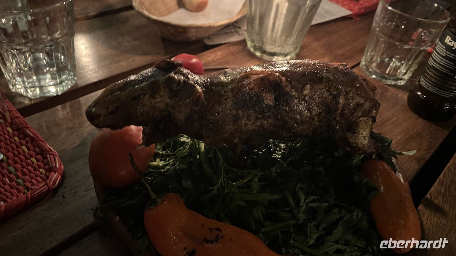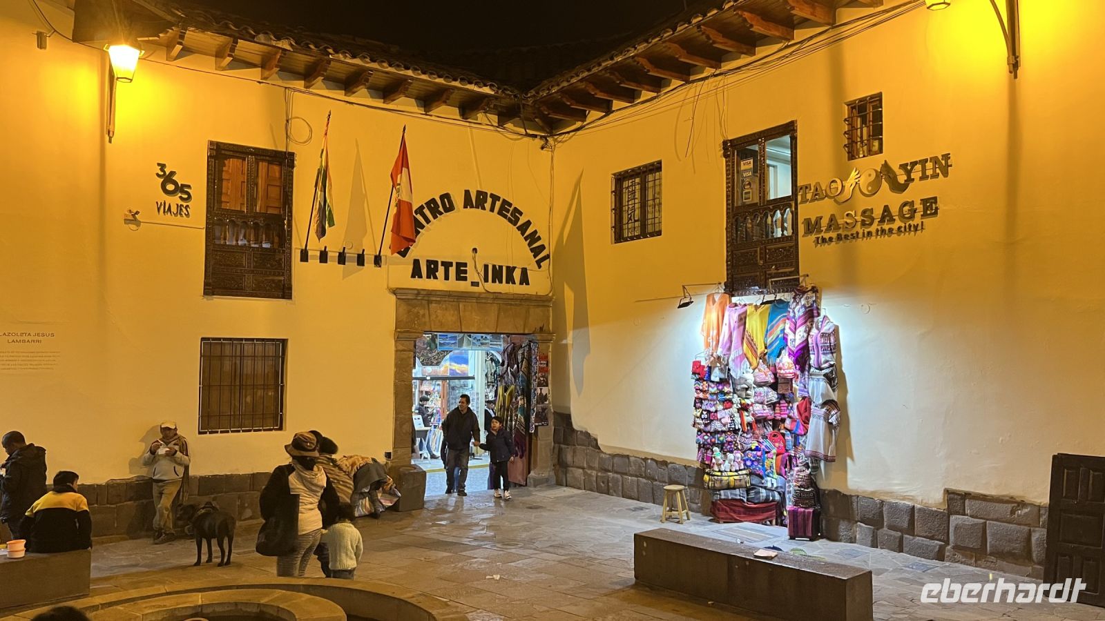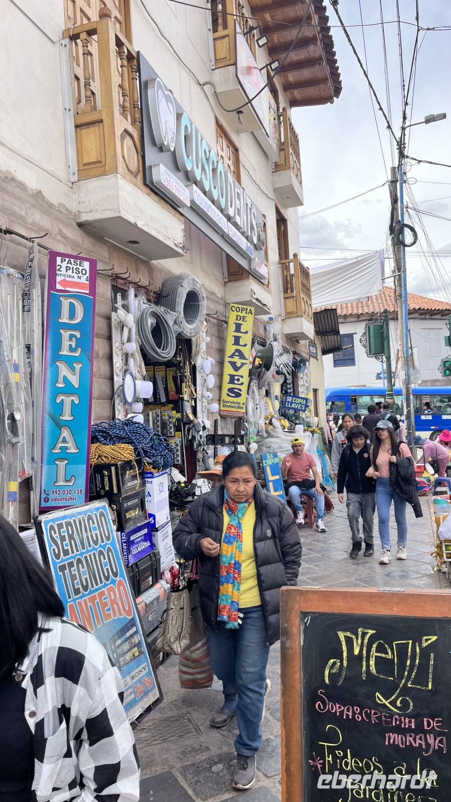 Wie jeden Tag war es ein Tag voller Aktivitäten und Überraschungen. Am Vormittag besichtigten wir die Altstadt von Cusco und lernten etwas über die Geschichte, die Architektur, die Kultur, die interessante Mischung aus Eingeborenen und Spaniern und all die Orte, die es hier gibt. Am Nachmittag gingen wir in kleinen Gruppen auf Entdeckungstour, je nach Lust und Laune. Ich halte den Markt für eine ausgezeichnete Wahl, er ist so eindrucksvoll und gleichzeitig anders als alles, was wir in Mitteleuropa finden können, eine Vielfalt von Produkten, die so groß, auffallend, eigenartig und unerhört ist, dass sie uns einlädt, in diese unbekannte Welt einzutauchen. Die Rückkehr zum Hotel auf einem anderen Weg, abseits der üblichen Touristenrouten, gab uns einen Einblick in die andere Welt, in der die Menschen leben, voller Straßenverkäufe, voller tausend und einer Sache. Das Angebot ist komplett, von der Tube bis zum Gewürz, von der Socke bis zum Haustier, vielleicht ein Haarschnitt oder ein Besuch beim Zahnarzt, alles direkt vor Ort. Aber unsere gastronomische Erfahrung sollte für den Abend reserviert bleiben, denn nach einem sehr kompletten und schmackhaften, landestypischen Abendessen sollte das Cuilo, das Meerschweinchen, das Sterne-Hauptgericht des Abends sein!