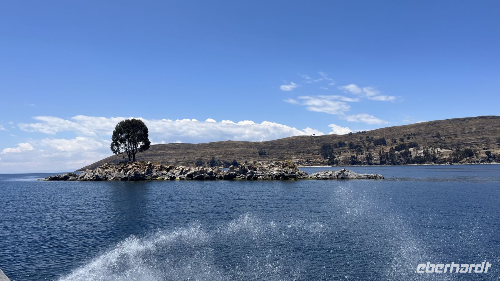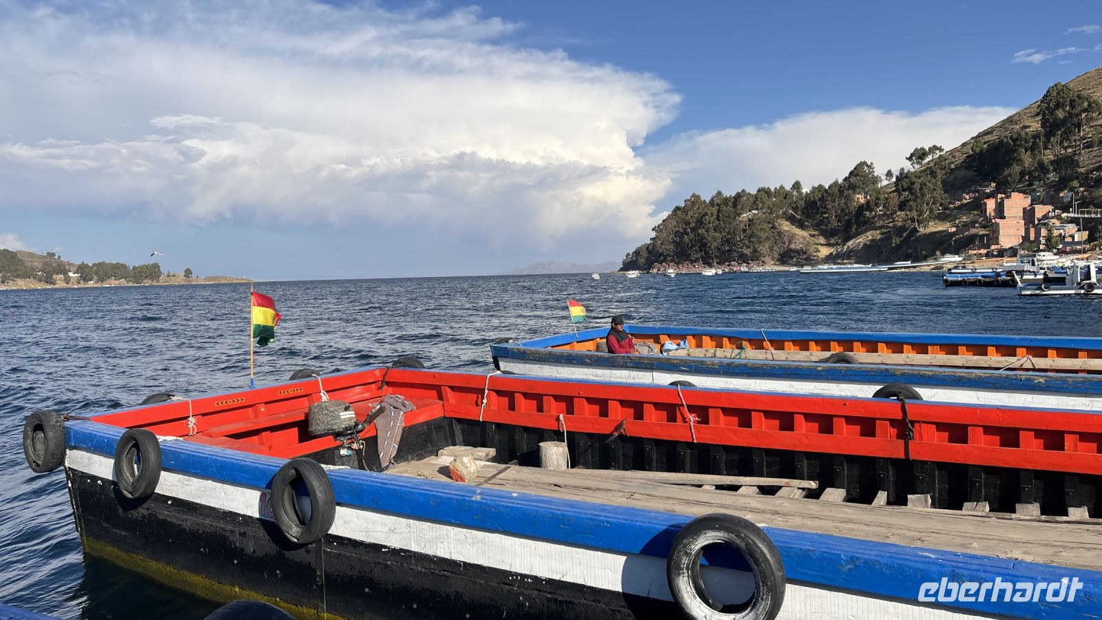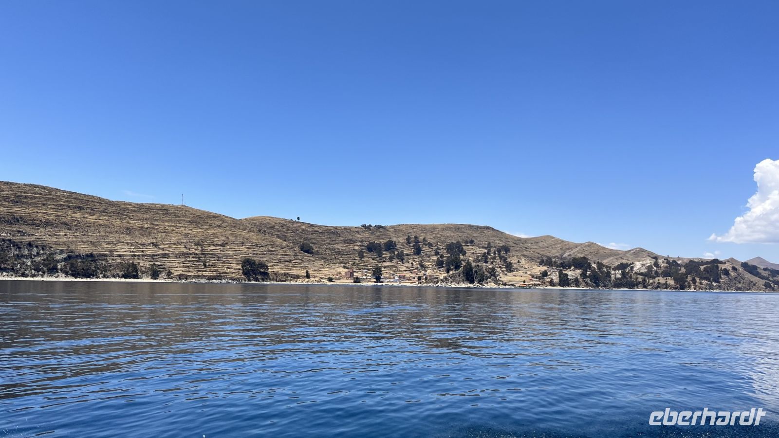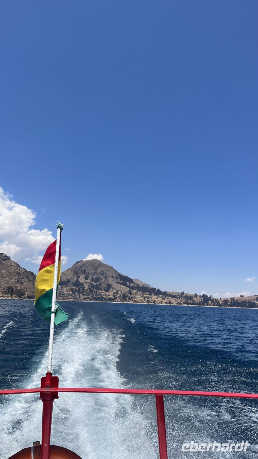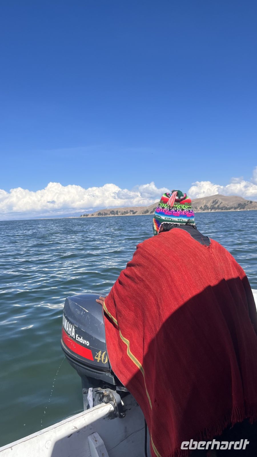 Weiterreise nach Bolivien – Bootsfahrt auf dem Titicaca–See zur Sonnen– und Mondinsel