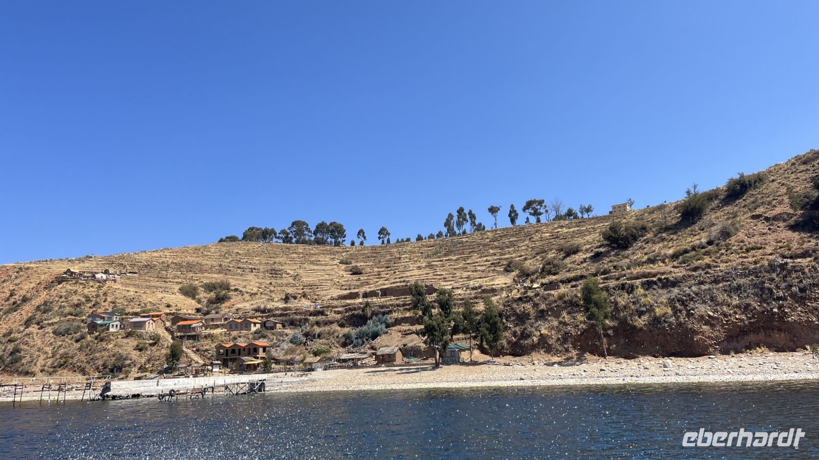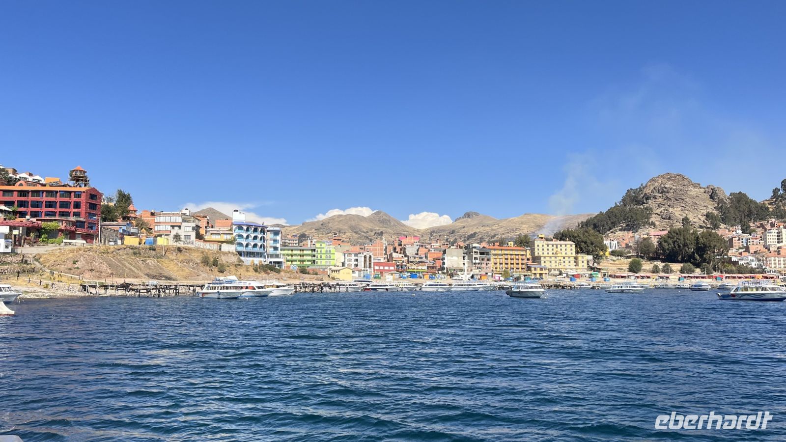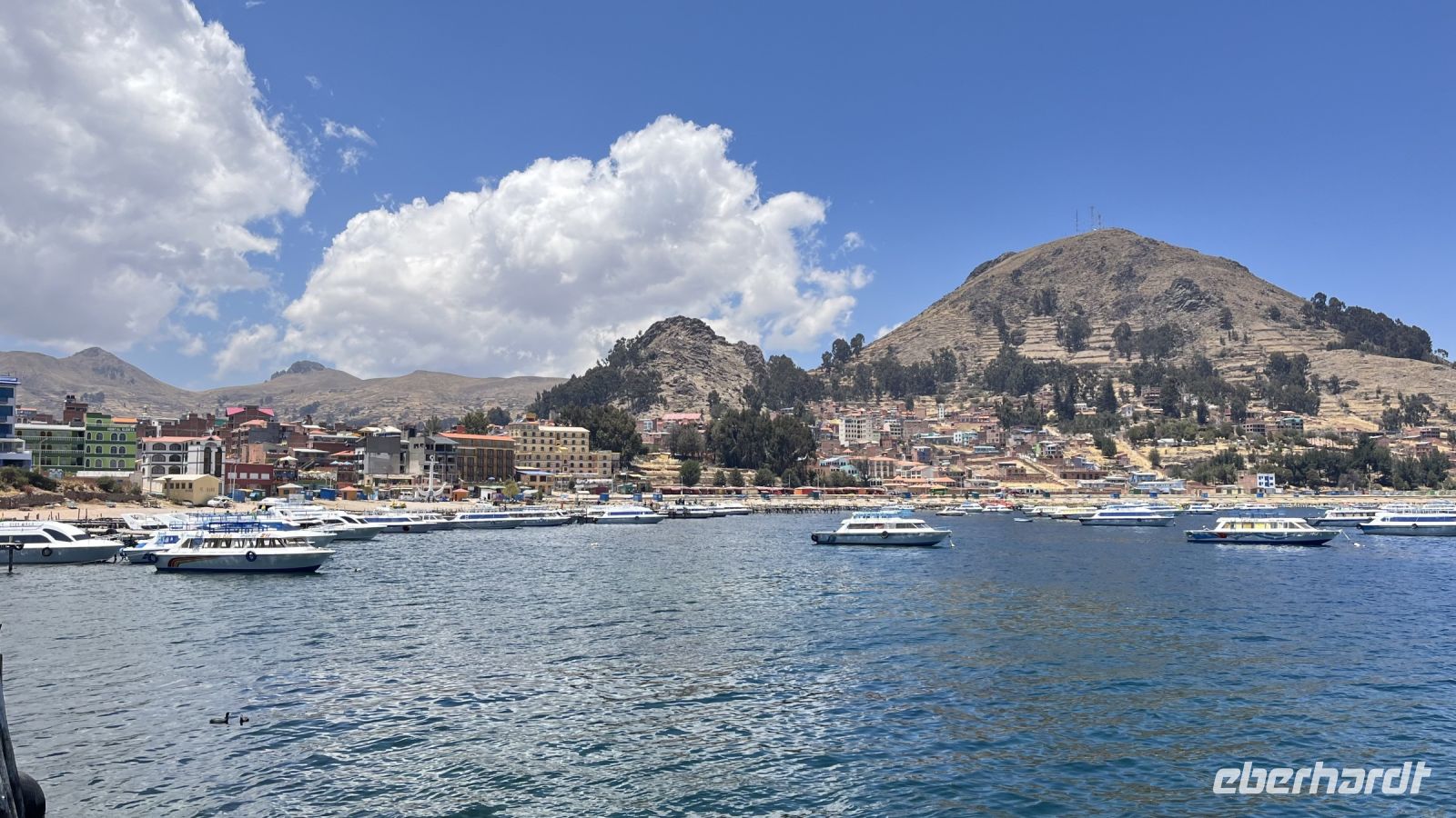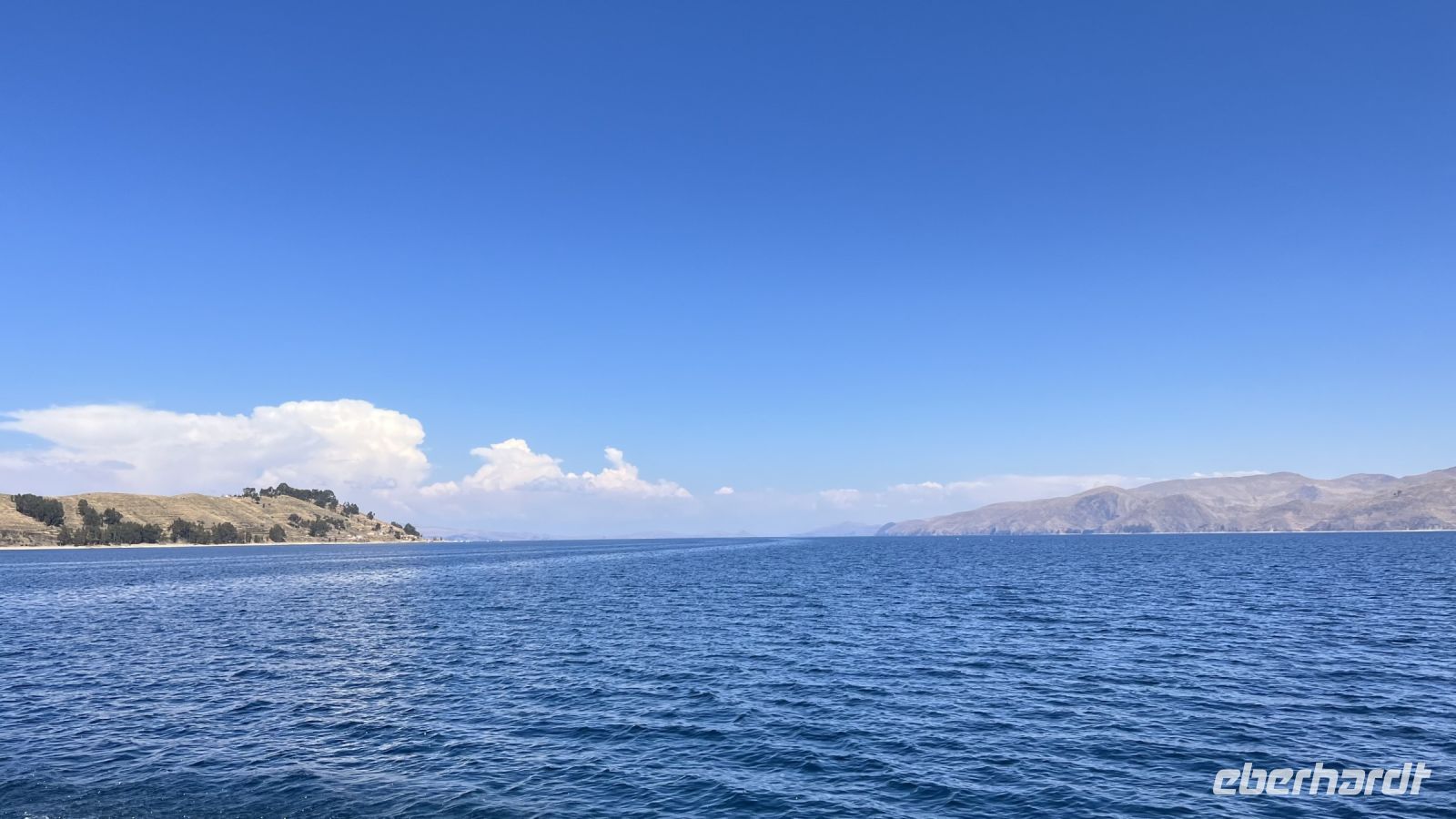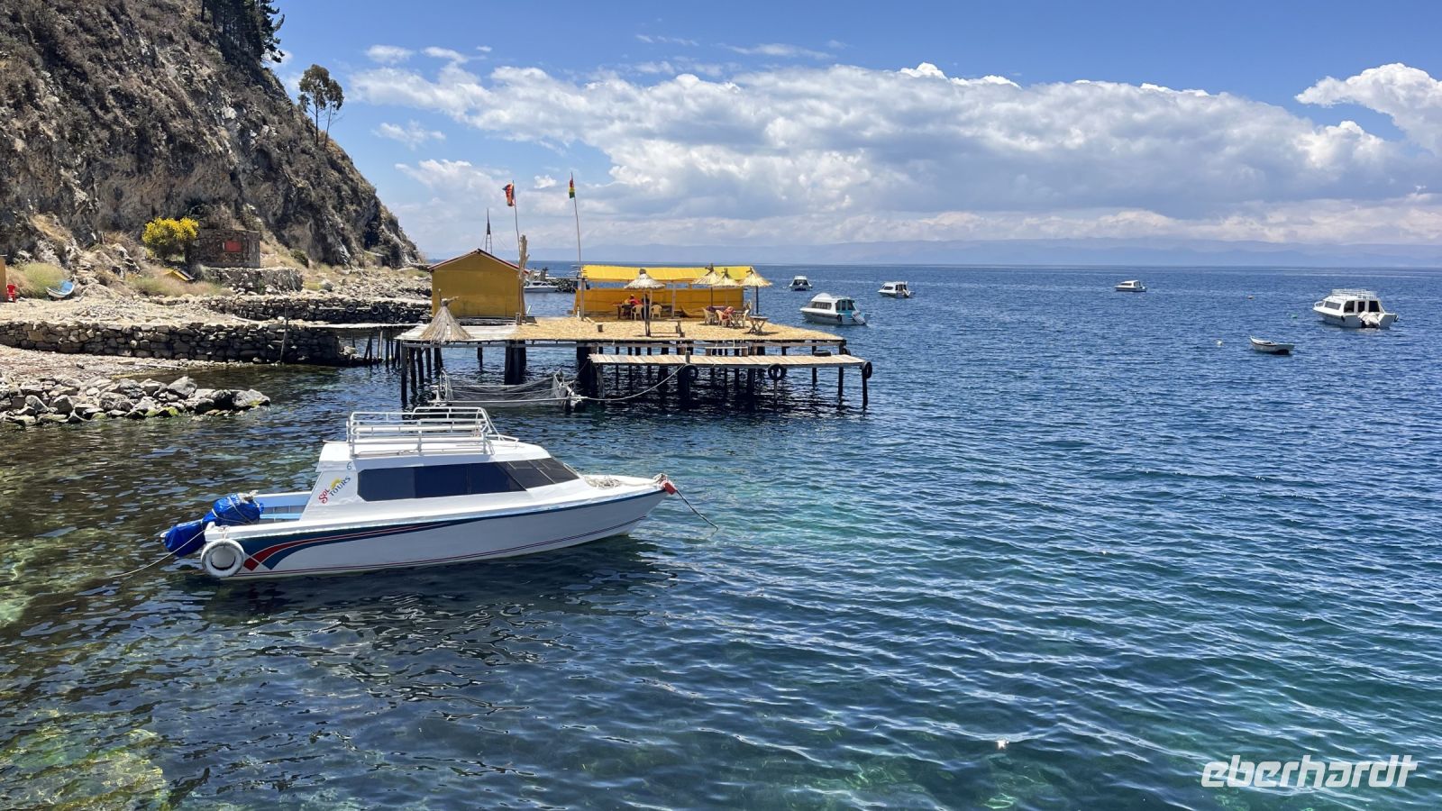 Weiterreise nach Bolivien – Bootsfahrt auf dem Titicaca–See zur Sonnen– und Mondinsel