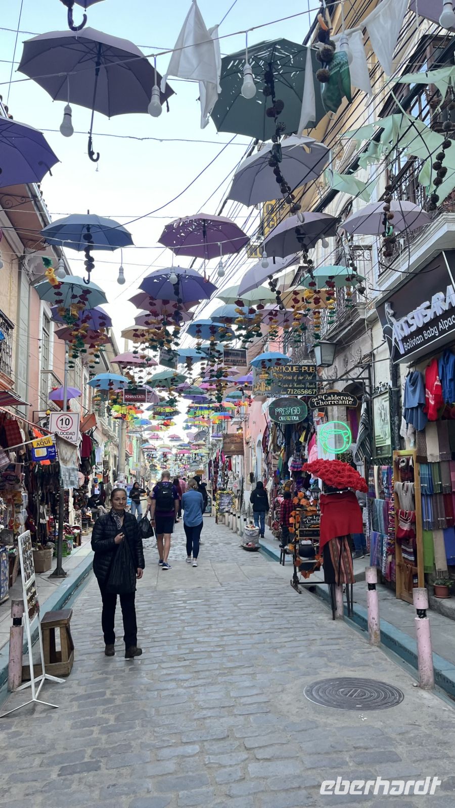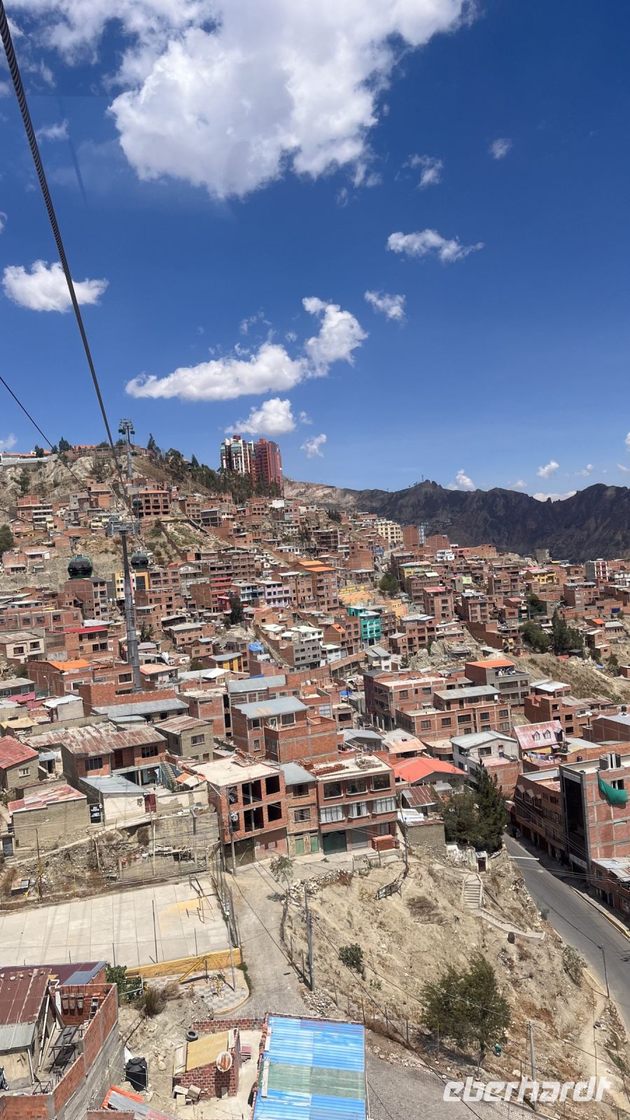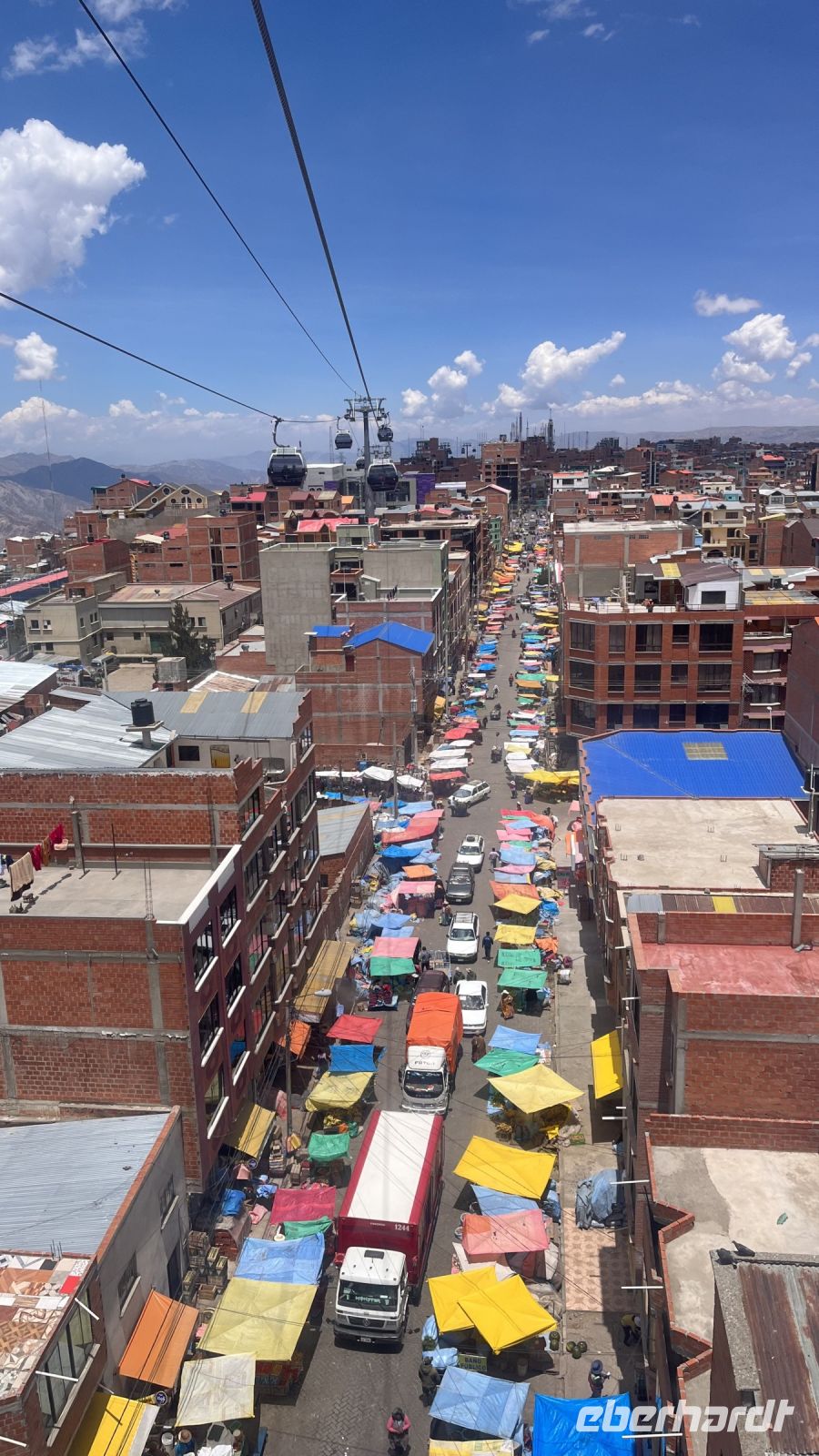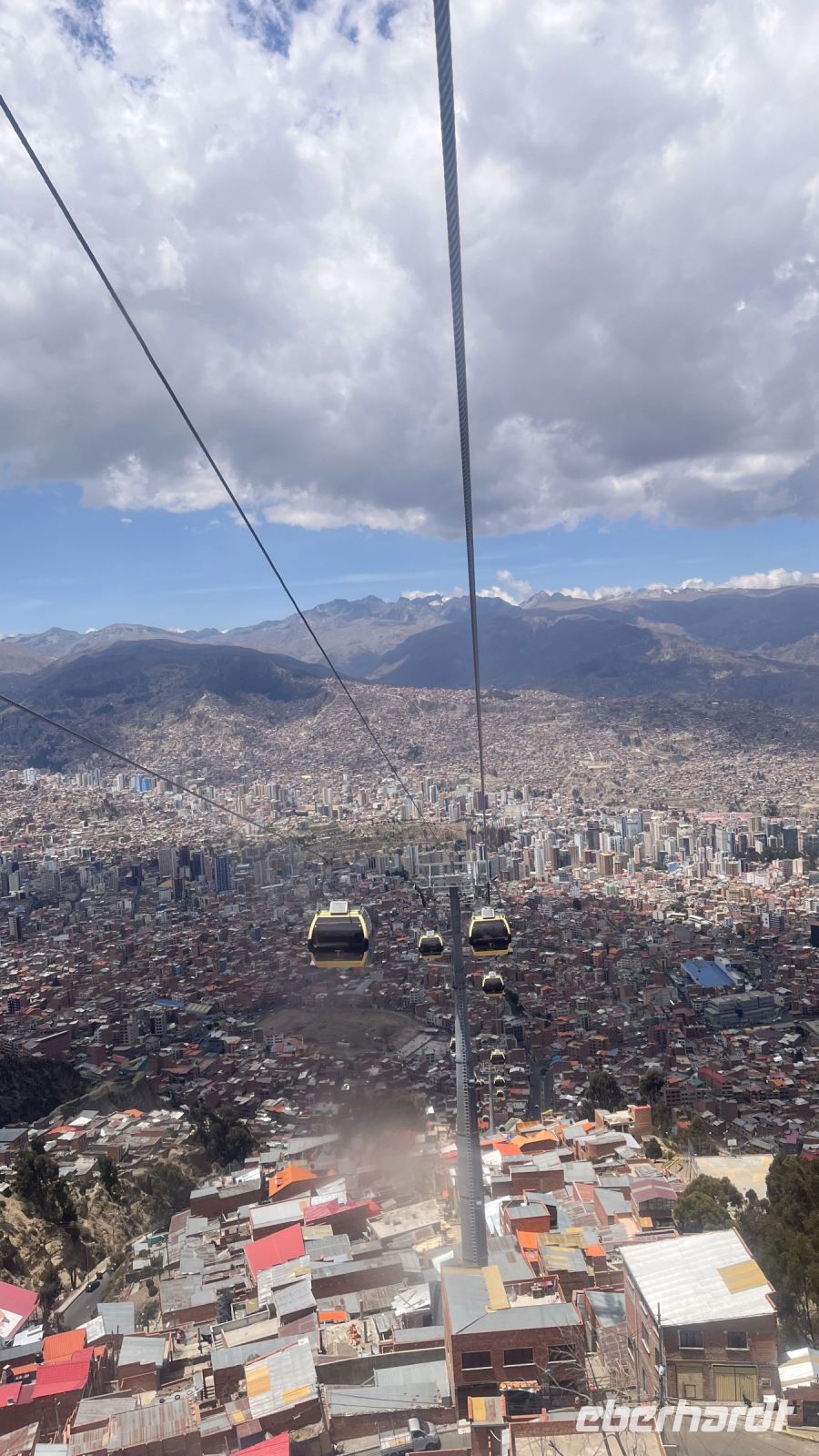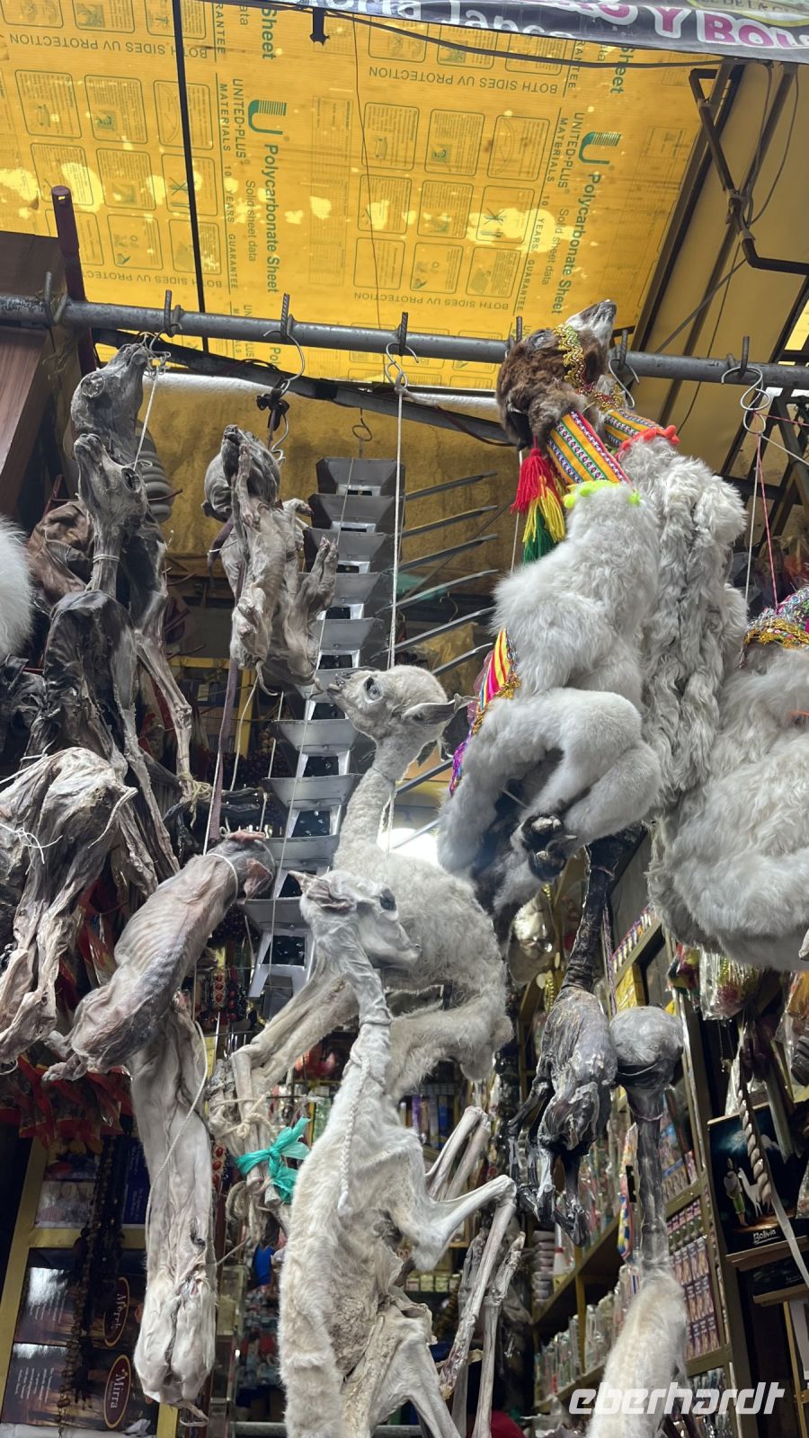 An diesem Tag nahmen wir das Programm vom Vortag wieder auf und fuhren sehr früh am Morgen mit dem Boot zu einigen kleinen schwimmenden Inseln an einem Ende des Sees, wo wir Kontakt mit Einheimischen einer fast ausgestorbenen Volksgruppe hatten. Die Fahrt war landschaftlich sehr reizvoll, eine schöne Art, den Tag zu beginnen. Wir setzten unsere Reise mit dem Bus fort und erreichten nach einigen Stunden die riesige Stadt "La Paz", die man am besten mit der Seilbahn besichtigen kann. Es ist ein außergewöhnliches Erlebnis, die ganze Stadt zu sehen, wie sie sich von einer Seilbahn zur anderen verändert, und das alles aus einer hervorragenden Perspektive, von Berg zu Berg oder hinunter ins Tal. Wir sahen uns die "Cholets" an, einzigartige Gebäude mit einer kulturellen Bedeutung. Es handelt sich um drei- oder vierstöckige Gebäude mit einer Fassade, die vor allem an einen Roboter oder Superhelden erinnert. In den oberen Etagen wohnt eine Familie, die in den ersten beiden Etagen ein Geschäft betreibt. Nun, nachdem wir die Stadt mit der Seilbahn überflogen hatten, machten wir uns auf den Weg durch die Altstadt, eine interessante Strecke, auf der der Hexenmarkt viel Aufmerksamkeit erregte. Unser Spaziergang endete mit dem Abendessen und von dort aus ging es zum Hotel, denn morgen stand ein großer Ausflug an!