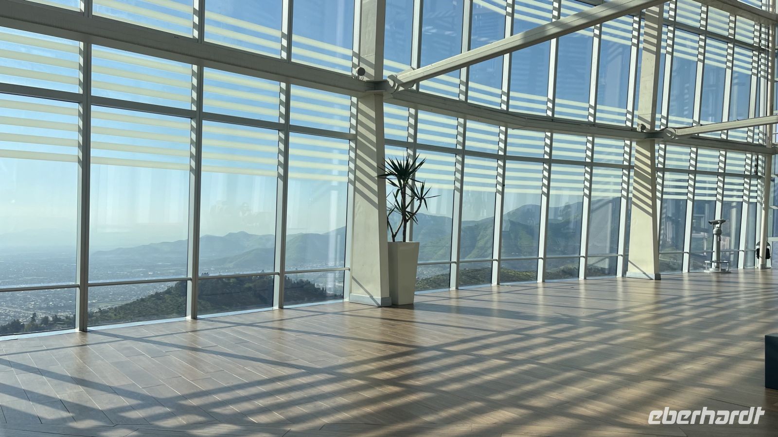 Wir begannen den Tag mit einer Stadtbesichtigung. Santiago ist eine sehr interessante Stadt, die im Gegensatz zu dem, was wir bisher in den anderen Städten gesehen hatten, sehr stark europäisch geprägt ist, sowohl in ihrer geordneten Stadtplanung als auch in ihrem architektonischen Stil. Eine sehr gepflegte Stadt, die uns mit angenehmen Eindrücken zurückließ. Der Vormittag verging schnell bis wir wieder zu einer Seilbahn fuhren, diesmal einer kleinen, die uns auf den Gipfel des Berges San Cristóbal brachte. Von dort aus bewunderten wir die Aussicht auf die Stadt und die imposanten Anden, die von jedem Punkt der Stadt aus zu sehen sind. Unten erwartete uns ein leckeres Mittagessen, und danach machten wir uns auf den Weg zum Einkaufszentrum, in dem sich der Turm "Sky Costanera" befindet. Wir kletterten alle zusammen in die oberste Etage... und was für eine wunderbare Aussicht, ganz Santiago zu unseren Füßen, die Anden in der Ferne, die uns das Gefühl gaben, ein Gespräch auf Augenhöhe zu führen. Nach tausend und einem Foto, machten wir uns auf den Rückweg zum Hotel, einige von uns in Taxis, andere zu Fuß. Hier feierten wir auf der Terrasse unseren Aufenthalt, genossen das letzte Licht des Tages und warteten geduldig auf das Abendessen.