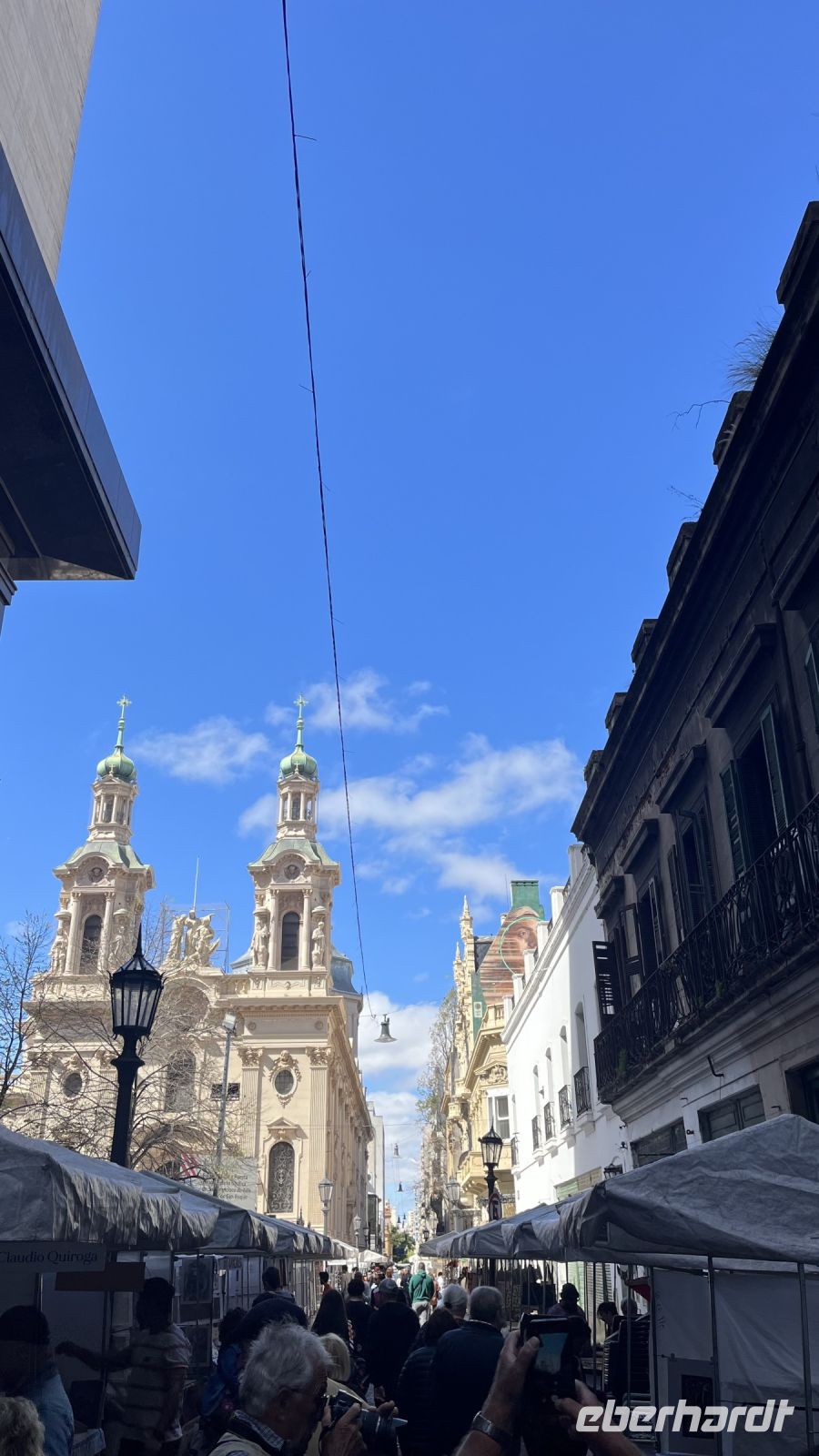 Wir begannen unseren Rundgang durch die Stadt, durch die Straßen, die gestern wegen des Karnevals noch voller Menschen waren. Heute waren sie ein bisschen leerer, aber es fand ein Marathon statt. Die Umrisse der Straßen und die Architektur der Stadt "Buenos Aires" sind sehr europäisch, das Treiben auf den Straßen ist jedoch rein lateinamerikanisch. Wir setzten unseren Rundgang fort, der uns zu einem meiner Lieblingsplätze führte, dem "San Telmo"-Markt, wo wir eine Unmenge an gastronomischen Angeboten, Kunsthandwerk und Antiquitäten sahen, genug, um sich dort einen ganzen Tag lang zu verlieren. In der Umgebung gab es auch viele kleine Geschäfte, ganz zu schweigen von dem Flohmarkt mit vielen europäischen Antiquitäten. Von dort aus fuhren wir in das Viertel "La Boca", das für sein Stadion, seine bunten Häuser und die Legende "Maradona" bekannt ist. Wir stiegen aus dem Bus und tauchten in die bunten Straßen, Restaurants und Geschäfte ein. Wir verließen den Bus, um unsere Tour fortzusetzen, denn Buenos Aires ist groß. Für den Rest des Vormittags besuchten wir weitere interessante Viertel. Dann aßen wir in aller Ruhe zu Mittag, spazierten durch die Straßen oder ruhten uns im Hotel ein wenig aus, denn am Abend erwartete uns ein ausgezeichnetes Abendessen, begleitet von einer unvergesslichen Tango-Show.
