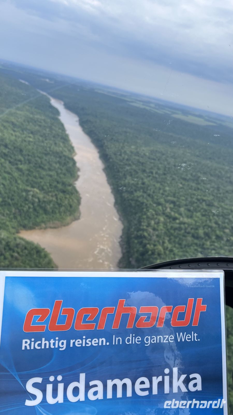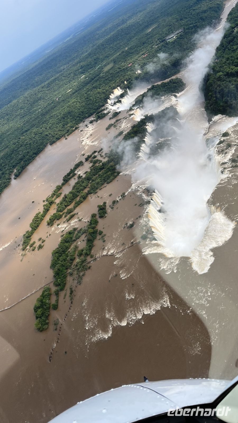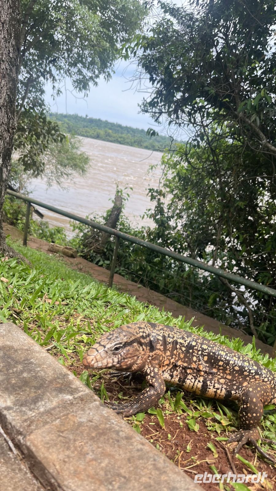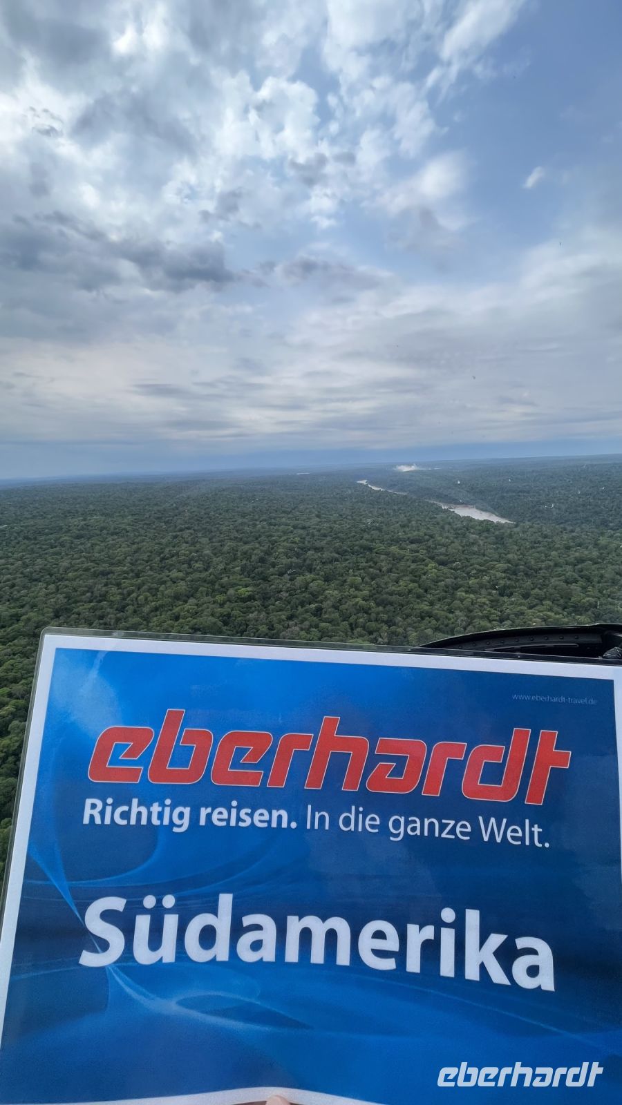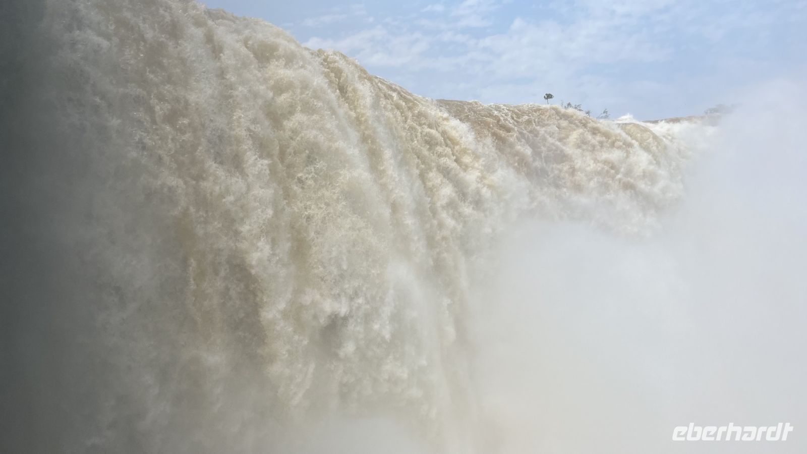 Wenn ich diesen Tag in irgendeiner Weise beschreiben könnte, wäre es eine Mischung aus wildem Adrenalin, Ehrfurcht und Freude. Der erste Halt des Tages war der Hubschrauberlandeplatz. Von dort aus flogen wir über den Dschungel, bis wir uns diesem riesigen, 3 km langen Wasserfall näherten, der komplett mit Wasser gefüllt war und sich in seinem 80 Meter hohen Fall wütend brach. Was für eine Aussicht! Eine großartige Perspektive auf dieses Naturjuwel, die den Preis für den Flug auf jeden Fall wert ist. Gut gelaunt machten wir uns auf den Weg, um diese Pracht von der brasilianischen Seite aus näher zu betrachten. Plattformen, Brücken und Wege, die erstaunlich nahe an die Wasserfälle herankommen, die so ungestüm sind, dass der Wassernebel über ihre Nähe hinausreicht und alles wie der mächtigste Regen benetzt. Eine Fotoszene folgt auf eine Erinnerungsszene, und so ging unsere Reise den ganzen Vormittag weiter. Am Nachmittag sollte das Adrenalin den Hauptgang bilden, denn unsere Bootsfahrt war ein wirkliches Abenteuer. Wir vergaßen also jede Versicherung und jedes Unglück und stiegen in die ersten Reihen eines kleinen Bootes mit starkem Motor, das zwischen den Flusskämmen fast schwebte, dem weißen Rauschen entgegen, das plötzlich alles einhüllte. Mit dem Herzen in den Händen und immer noch schreiend vor Ekstase hätten wir gerne noch ein paar Runden gedreht, aber es war Zeit, zum Hotel zurückzukehren.