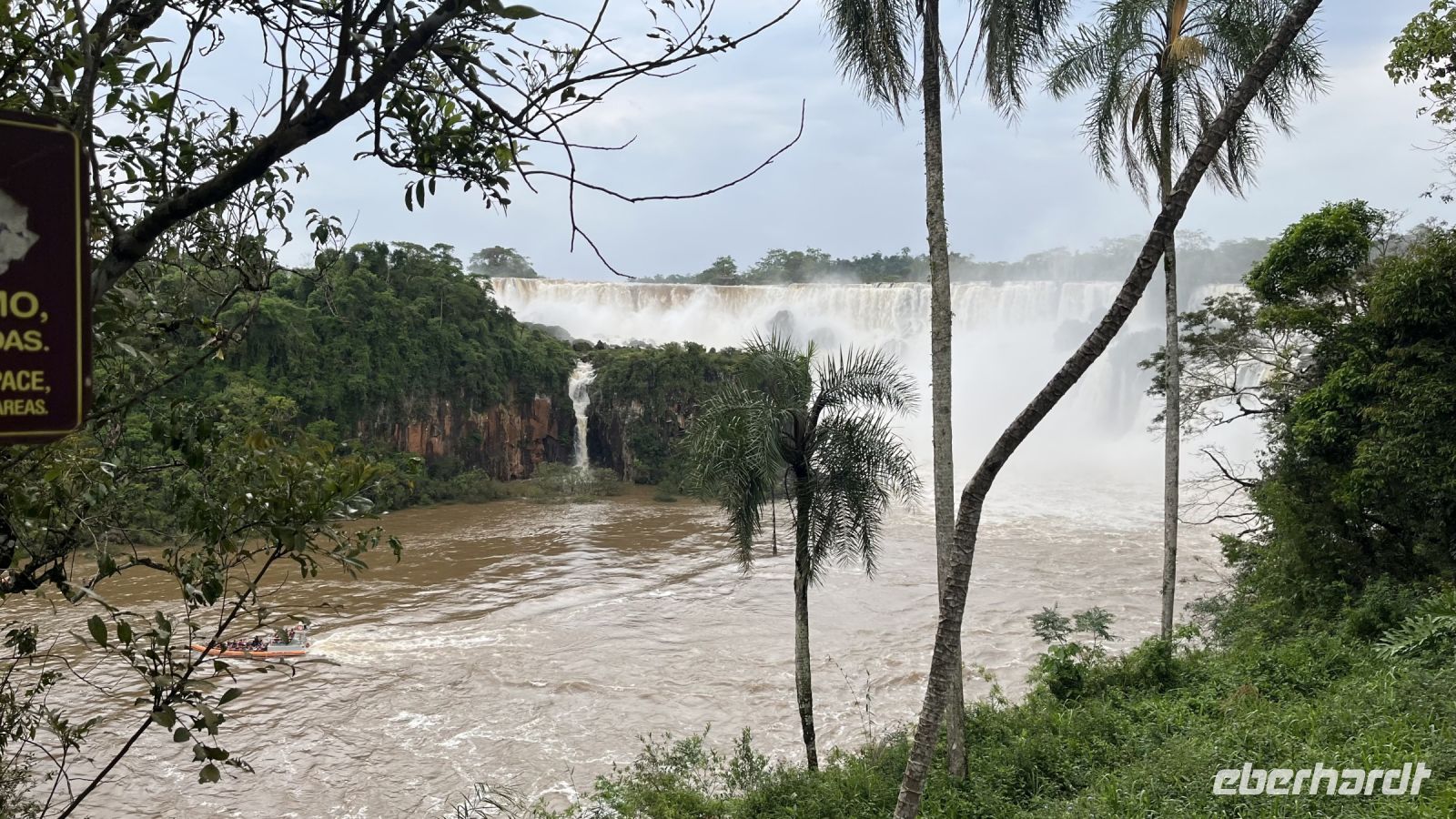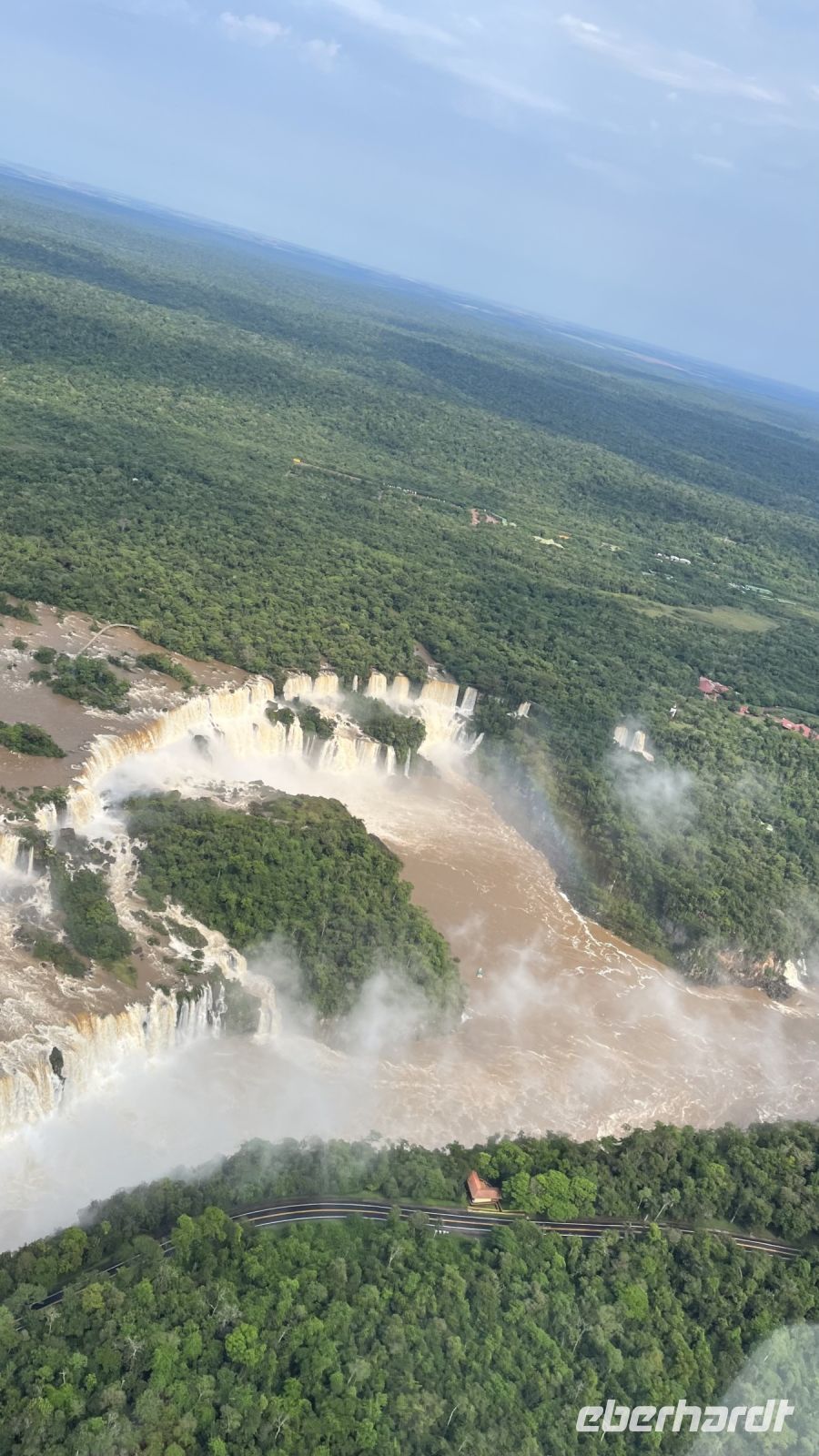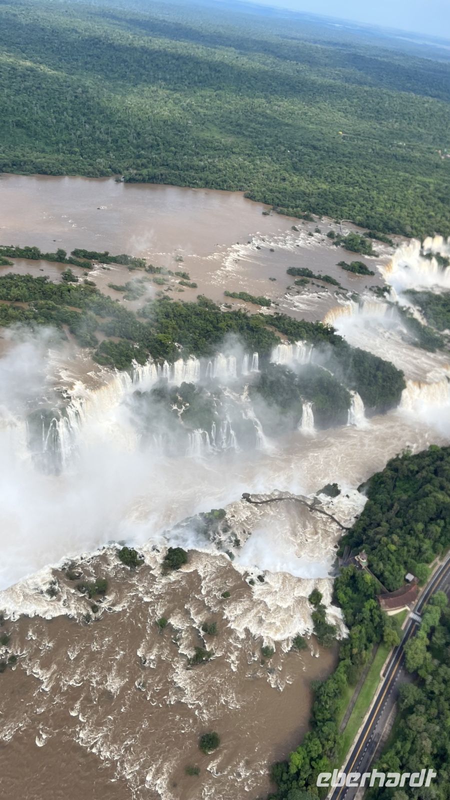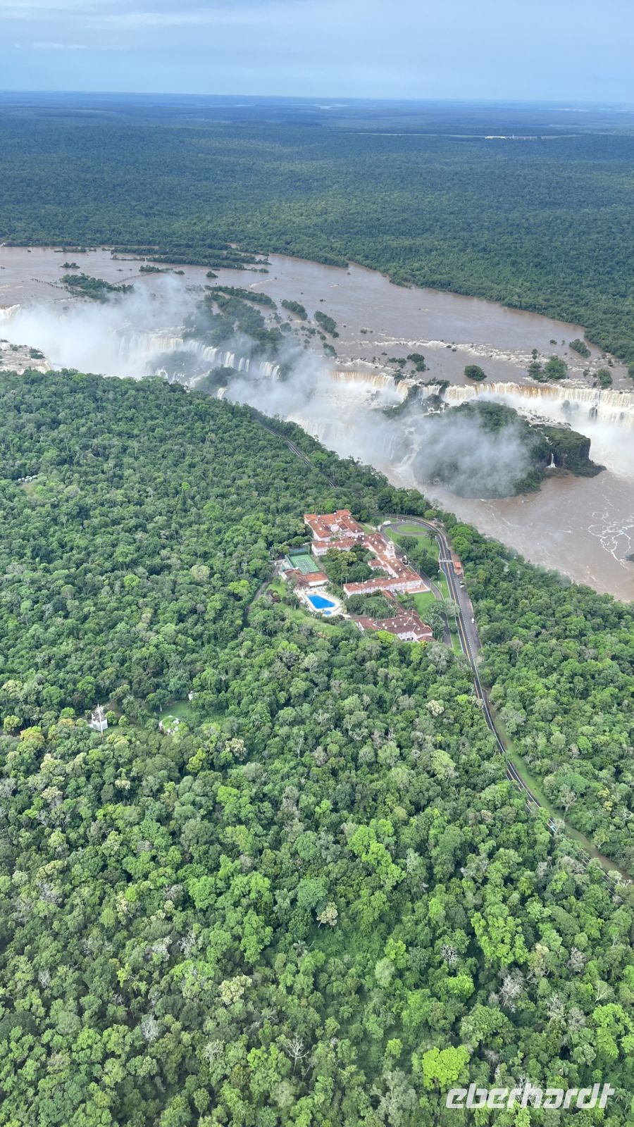 Wenn ich diesen Tag in irgendeiner Weise beschreiben könnte, wäre es eine Mischung aus wildem Adrenalin, Ehrfurcht und Freude. Der erste Halt des Tages war der Hubschrauberlandeplatz. Von dort aus flogen wir über den Dschungel, bis wir uns diesem riesigen, 3 km langen Wasserfall näherten, der komplett mit Wasser gefüllt war und sich in seinem 80 Meter hohen Fall wütend brach. Was für eine Aussicht! Eine großartige Perspektive auf dieses Naturjuwel, die den Preis für den Flug auf jeden Fall wert ist. Gut gelaunt machten wir uns auf den Weg, um diese Pracht von der brasilianischen Seite aus näher zu betrachten. Plattformen, Brücken und Wege, die erstaunlich nahe an die Wasserfälle herankommen, die so ungestüm sind, dass der Wassernebel über ihre Nähe hinausreicht und alles wie der mächtigste Regen benetzt. Eine Fotoszene folgt auf eine Erinnerungsszene, und so ging unsere Reise den ganzen Vormittag weiter. Am Nachmittag sollte das Adrenalin den Hauptgang bilden, denn unsere Bootsfahrt war ein wirkliches Abenteuer. Wir vergaßen also jede Versicherung und jedes Unglück und stiegen in die ersten Reihen eines kleinen Bootes mit starkem Motor, das zwischen den Flusskämmen fast schwebte, dem weißen Rauschen entgegen, das plötzlich alles einhüllte. Mit dem Herzen in den Händen und immer noch schreiend vor Ekstase hätten wir gerne noch ein paar Runden gedreht, aber es war Zeit, zum Hotel zurückzukehren.