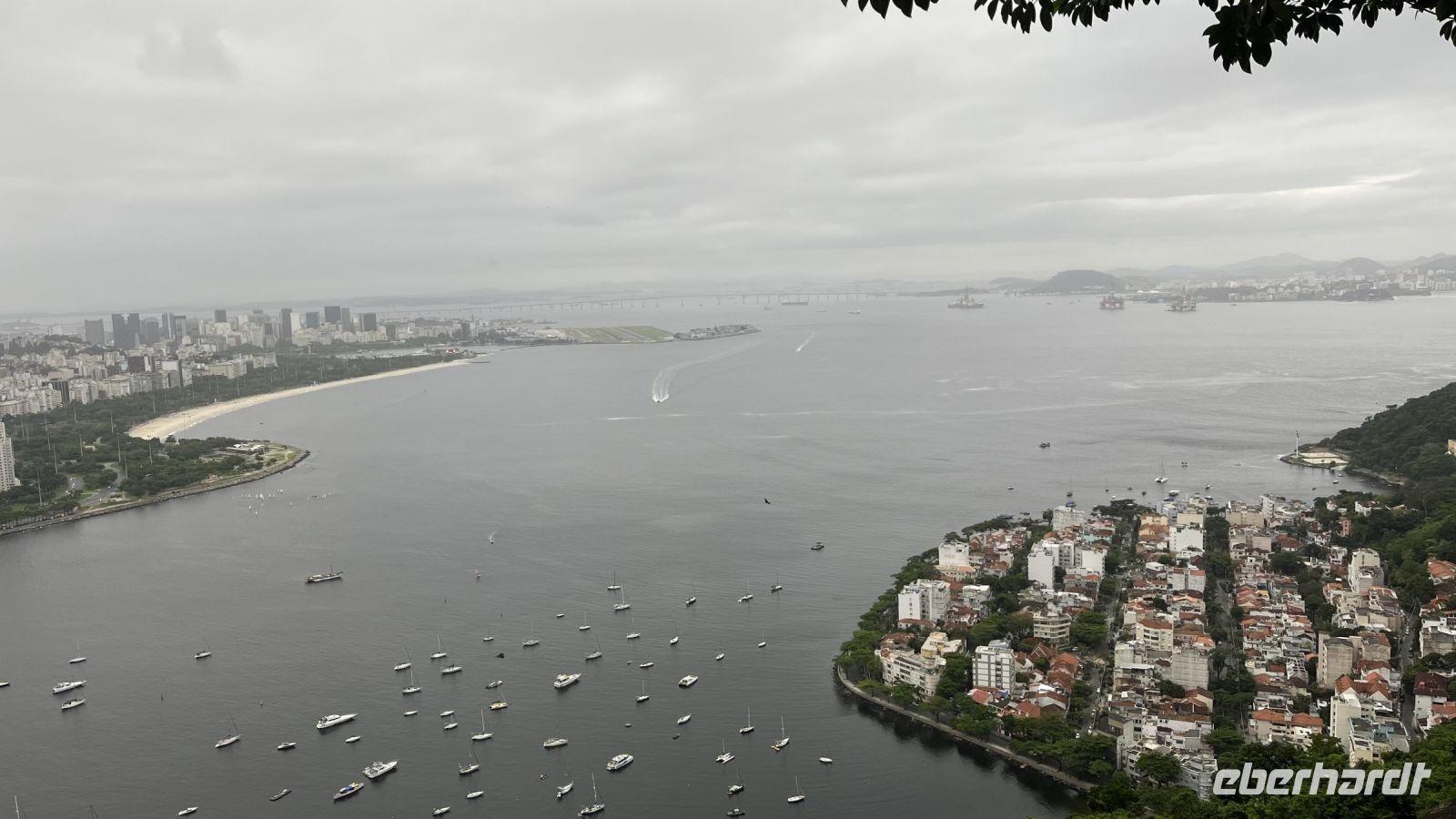 Unser letzter Tag! Wir machten uns auf den Weg zur Anlegestelle und bestiegen ein wunderschönes Segelboot, das uns die schöne Bucht zeigte, welche gestern von oben gesehen wurde. Es war ein angenehmes Segeln, ein bisschen nostalgisch, unter einem bleiernen Himmel, der sich von uns verabschiedete. Einer nach dem anderen sahen wir Punkte, die wir damals nur in der Ferne gesehen hatten und nun segelten wir neben ihnen her. Nun, der erste Teil unseres letzten Tages war geschafft. Von der Anlegestelle aus stürzten wir uns in die Stadt, wir besichtigten bekannte oder emblematische Punkte von Rio, es versteht sich von selbst, dass Rio de Janeiro eine riesige Stadt ist, in der es viel zu sehen und zu genießen gibt. Stunden später, mit dem Ticket in der einen Hand und den Koffern in der anderen Hand, schritten wir durch den Flughafen, bereit zum Einsteigen. Die Reise war zu Ende, die Koffer und Souvenirs gepackt, und wir konnten nur noch an die Temperaturen denken, die uns bei der Ankunft erwarten würden.