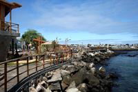 Wir fuhren mit einem öffentlichen Bus zur Fähre, nach der kurzen Schifffahrt ging es nun mit unserem Bus nach Puerto Ayora, der Kleinstadt auf der Insel Santa Cruz, wo sich unser Hotel befindet. Am Nachmittag trafen wir uns zu einem Spaziergang zur Charles-Darwin-Forschungsstation, es nieselte, war aber sehr warm. Die Station war sehr interessant: Lonesome George, die berühmte einsame Schildkröte sahen wir in einger Entfernung. Erklärungen zu den Inseln, Platten-Verschiebungen, Meeresströmungen und Vulkanen geben einen sehr guten Aufschluss. Danach bin ich mit einigen Gästen ins Dorf gelaufen, um Postkarten zu kaufen. Kleiner Tipp: Unbedingt abends zum Sonnenuntergang an den Pier laufen!