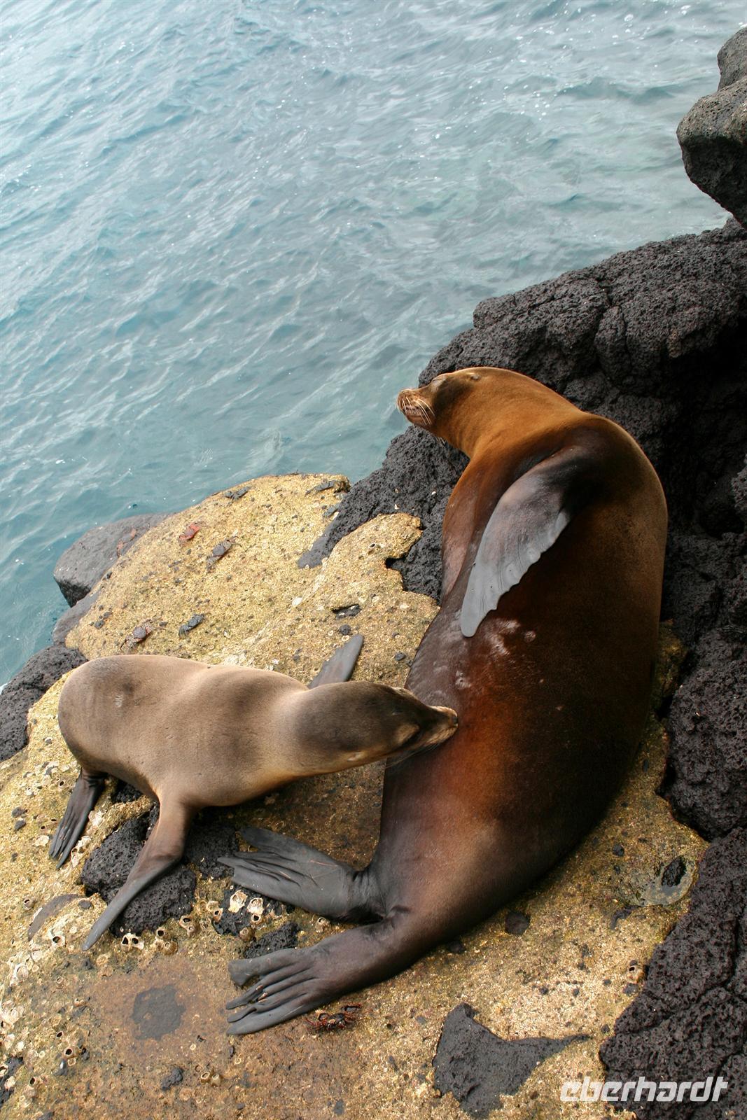 Heute stand die Gardener-Bucht auf dem Programm. Das Wetter war etwas ungemütlich, es nieselte und war etwas frisch. Wir spazierten die Bucht entlang und fotografieren die vielen Seelöwen, die hier überall herumlagen. So nahe dran sein an diesen Tieren - das war schon etwas Besonderes. Am Nachmittag beobachteten wir Albatrosse, Wasserleguane, Tölpel, Gabelschwanzmöwen und den Rotschnabel-Tropenvogel. Etwa 19.00 Uhr fuhr die Yacht los. Bei einem Abschiedscocktail ließen wir das Abenteuer Galápagos noch einmal Revue passieren.