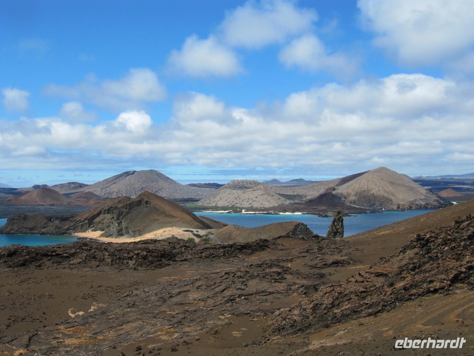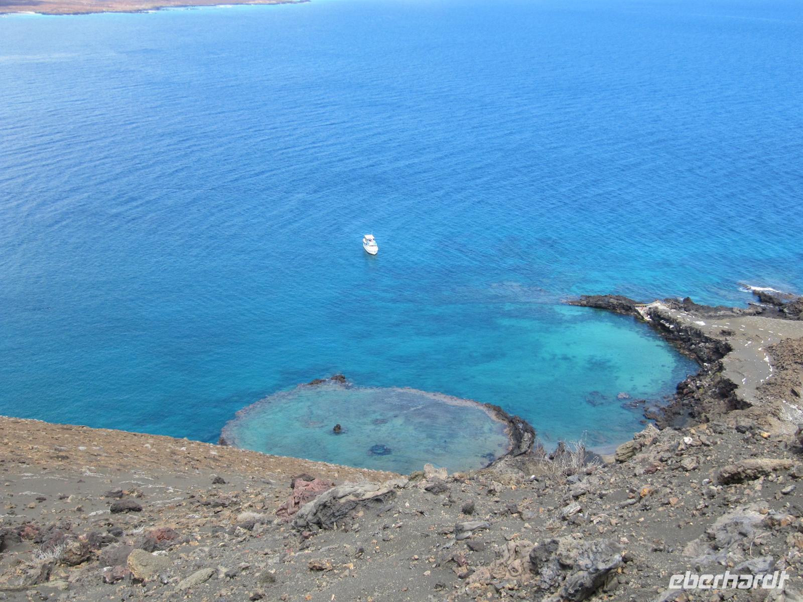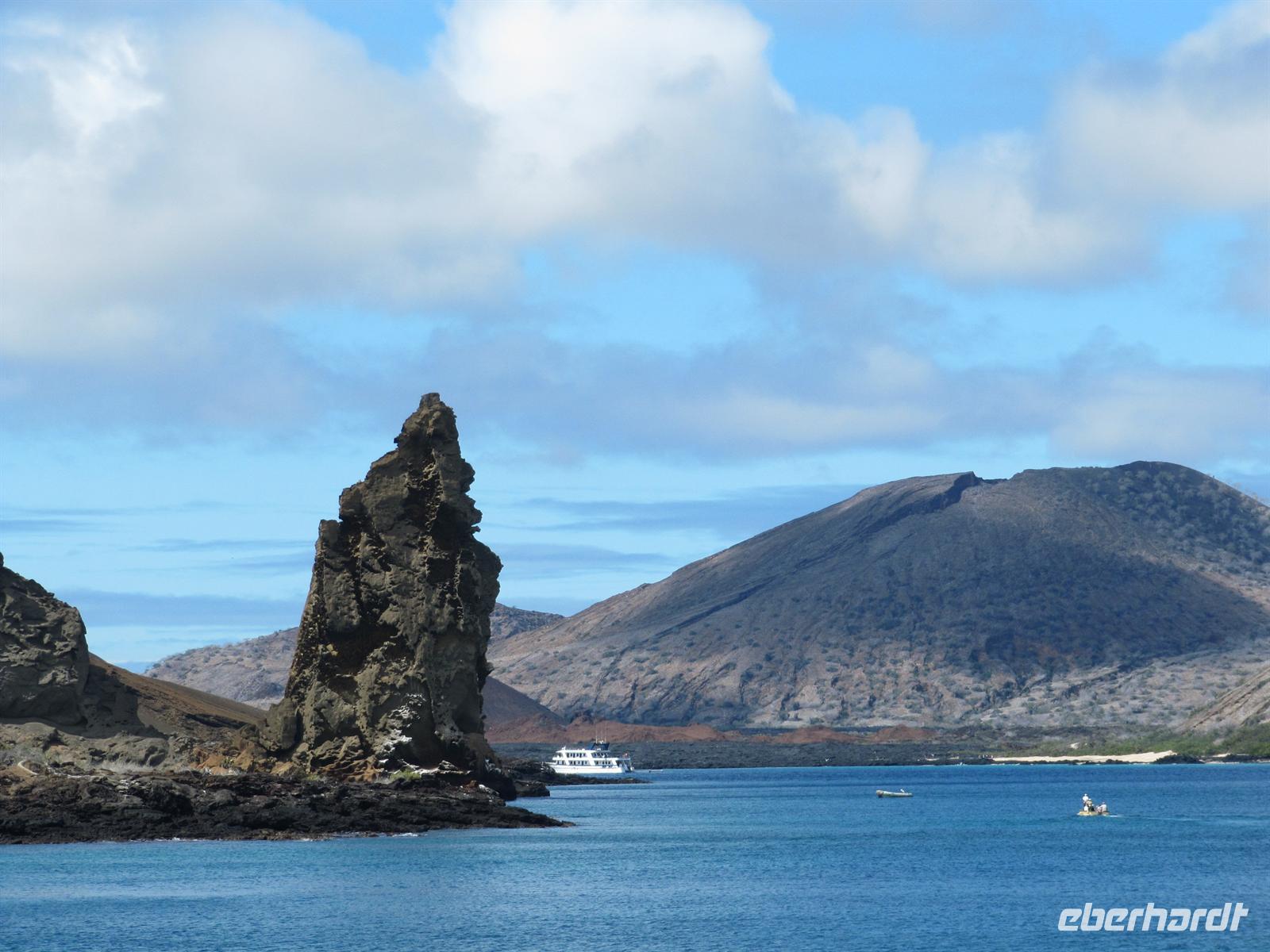 Am nächsten Tag führte uns ein Schifffsausflug auf die Insel Bartolomé. Die Überfahrt mit dem Schiff dauerte 3 Stunden und uns begleiteten verschiedenste Seevögel. Auf der Insel stiegen wir auf den etwa 100 Meter hohen Aussichtspunkt und uns eröffnete sich ein einmaliger Blick auf die berühmte Doppelbucht. Wir erfuhren von unserem Naturführer Juvor viel über die Entstehung der Inseln und beobachteten erstmals Seelöwen und Meeresschildkröten. Wir bekamen einen ersten Eindruck von