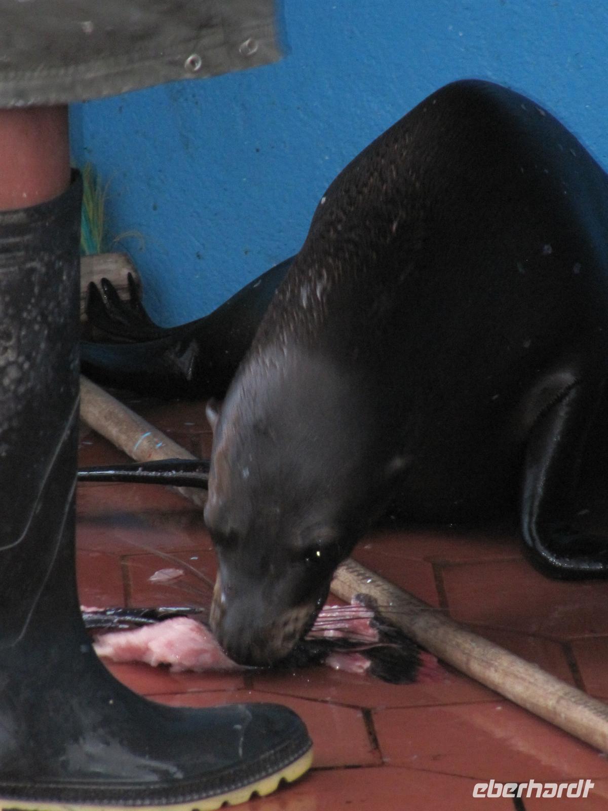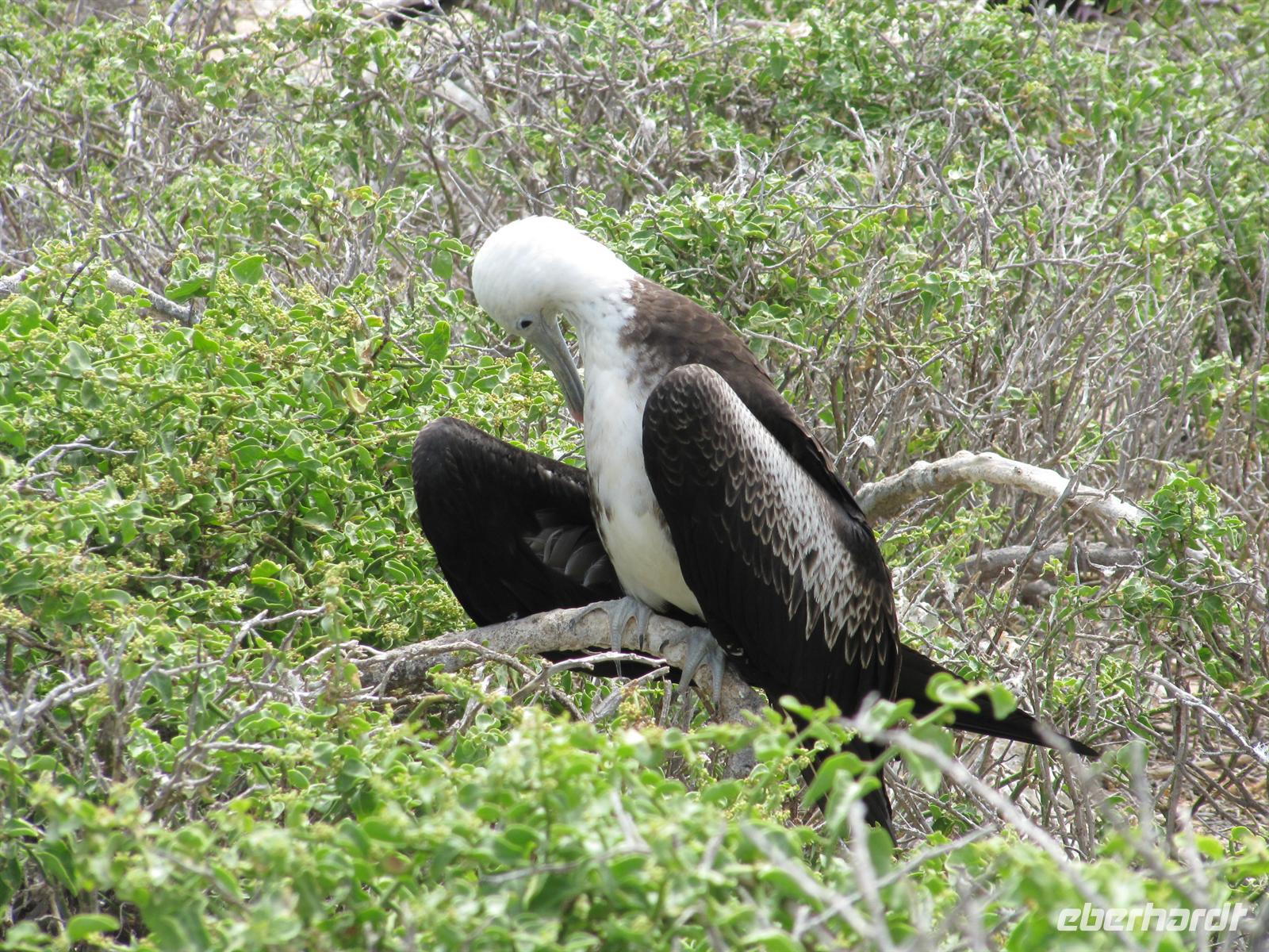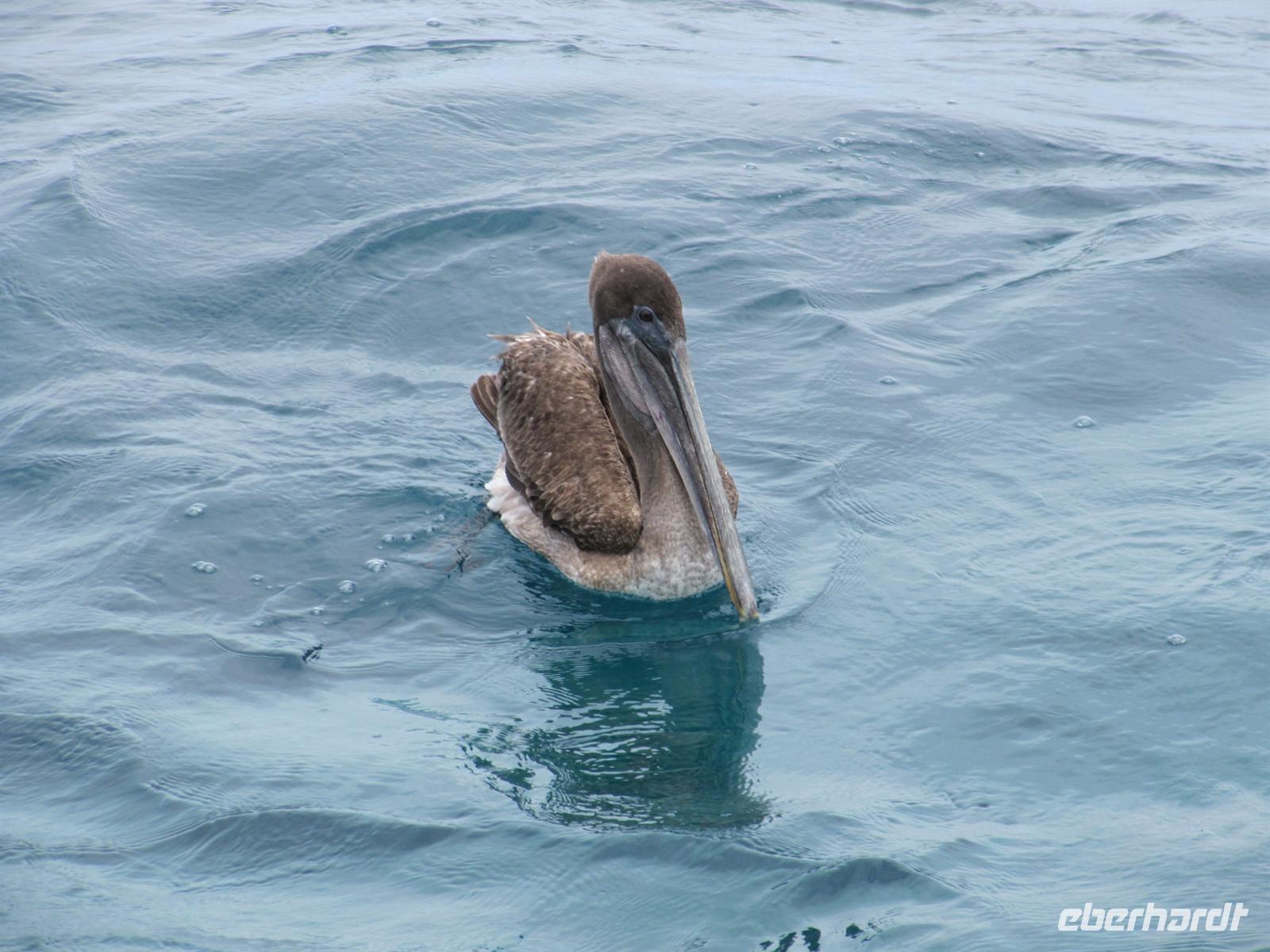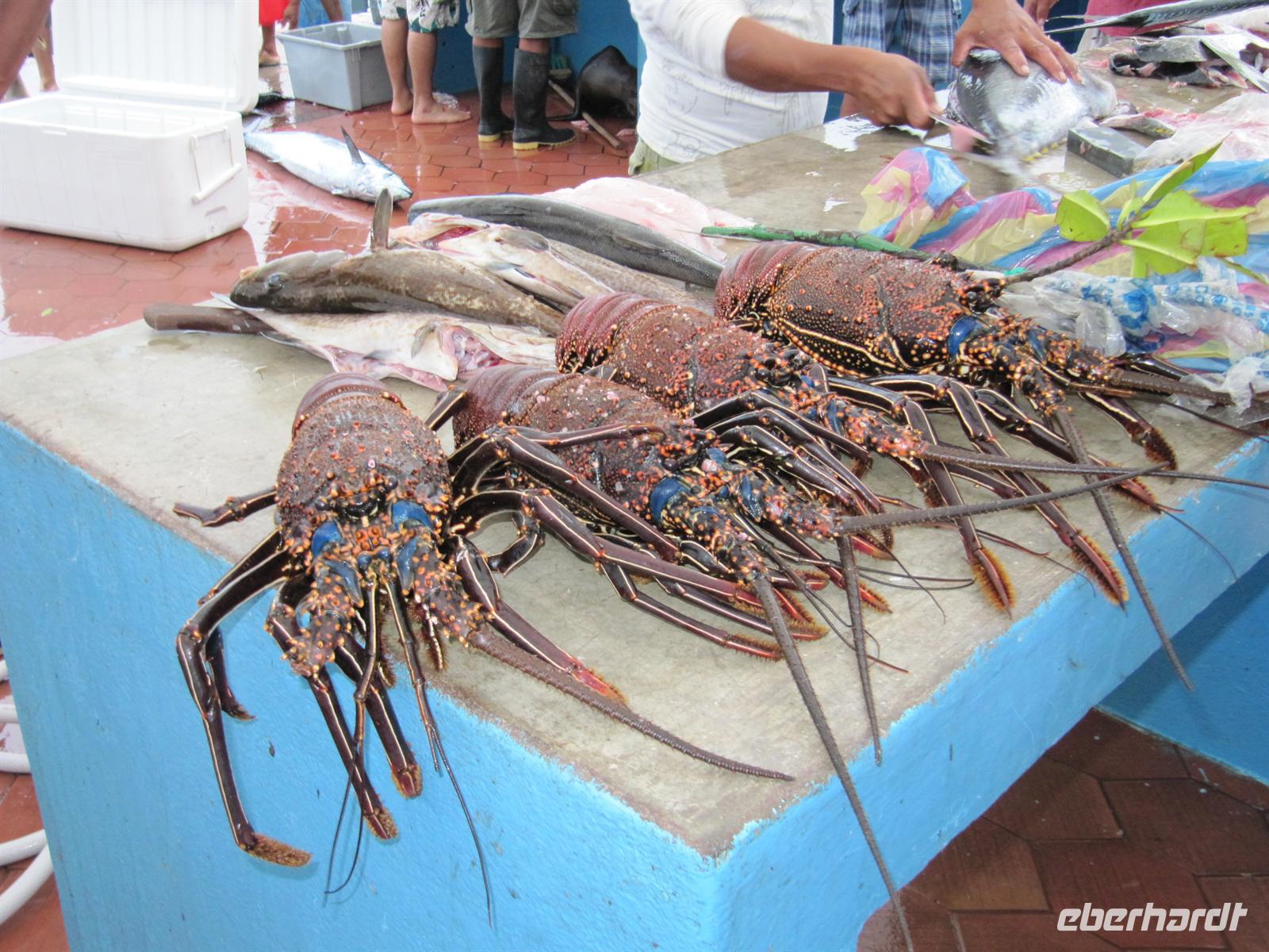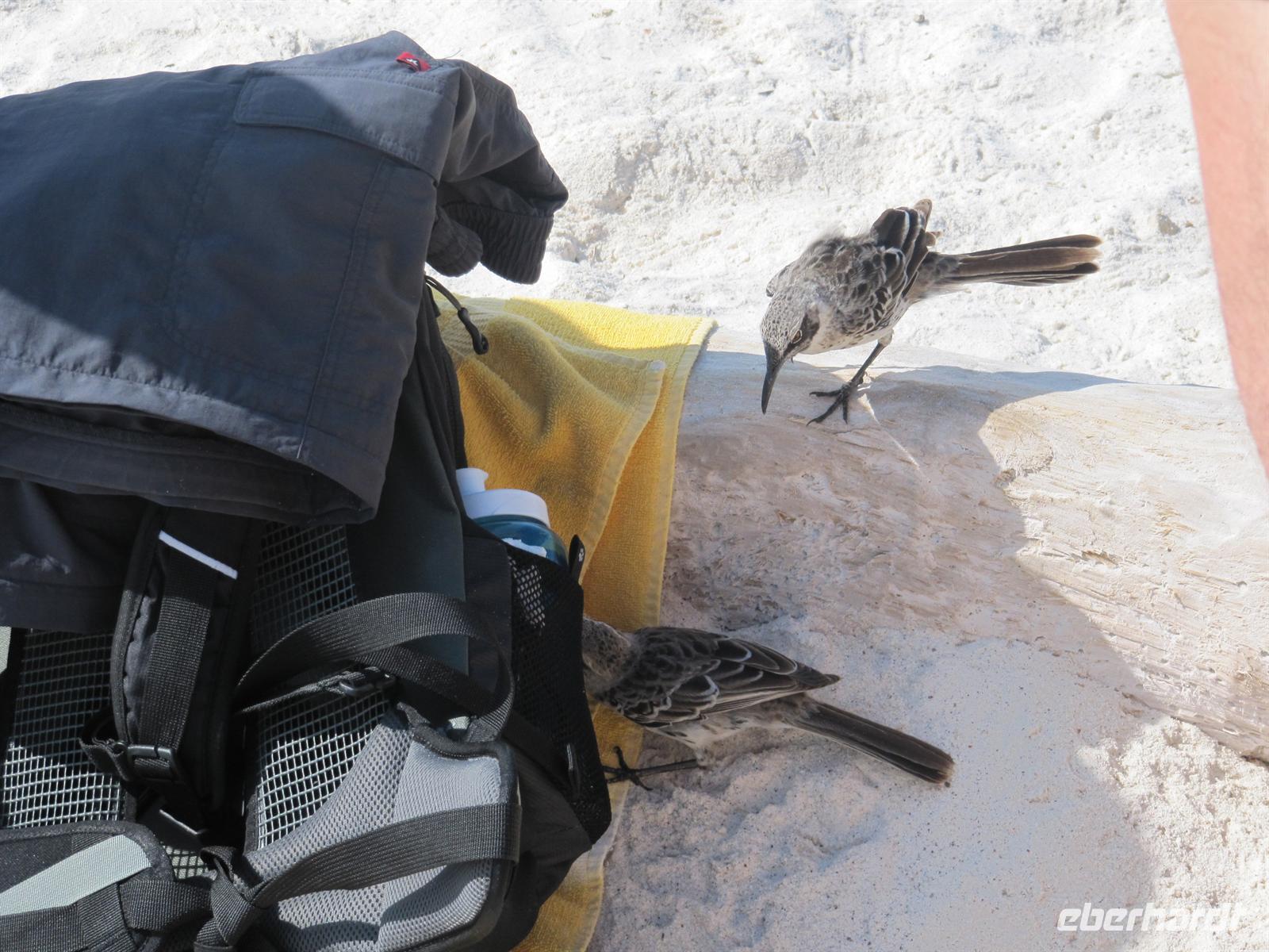 Am nächsten Tag war die Insel Seymour Norte unser Ziel. Diese Insel ist Brutgebiet der Fregattvögel und der Tölpel. Wir erlebten, wie die männlichen Fregattvögel bei der Balz ihren knallroten Kehlsack aufblasen, wir schauten aus nächster Nähe in die Nester und sahen die Jungtiere. Die Blaufußtölpel und die gelben Landleguane ließen sich von uns nicht stören. Aber auch die einmalige Pflanzenwelt faszinierte uns. Per Schiff ging es zum Traumstrand von Bachers Beach. Hier beobachteten wir Meeresechsen, Krabben, Pelikane und schwammen wieder im Meer. Am Nachmittag kehrten wir zum Hotel zurück. Wir bummelten noch zum kleinen Fischmarkt von Puerto Ayora. Hier wurde der frisch gefangene Fisch portioniert und direkt verkauft. Pelikane, Reiher und ein Seelöwe spazierten zwischen den Fischern und warteten auf einen Leckerbissen.
