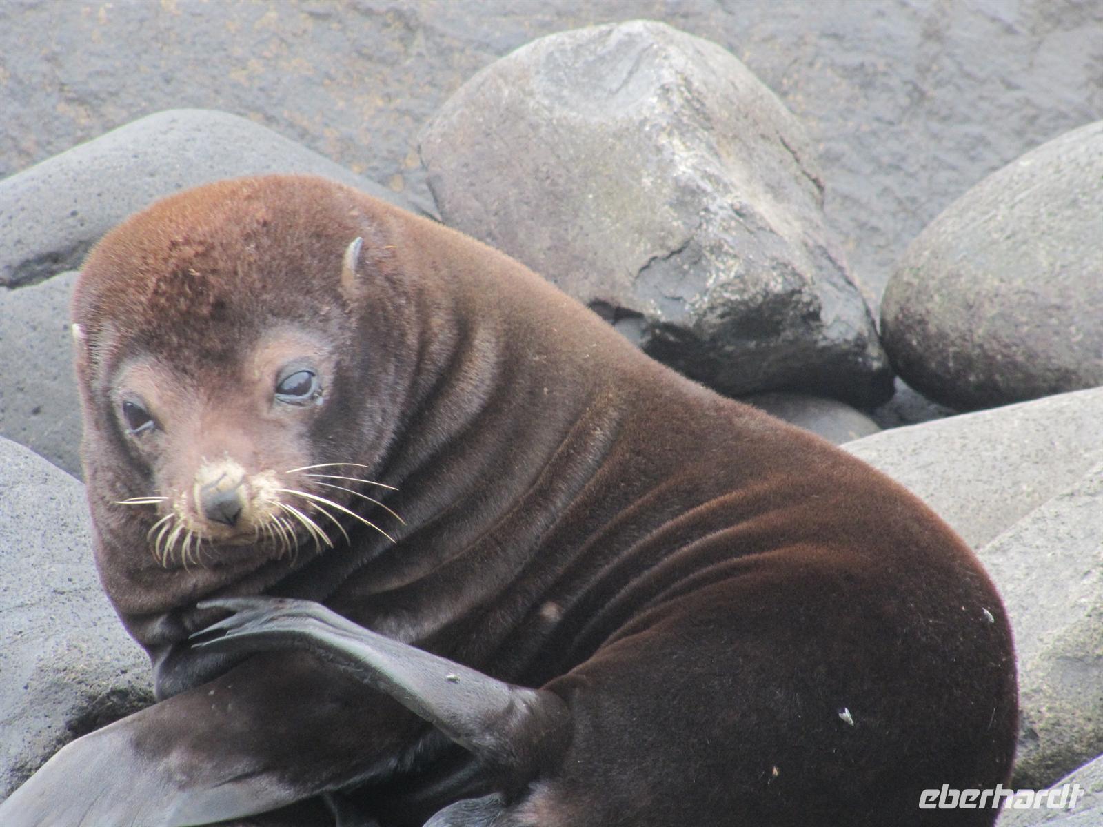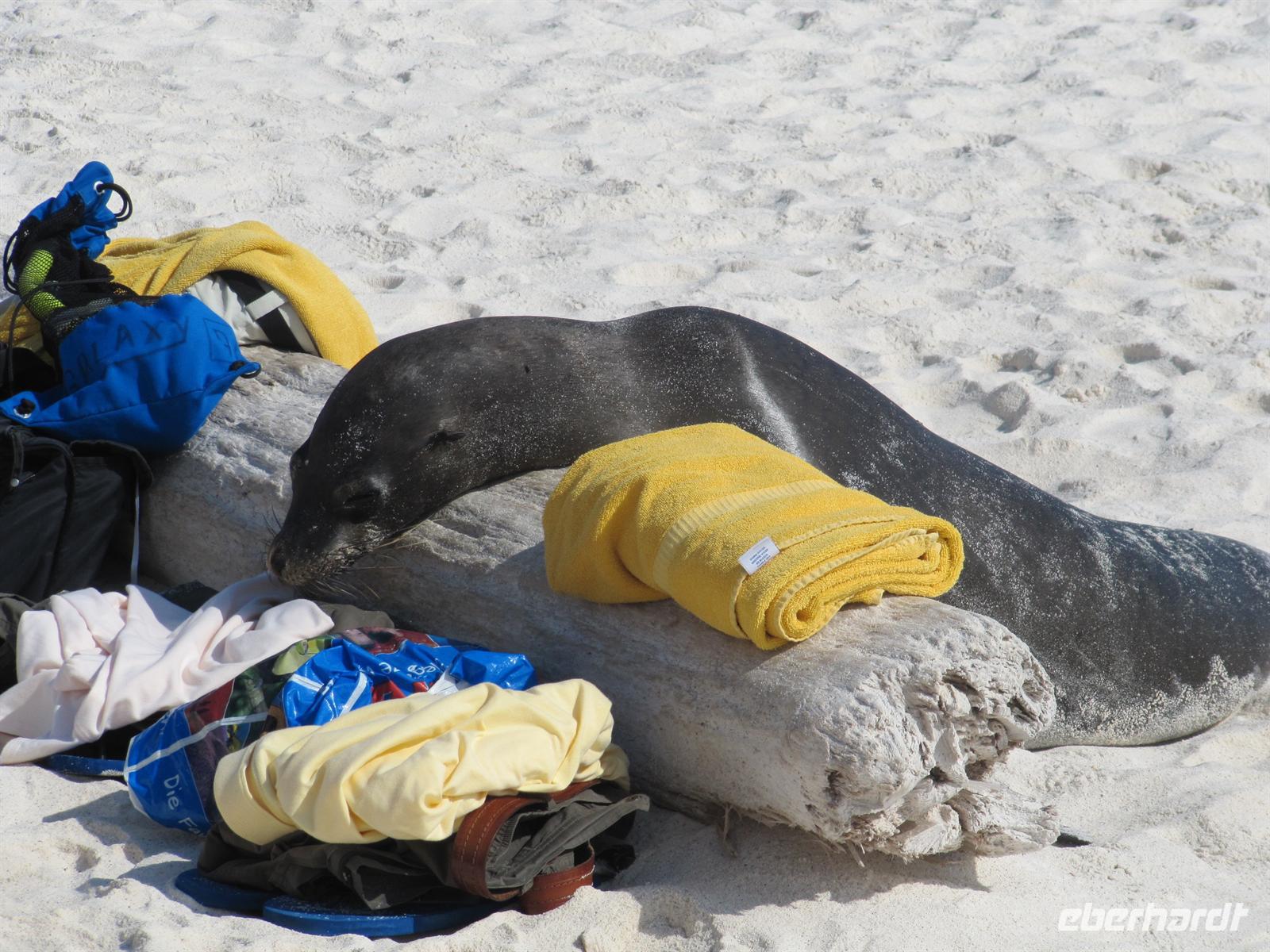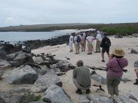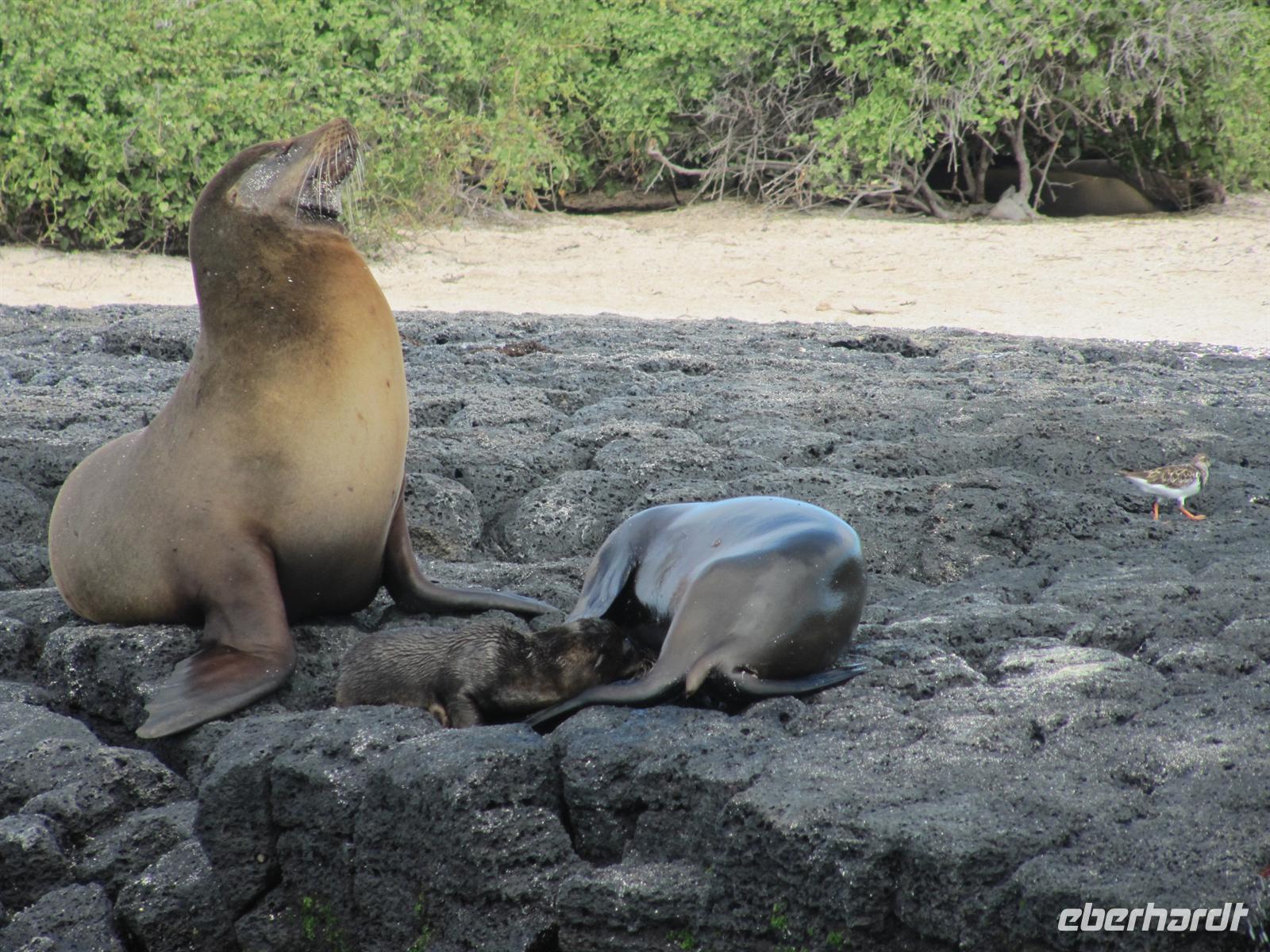 Die Yacht brachte uns in der Nacht nach Espanola. Den Vormittag verbrachten wir am Strand der Gardner-Bucht. Hier lebt eine große Gruppe Seelöwen, die wir wieder hautnah beobachten durften und die uns neugierig beäugten. Bei schönstem Wetter genossen wir ein letztes Bad im warmen Meer. Die Schnorchler sahen eine bunte Unterwasserwelt. Am Nachmittag wanderten wir dann über die Insel. Sie ist Brutstätte der Galápagos-Albatrosse, der Nazca-Tölpel und der Meeresechsen. Wir erlebten riesige Kolonien der Tiere und hatten sogar Glück, denn zwei Seebären zeigten sich uns. Zum Schluss entdeckten wir noch eine Seelöwin mit einem Neugeborenen. Und die kleinen Seelöwen zeigten uns, wie sie Krabben hinterher jagen oder versuchen, mit dem Schwanz einer Meeresechse zu spielen. Das war ein toller Abschluss unserer Reise und es fiel uns allen sehr schwer, dieses Paradies zu verlassen. Unseren Wunsch, dass dieses einmalige Naturwunder unbedingt erhalten und strengstens geschützt werden muss, nehmen wir alle im Herzen mit nach Hause!