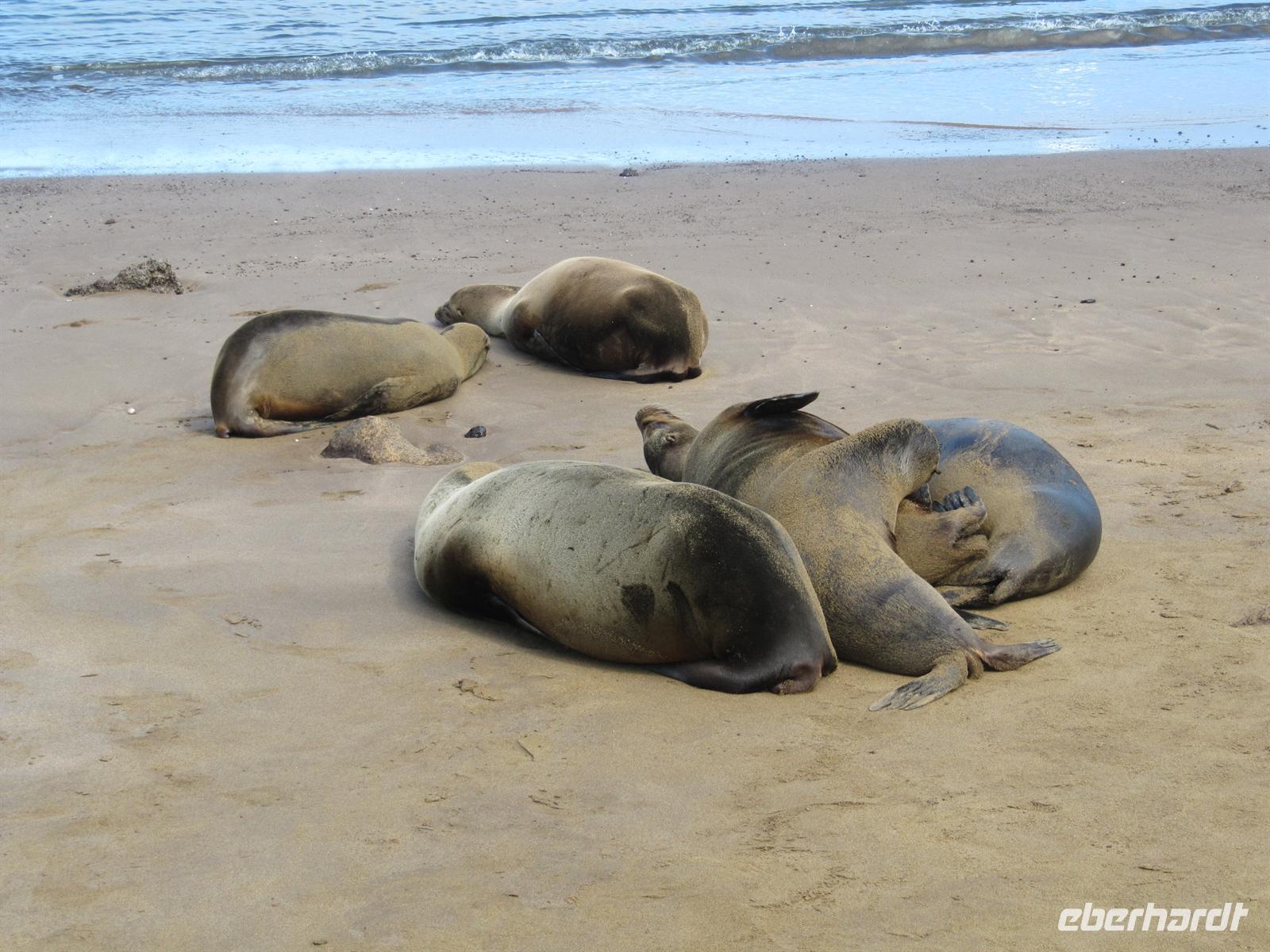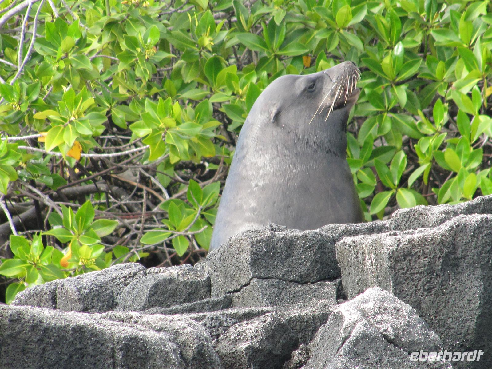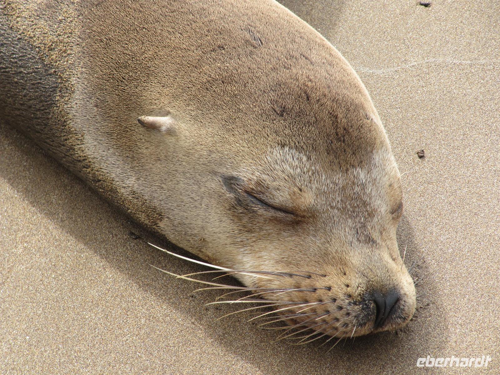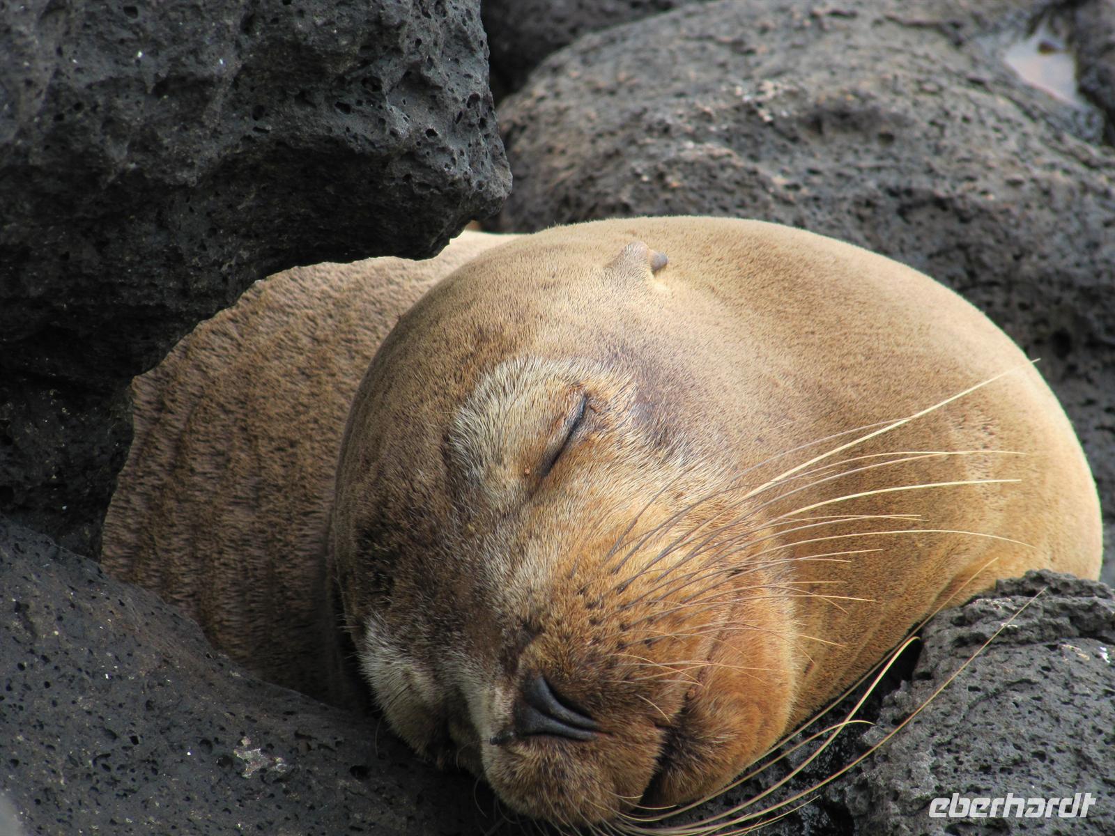 Die Yacht brachte uns in der Nacht nach Espanola. Den Vormittag verbrachten wir am Strand der Gardner-Bucht. Hier lebt eine große Gruppe Seelöwen, die wir wieder hautnah beobachten durften und die uns neugierig beäugten. Bei schönstem Wetter genossen wir ein letztes Bad im warmen Meer. Die Schnorchler sahen eine bunte Unterwasserwelt. Am Nachmittag wanderten wir dann über die Insel. Sie ist Brutstätte der Galápagos-Albatrosse, der Nazca-Tölpel und der Meeresechsen. Wir erlebten riesige Kolonien der Tiere und hatten sogar Glück, denn zwei Seebären zeigten sich uns. Zum Schluss entdeckten wir noch eine Seelöwin mit einem Neugeborenen. Und die kleinen Seelöwen zeigten uns, wie sie Krabben hinterher jagen oder versuchen, mit dem Schwanz einer Meeresechse zu spielen. Das war ein toller Abschluss unserer Reise und es fiel uns allen sehr schwer, dieses Paradies zu verlassen. Unseren Wunsch, dass dieses einmalige Naturwunder unbedingt erhalten und strengstens geschützt werden muss, nehmen wir alle im Herzen mit nach Hause!
