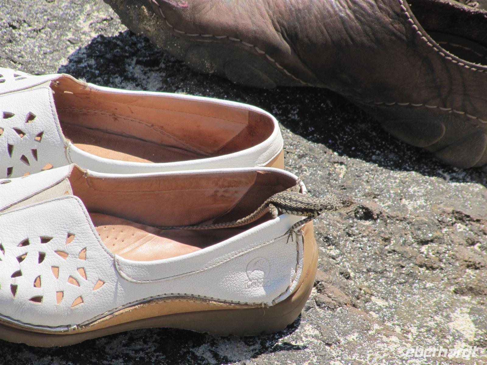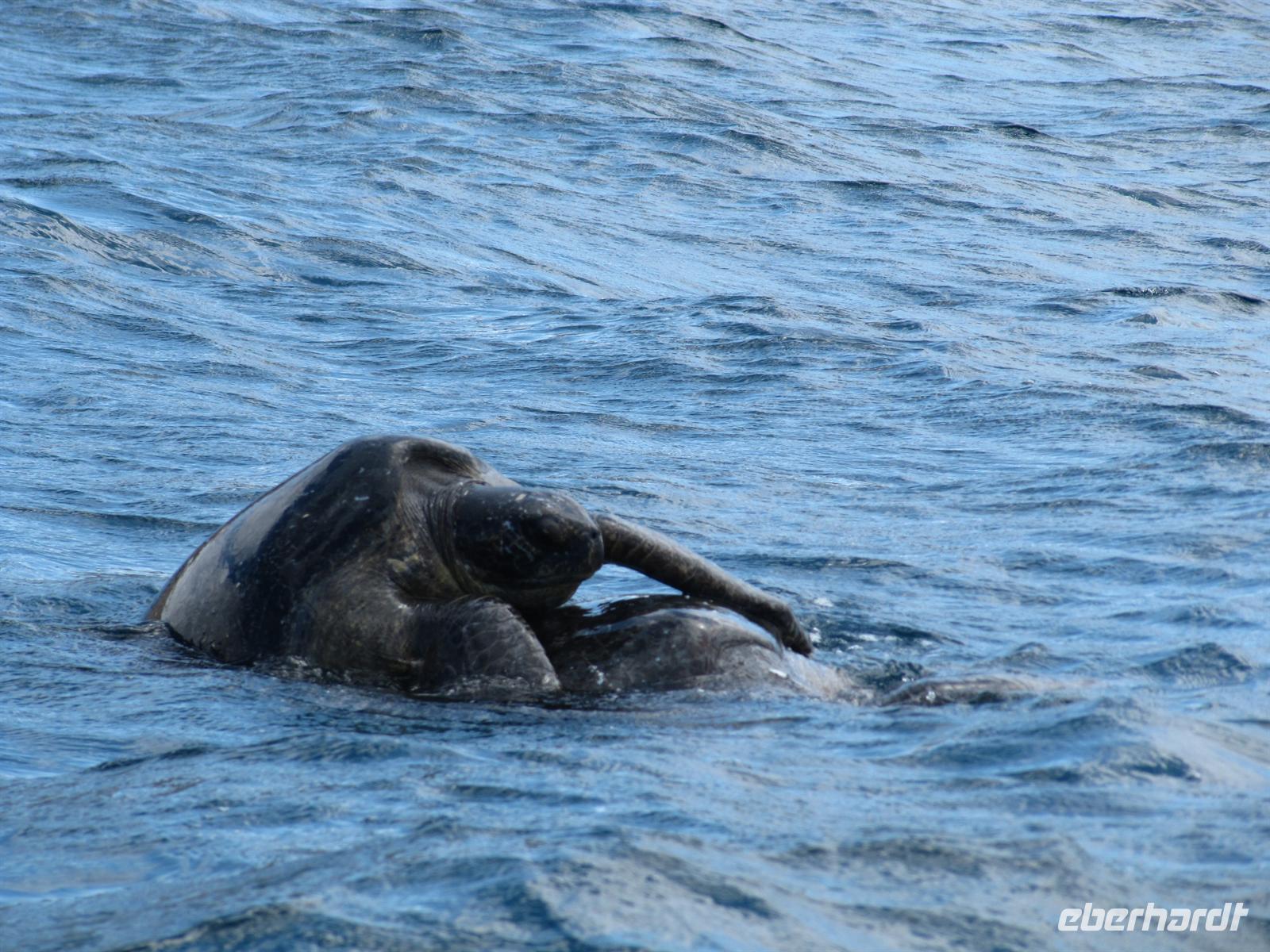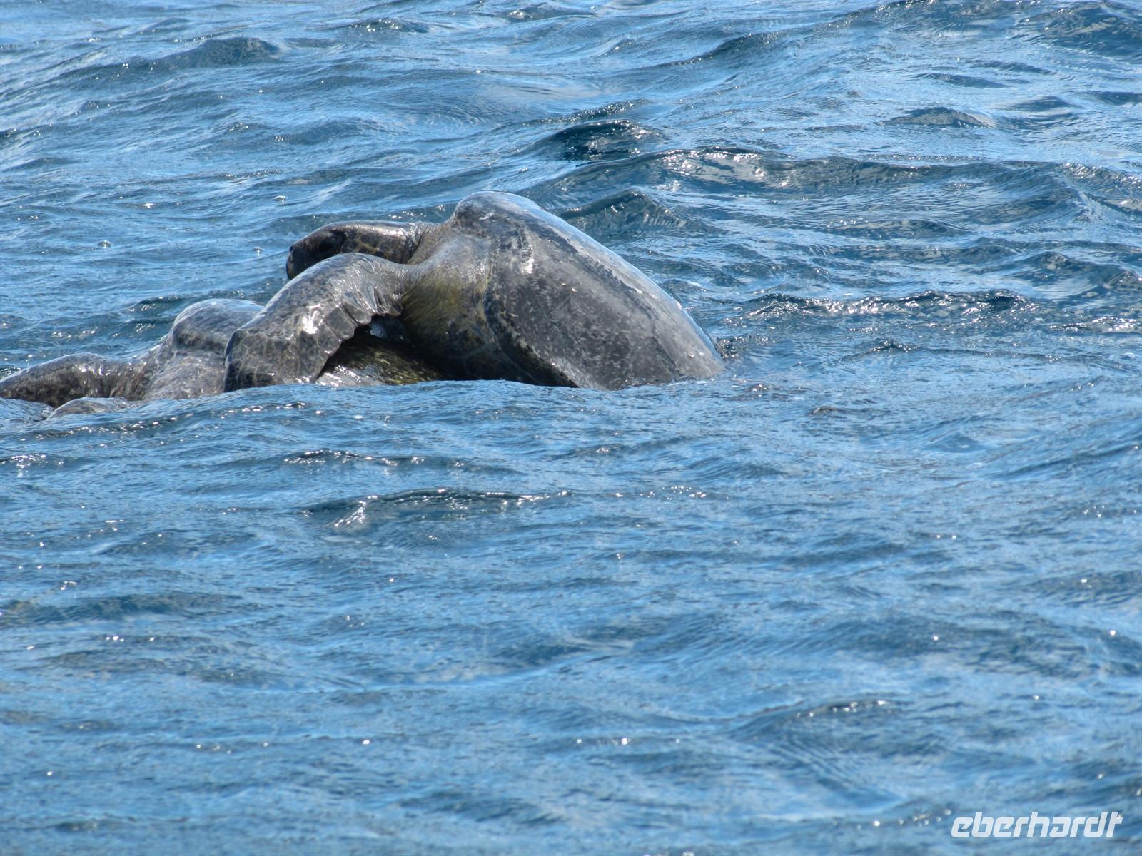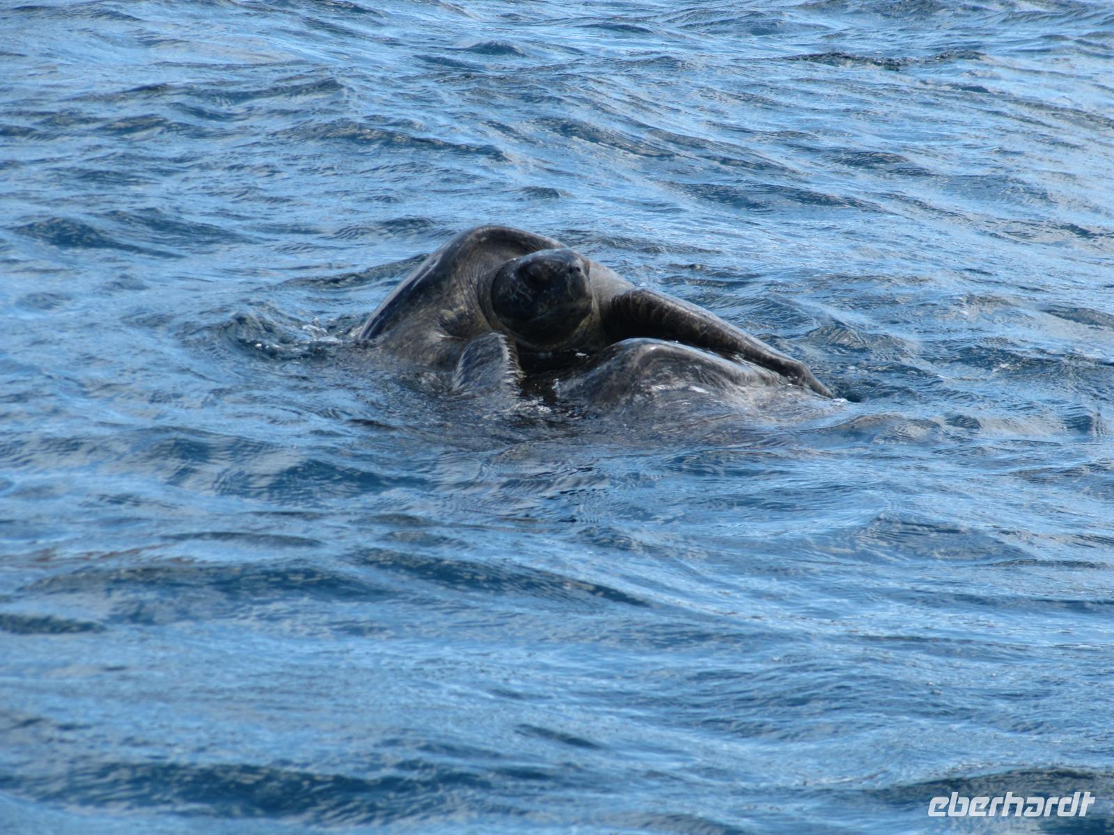 Am nächsten Morgen wanderten wir zur Tortuga Bay. Sie ist Heimat der Meeresechsen. Wir sahen eine große Gruppe der imposanten Tiere. Sie scheinen aus einer längst vergangen Zeit zu stammen. Am Mittag holte uns Lars, unser Naturführer für die nächsten drei Tage, ab. Bevor wir einen Ausflug ins Hochland von Santa Cruz unternahmen, bezogen wir unsere Kabinen auf der Yacht „Galaxy“, mit der wir zu den Inseln Floreana, Espanola und San Cristobal gelangten. Zunächst besuchten wir die Riesenschildkröten im Hochland der Insel. Es war sehr faszinierend, diese riesigen Tiere in freier Wildbahn zu beobachten. Auf der Yacht wurden wir mit einem schmackhaften Abendessen erwartet. Und in der Nacht legte diese dann Richtung Floreana ab. Wir landeten mit dem Schlauchboot am grünen Strand Punta Comorant. In der Brackwasser-Lagune hinter dem Strand leben Flamingos. Dann wanderten wir zum weißen Strand und beobachteten grüne Meeresschildkröten und Diamant-Stachelrochen. Am grünen Strand, der auf Grund kleinster Mineralsedimente grün schimmert, badeten wir. Einige Seelöwen lagen am Strand und ein halbstarker Jungbulle stänkerte mit uns. Aber auf Galápagos haben die Tiere alle Rechte und wir Menschen müssen strenge Regeln einhalten. Und das ist gut so! Denn die Tiere haben keine Angst vor dem Menschen. Am Nachmittag besuchten wir die berühmte Post Office Bay. Schon die Piraten haben hier ein Fass als Postfach installiert und bis heute wird es genutzt.