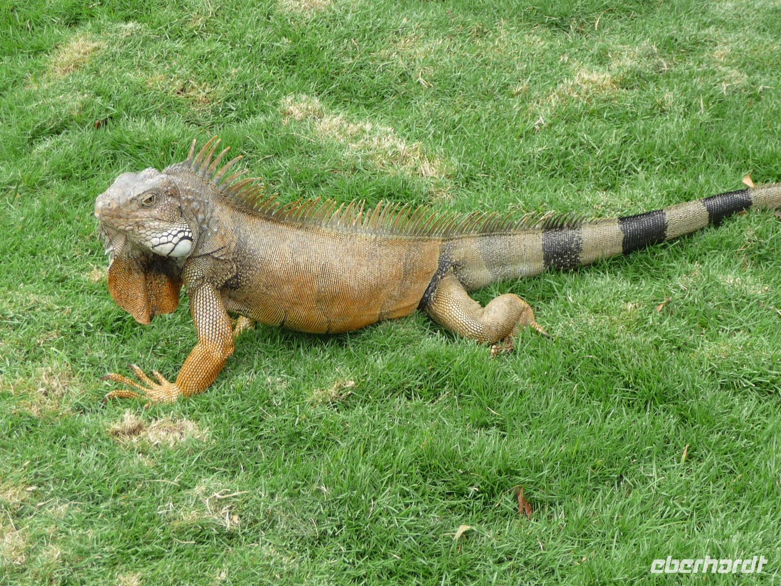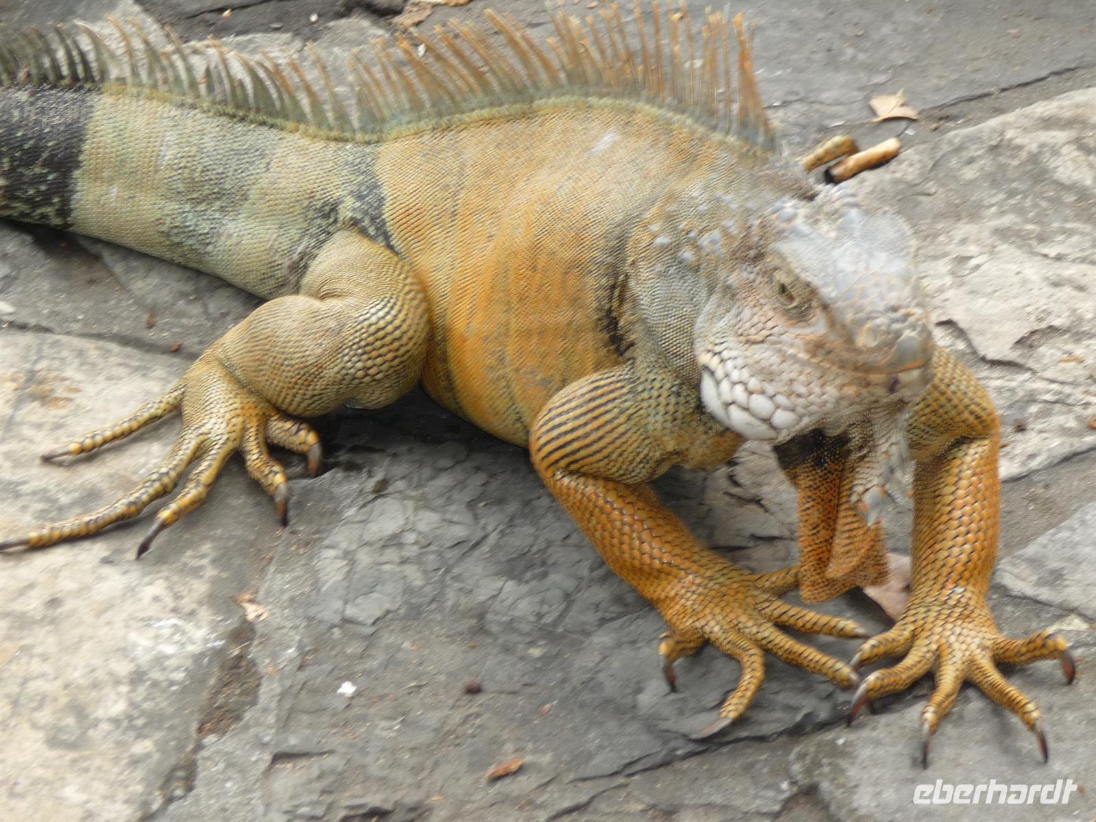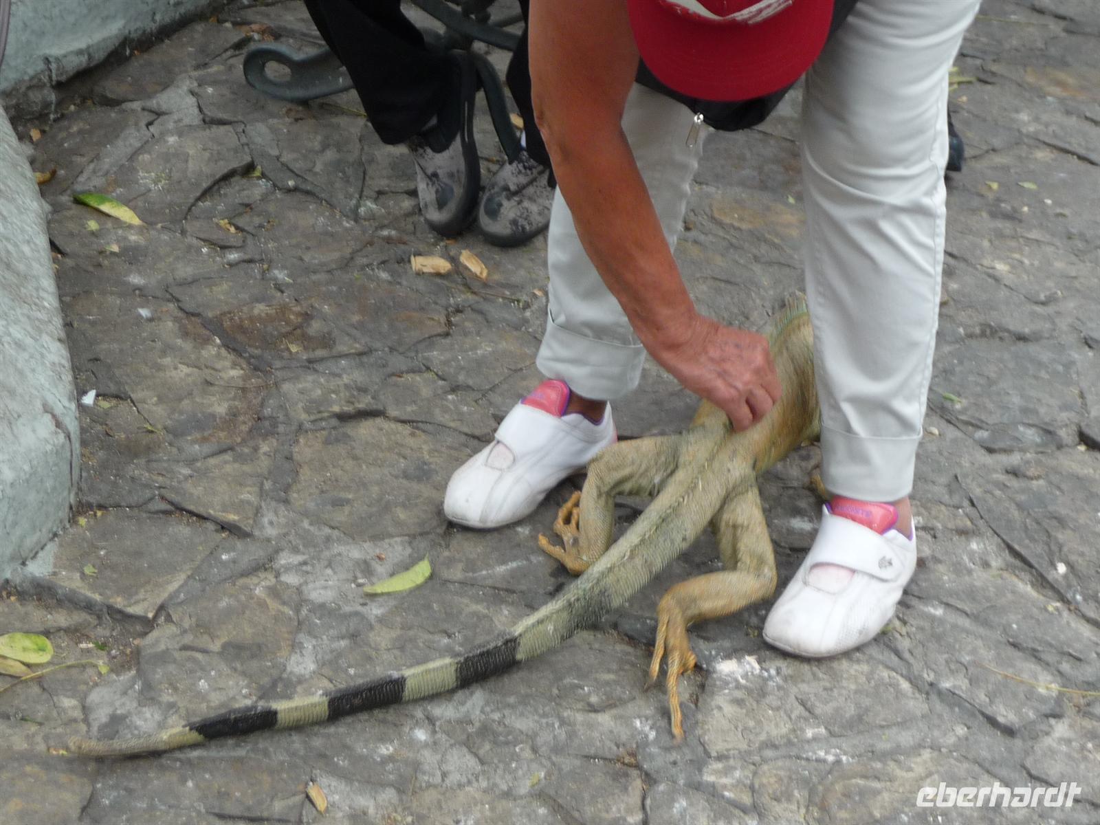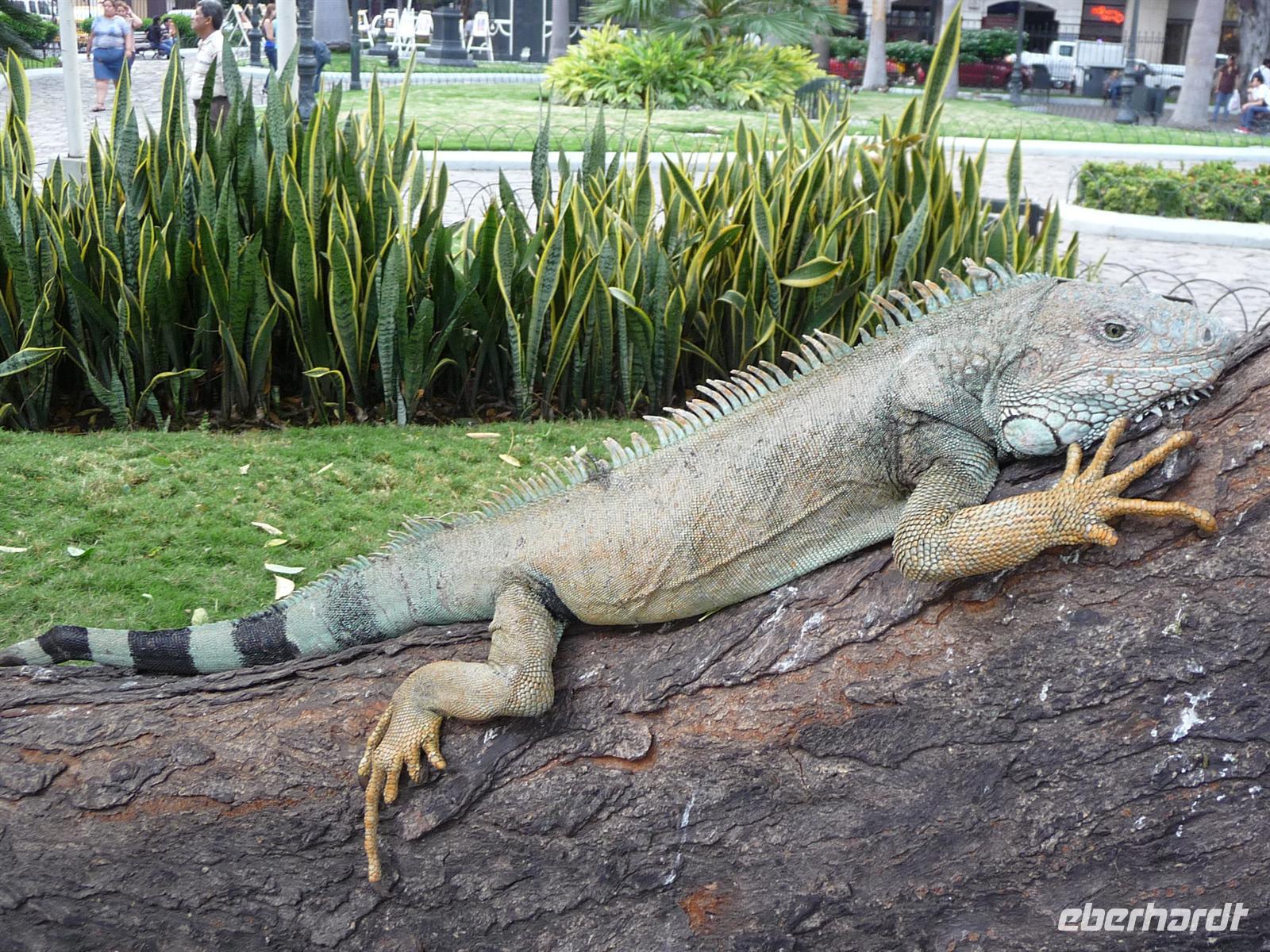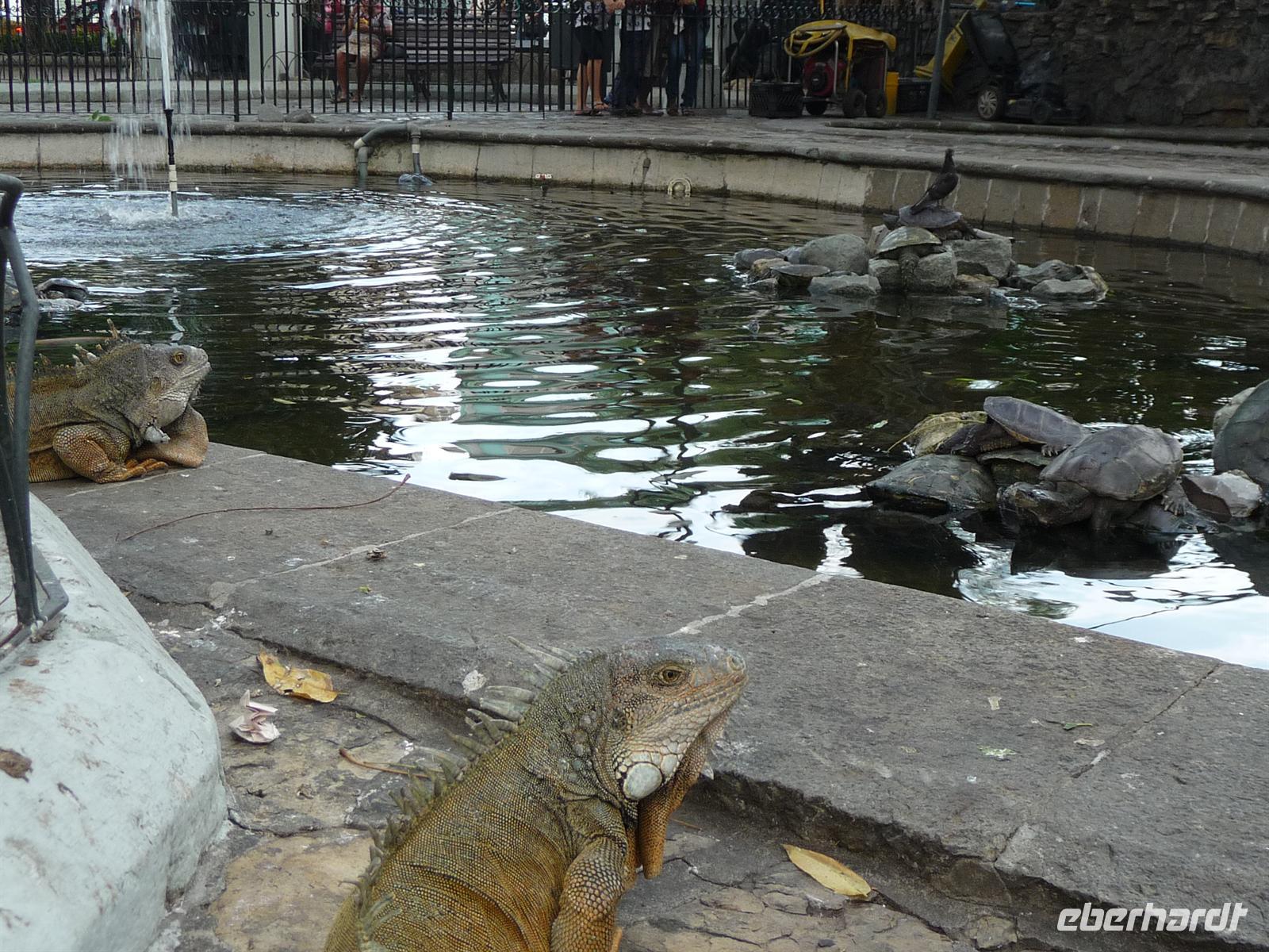 In der Fußgängerzone passierten wir den Stadtpalast und bewunderten die große neugotische Kathedrale. Gleich daneben liegt der Park Seminario mit einer imposanten Reiterstatue des Befreiers Simon Bolivar. Sie ist umgeben von Gummibäumen, Palmen, Akazien, meterhohe Ficuse und zahlreichen indischen Mango- und Mandelbäumen. Die eigentliche Attraktion sind die darin lebende Kolonie von über 300 Grünen Landleguanen.