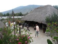 Hier stiegen 3 Otavalos Mädchen in den Bus, Cecilia, Mercedes und Christina sangen für uns einige Lieder. Wir erreichten Otavalo (22.000 Einwohner) und bekamen in einem sehr schönen Restaurant Mittag: Kartoffelsuppe, Forelle in Knoblauch und flambierte Ananas. Anschließend stand der Marktbesuch auf dem Programm.