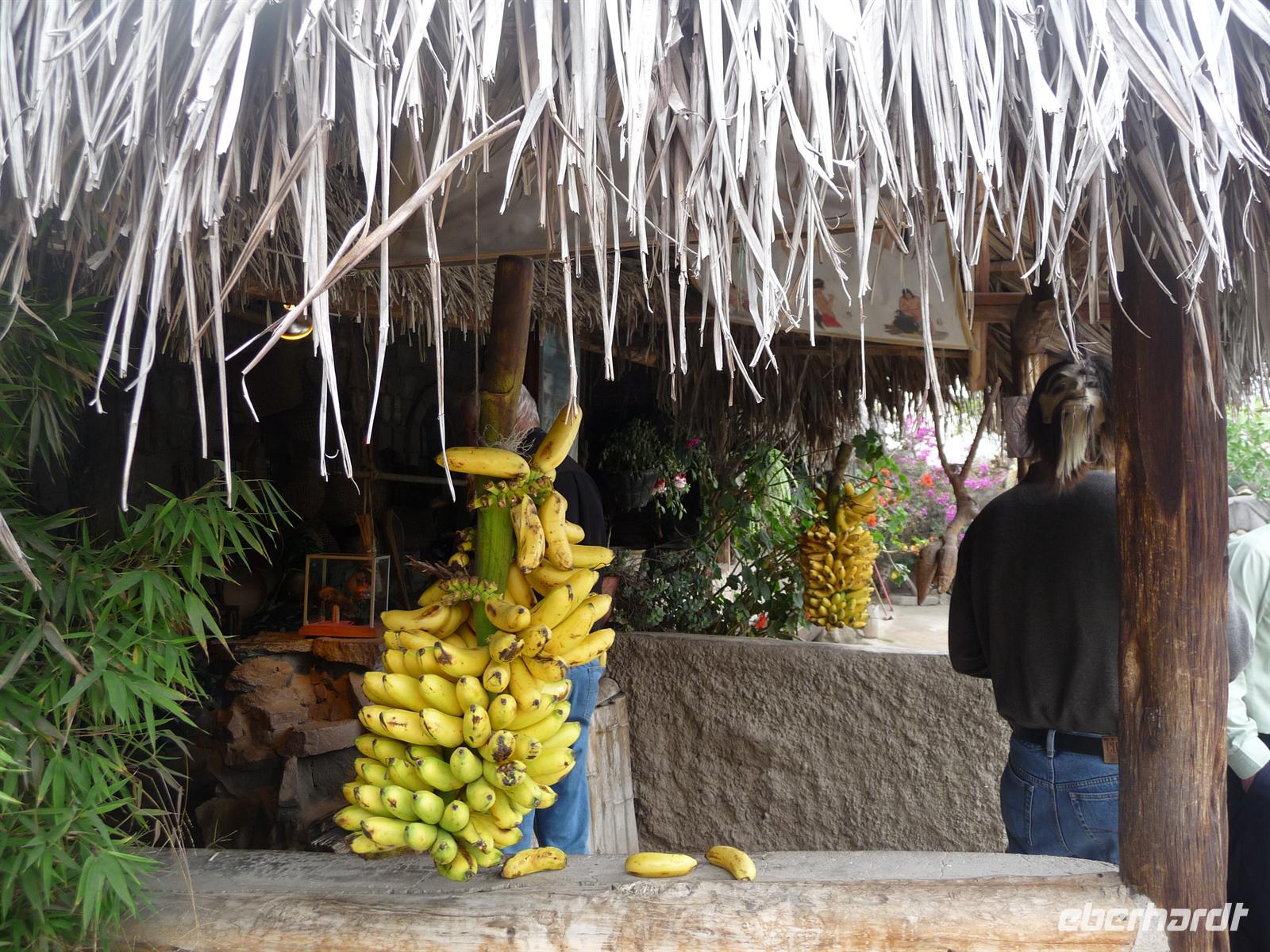 2 große Bananenstauden hingen zur Selbstbedienung im offenen Restaurant.