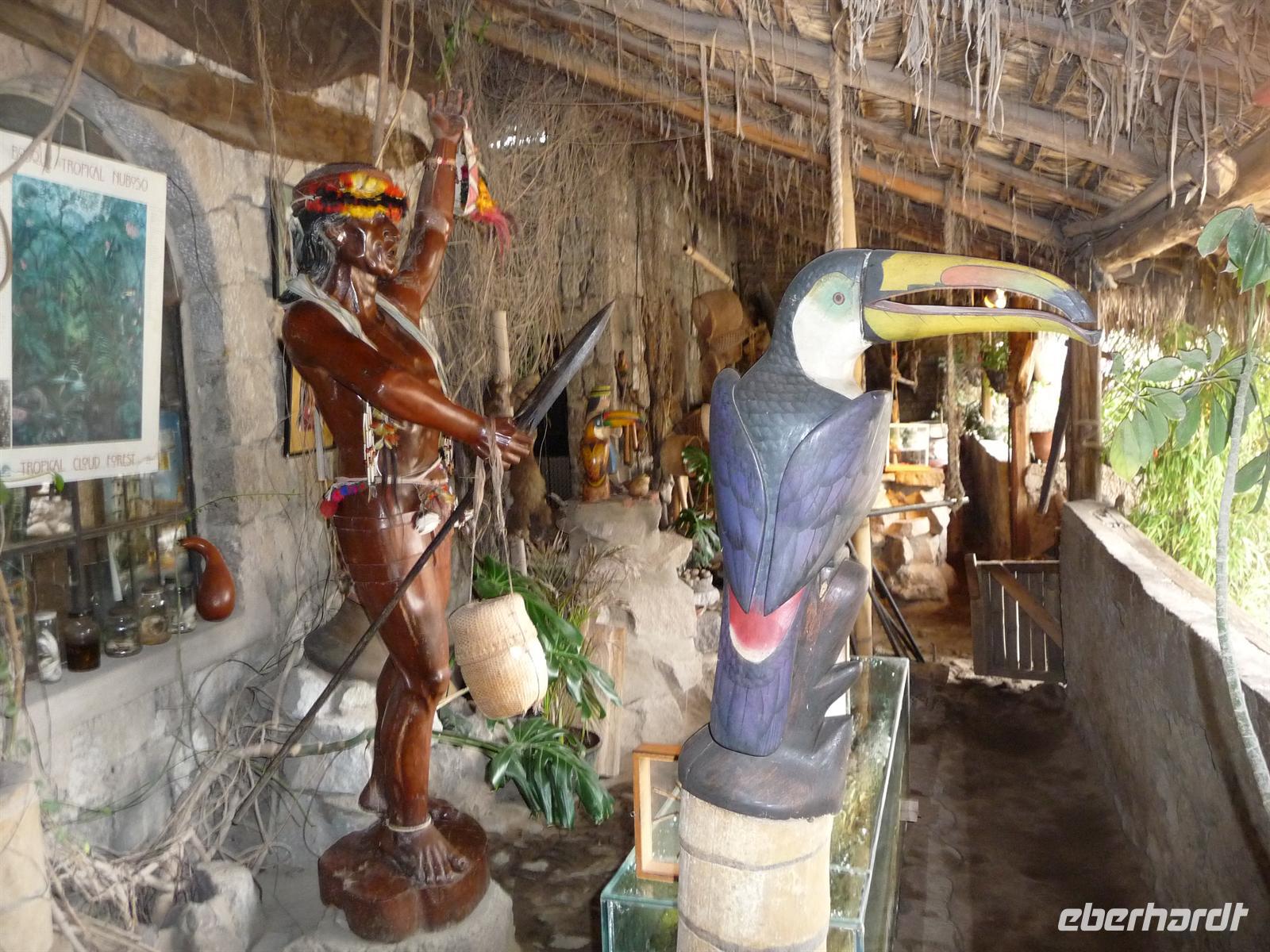 Nach dem Frühstück Fahrt mit dem Kanu nach Puerto Bolivar zu den SIONA Indianern. Rundgang im Dorf mit Diego und eine Frau wusch im Fluss auf der Treppe. 12.00 Uhr waren wir beim Schamanen, er ist 70 Jahre alt und er erzählte begeistert von seiner Arbeit.