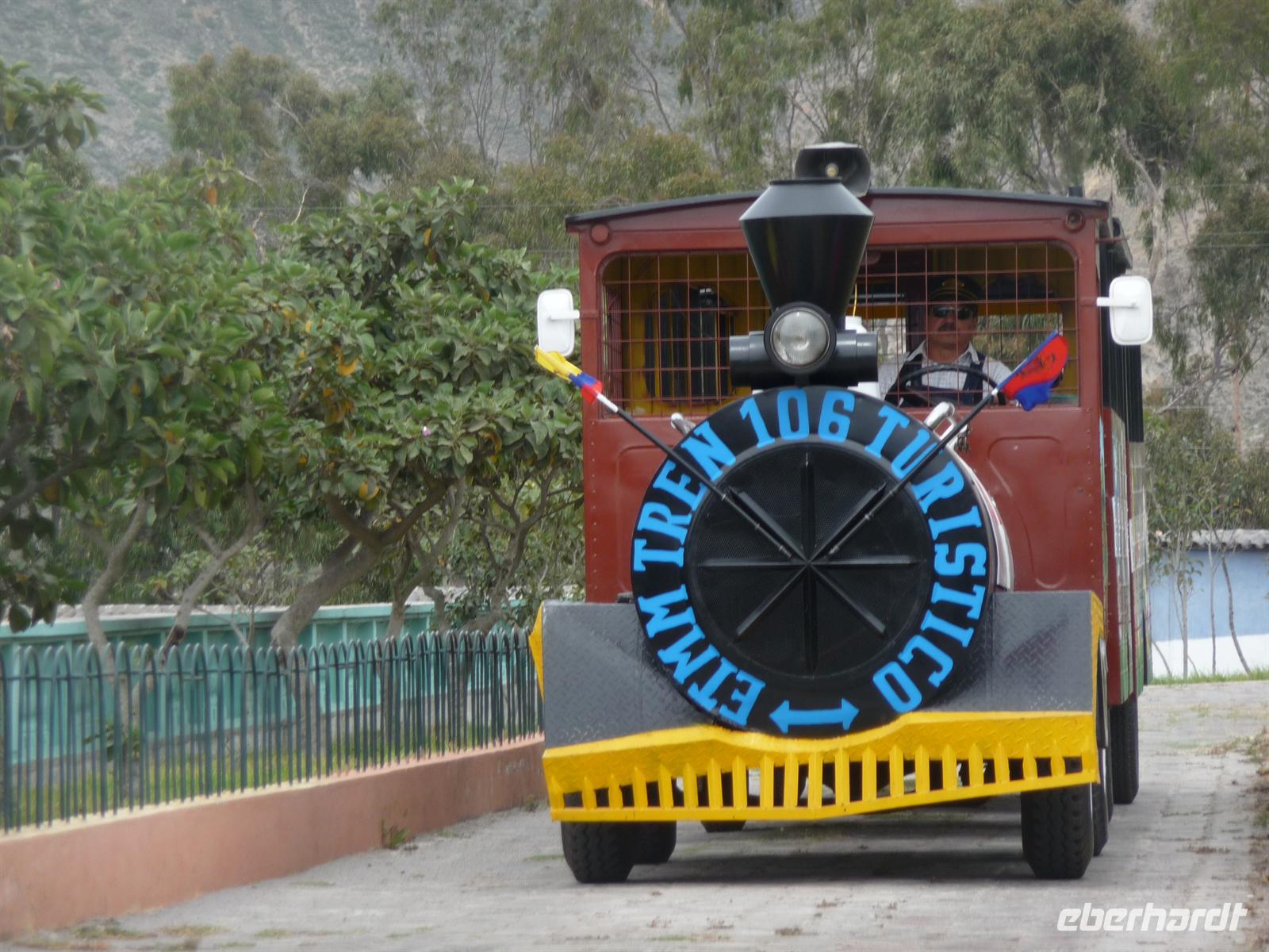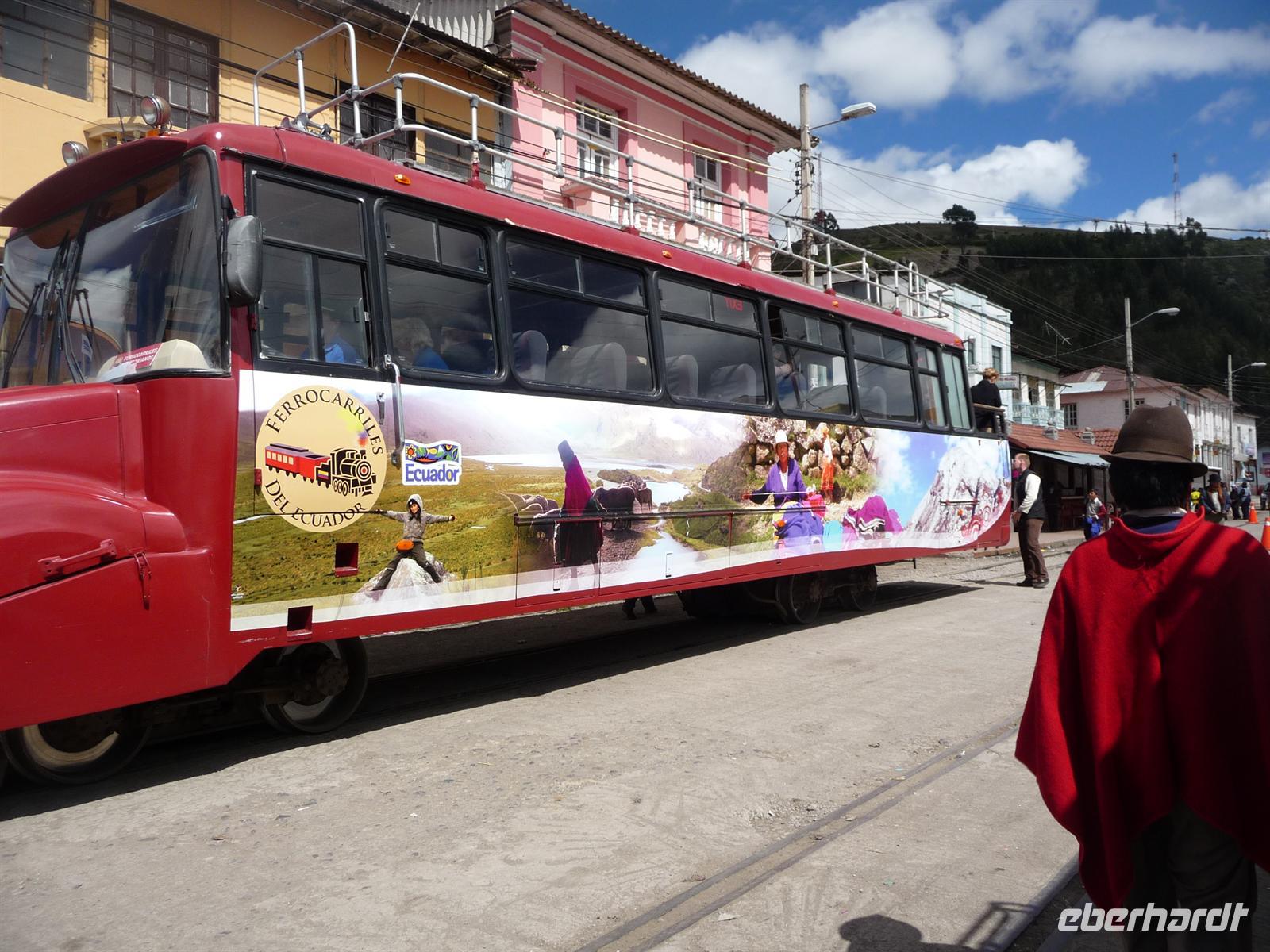 In Guamote stoppte unser Zug, kurze Pause für Blicke auf den zentralen Platz. Dort findet jeden Donnerstag der berühmte Viehmarkt von der gesamten Region statt. Unser Zug fuhr eine wunderschöne Strecke durch kleine Ortschaften bis Palmira. Alle waren begeistert vom Zug, man konnte hinten auf einer Plattform stehen und mit allen Sinnen die Natur genießen.