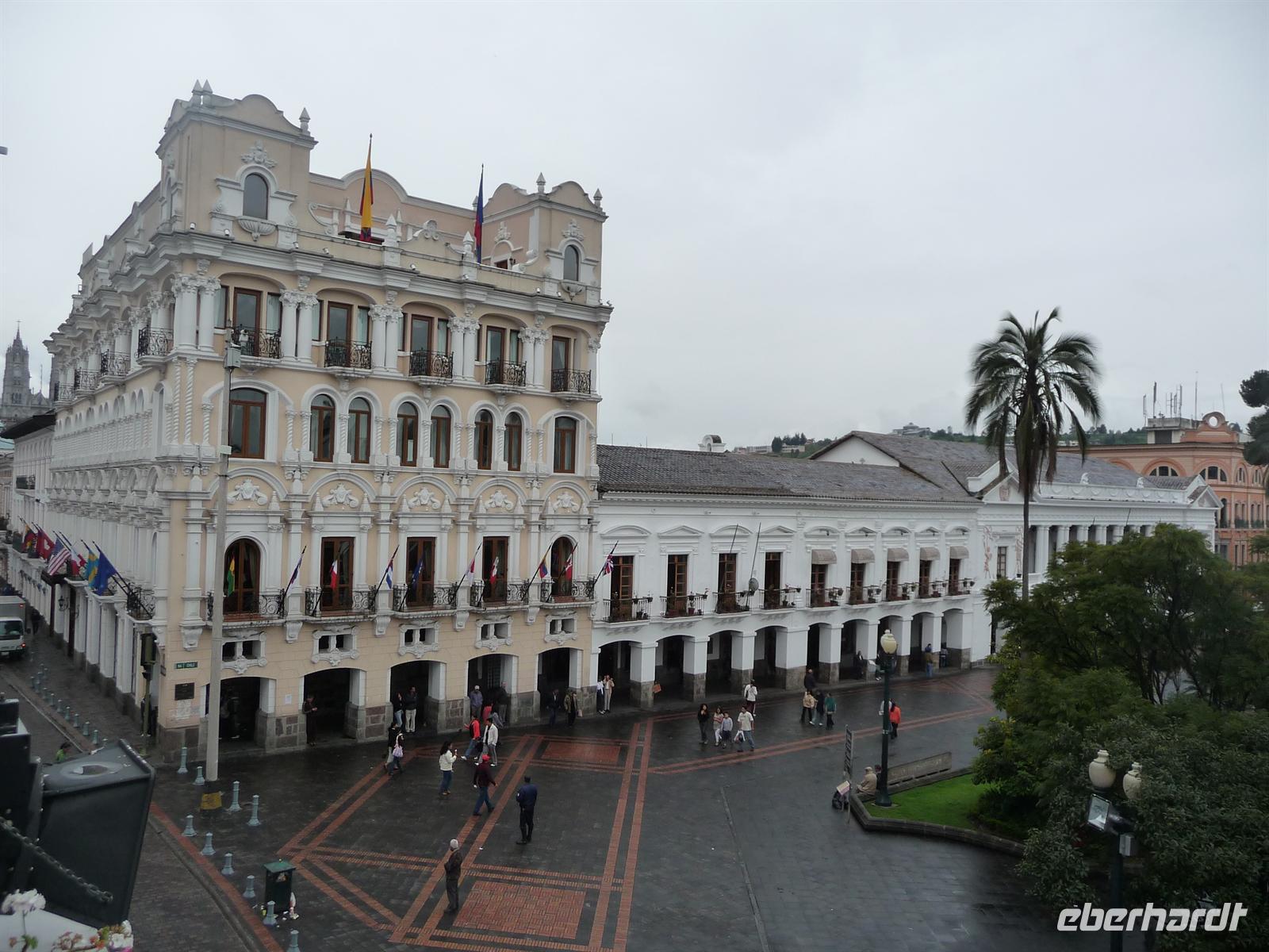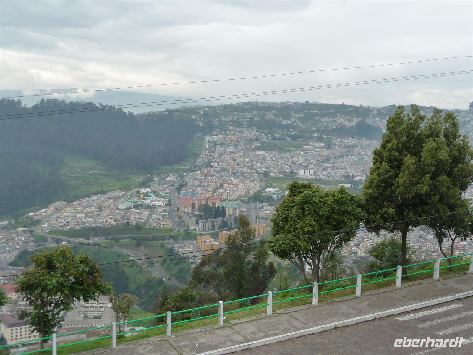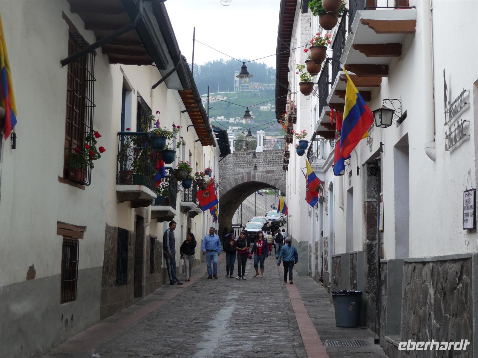 Der Besuch von Quito -en miniature- hat uns sehr gefallen. Nach dem Mittagessen im Restaurant "Mea Culpa" am Platz der Unabhängigkeit in Quito unternahmen wir einen Rundgang zu Fuß durch die Altstadt von Quito. Präsidenten-Palast von innen besichtigt, fünf verschiedene Räume wo wir von der Terrasse aus den Blick auf den rechteckigen Unabhängigkeitsplatz, auch kurz genannt -Plaza Grande-, genossen.Hier gruppieren sich die Kathedrale, der erzbischöfliche Palast und das Rathaus. - Besuch des Konvent von San Francisco wo eine breit angelegte Treppe zum Portal des Kirchenkomplexes führt, es ist die größte und älteste Kirche der kolonialen Epoche Quitos. - Fahrt auf den El Panecillo 3.100 m, den Hausberg der Stadt mit einer überdimensionalen Statur der Virgen de Quito. Vom Vulkankegel und der Aussichtsplattform bietet sich ein herrlicher Blick nach Süden und Norden über die gesamte Stadt.Calle Ronda - die historische, kopfsteingepflasterte, älteste Strasse Quitos hat sich zum Besuchermagnet entwickelt. Die Kolonialgebäude mit den typischen Brüstungen säumen die gesamte Calle Ronda. Der Stadtrundgang war ein schöner Abschluss des Tages.