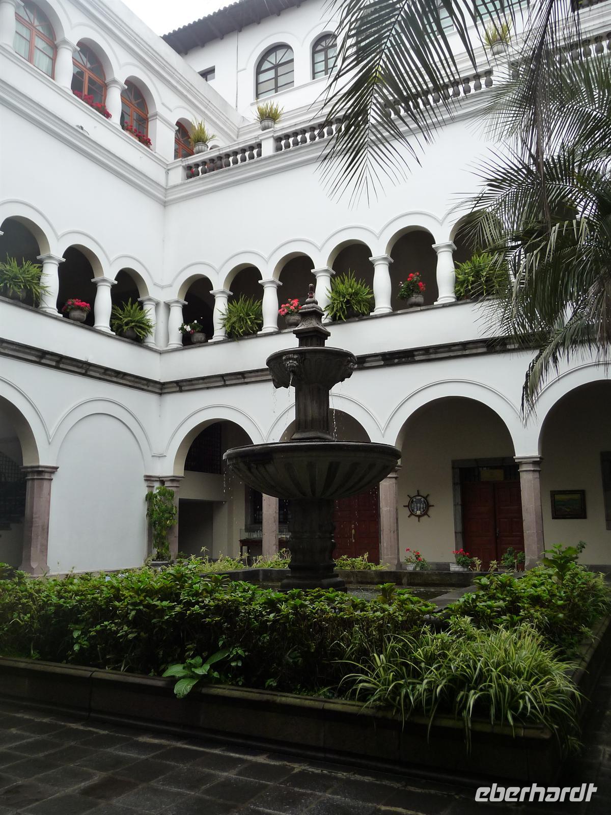 Drei Stunden dauerte der Flug von Berlin Tegel nach Madrid. Dort kamen wir am Terminal T 4 an und wechselten den Gate T 4 S per Zug. Es ist alles sehr gut ausgeschildert, sogar wie viele Minuten zum Anschluss Gate benötigt werden. Mit einer Stunde Verspätung flogen wir nach Ecuador.Diese hat der Pilot irgendwie aufgeholt und wir kamen nach 11 Stunden Flugzeit pünktlich in Quito an. Richard, unser örtlicher Guide, hat auf uns gewartet und uns per Bus ins Grand Hotel Mercure Alameda gebracht.